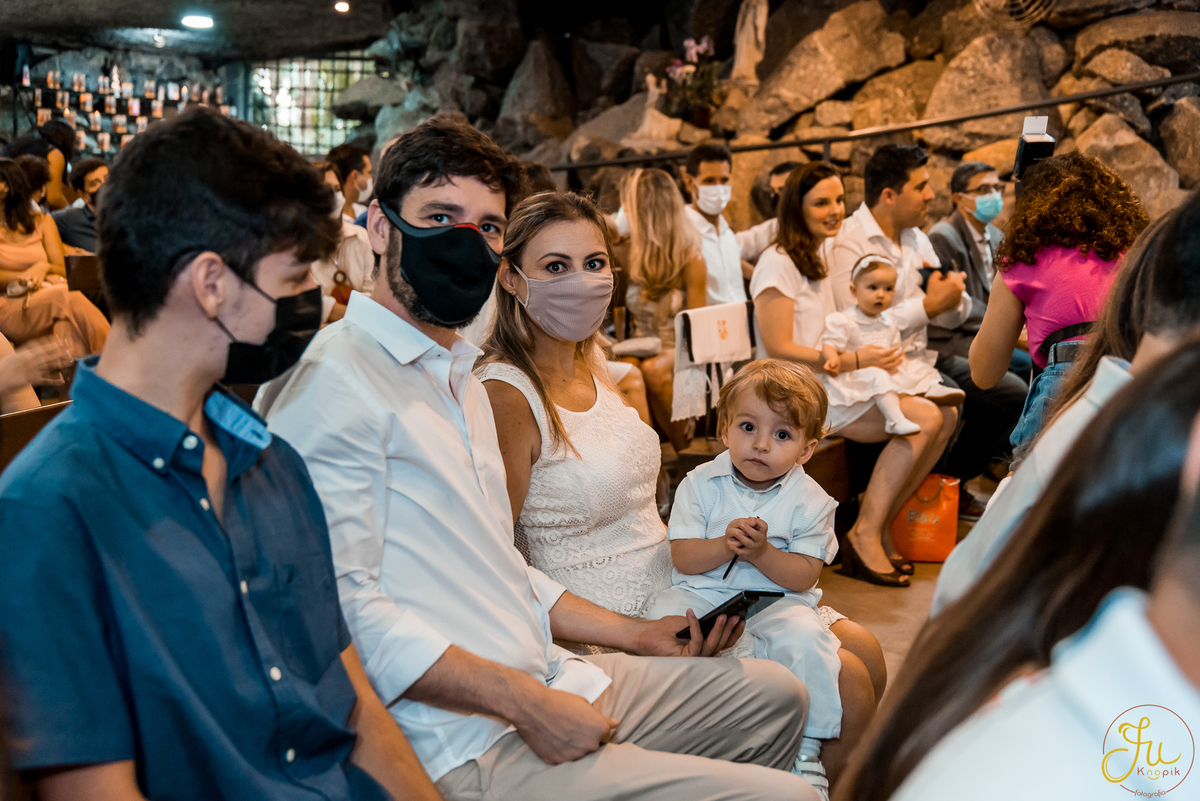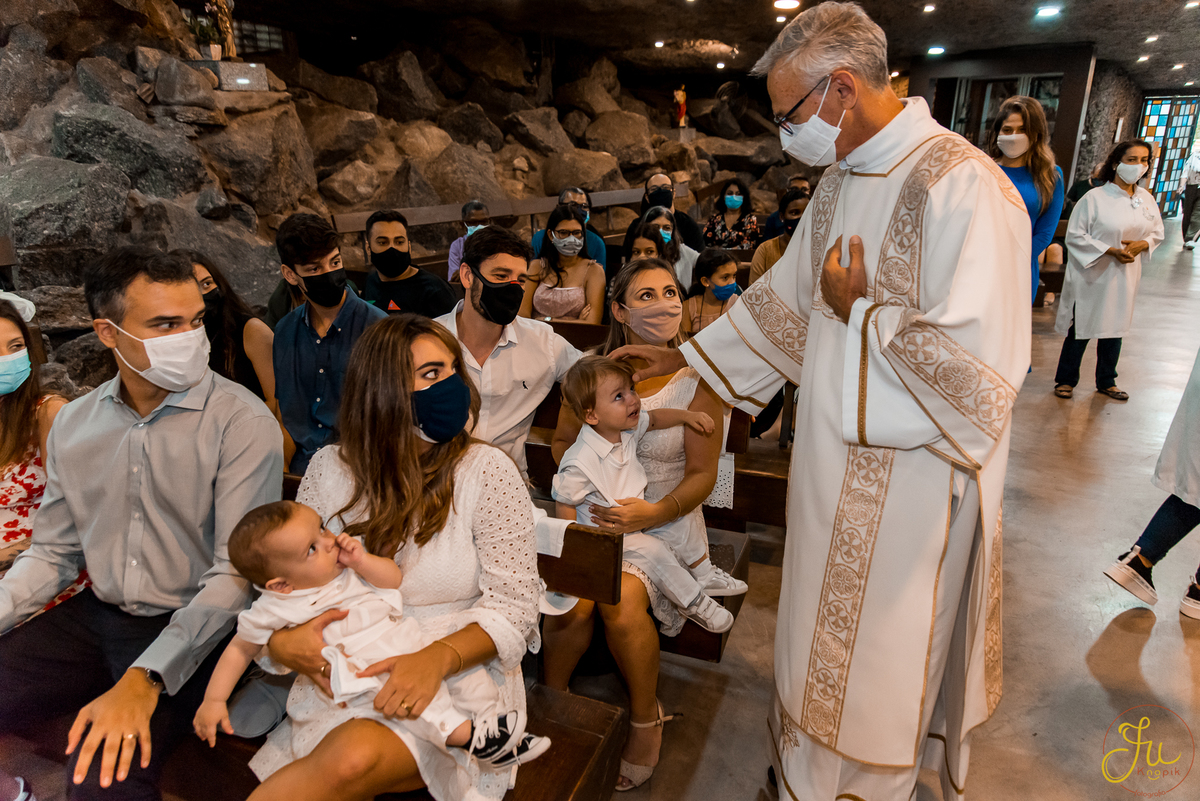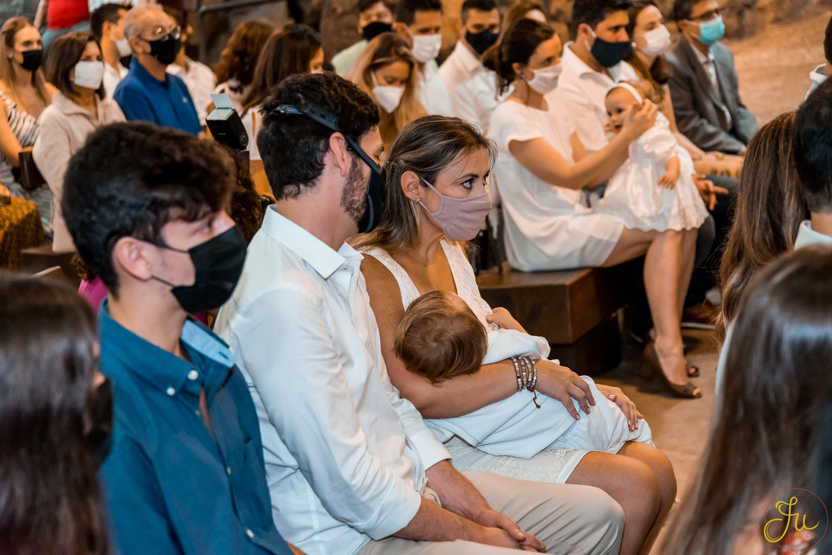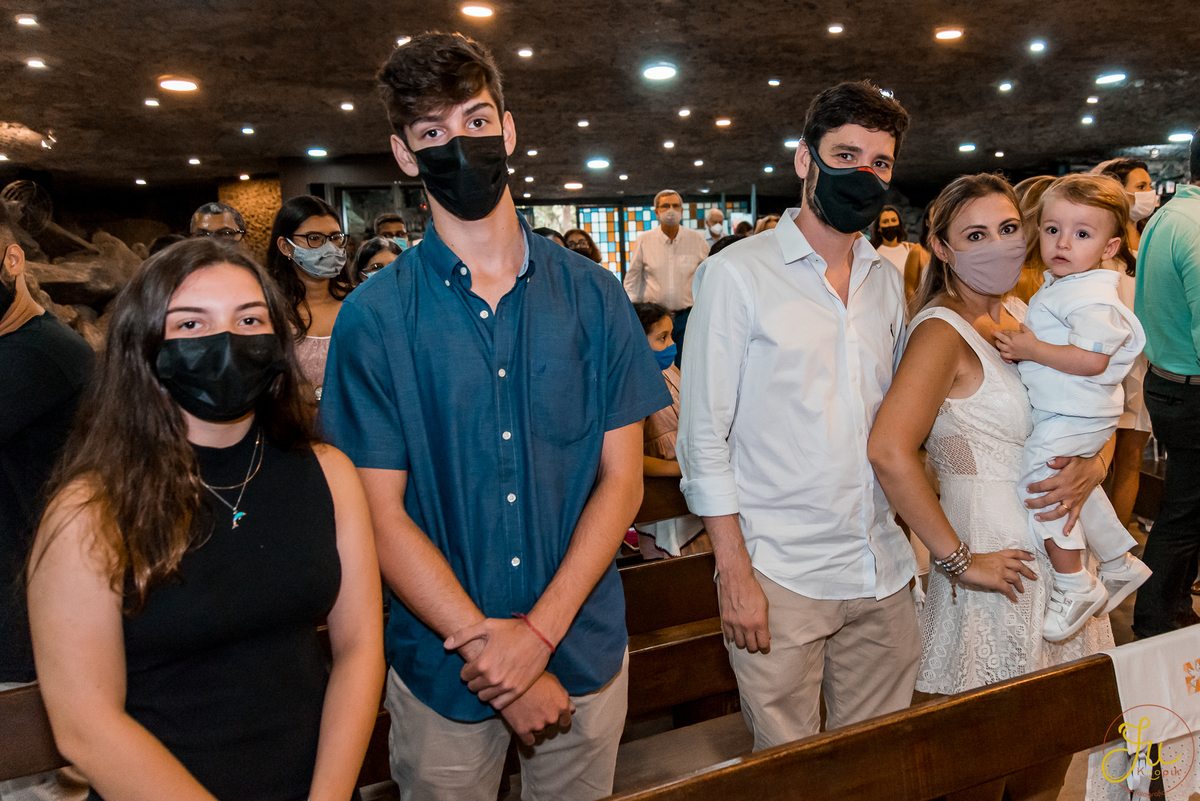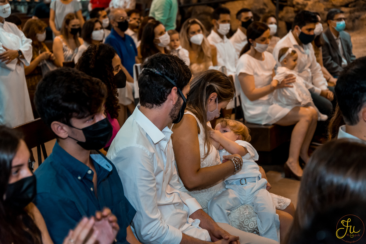 Como o Antônio nasceu justamente quando começou a pandemia aqui no Brasil, por medidas de segurança, a família optou por batiza-lo somente agora que todos estavam vacinados. Dessa forma a cerimonia pode ser na própria igreja, com a presença dos avós e dos amigos queridos.