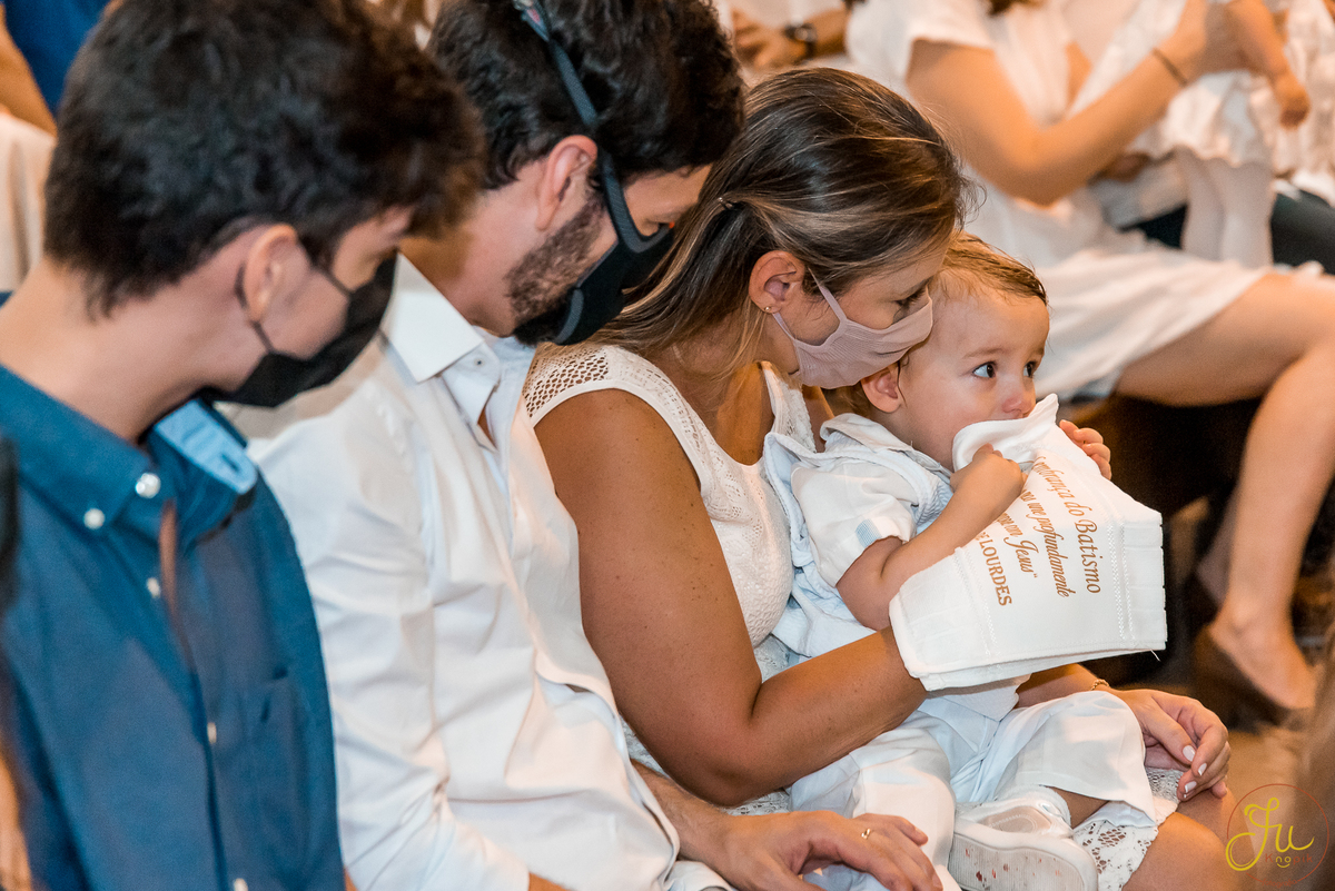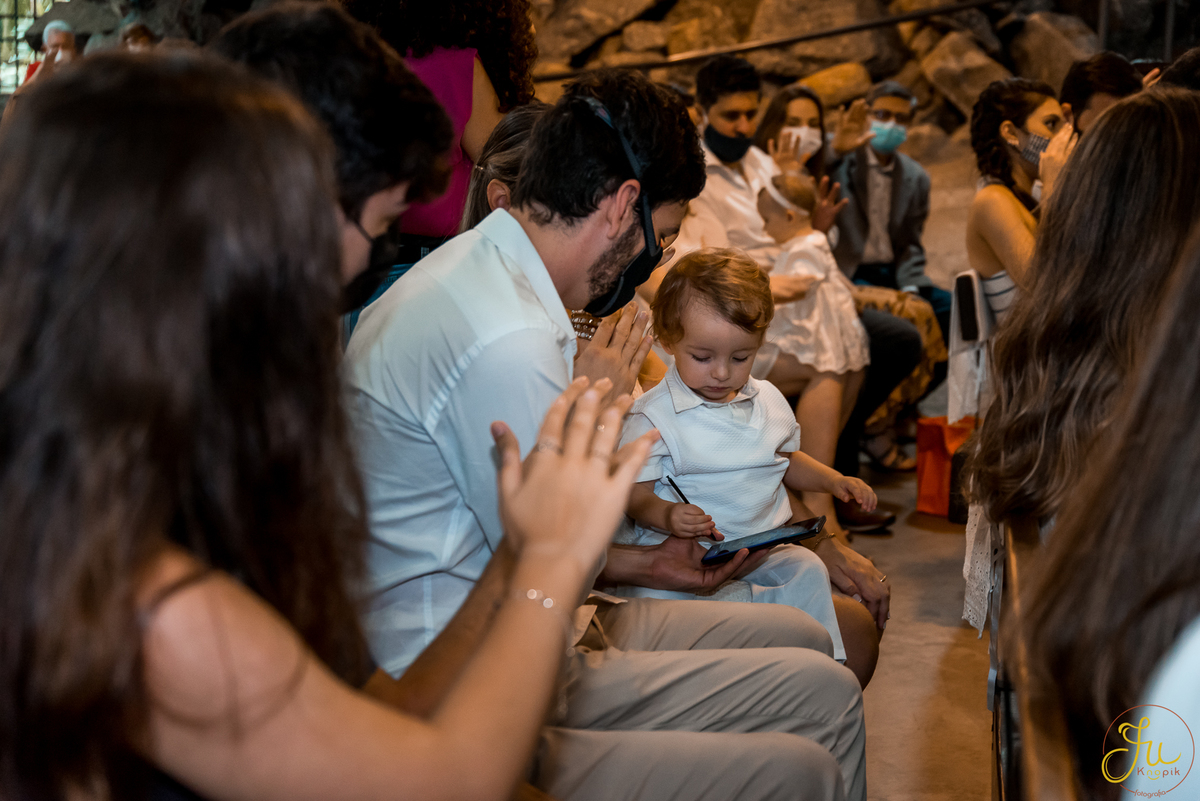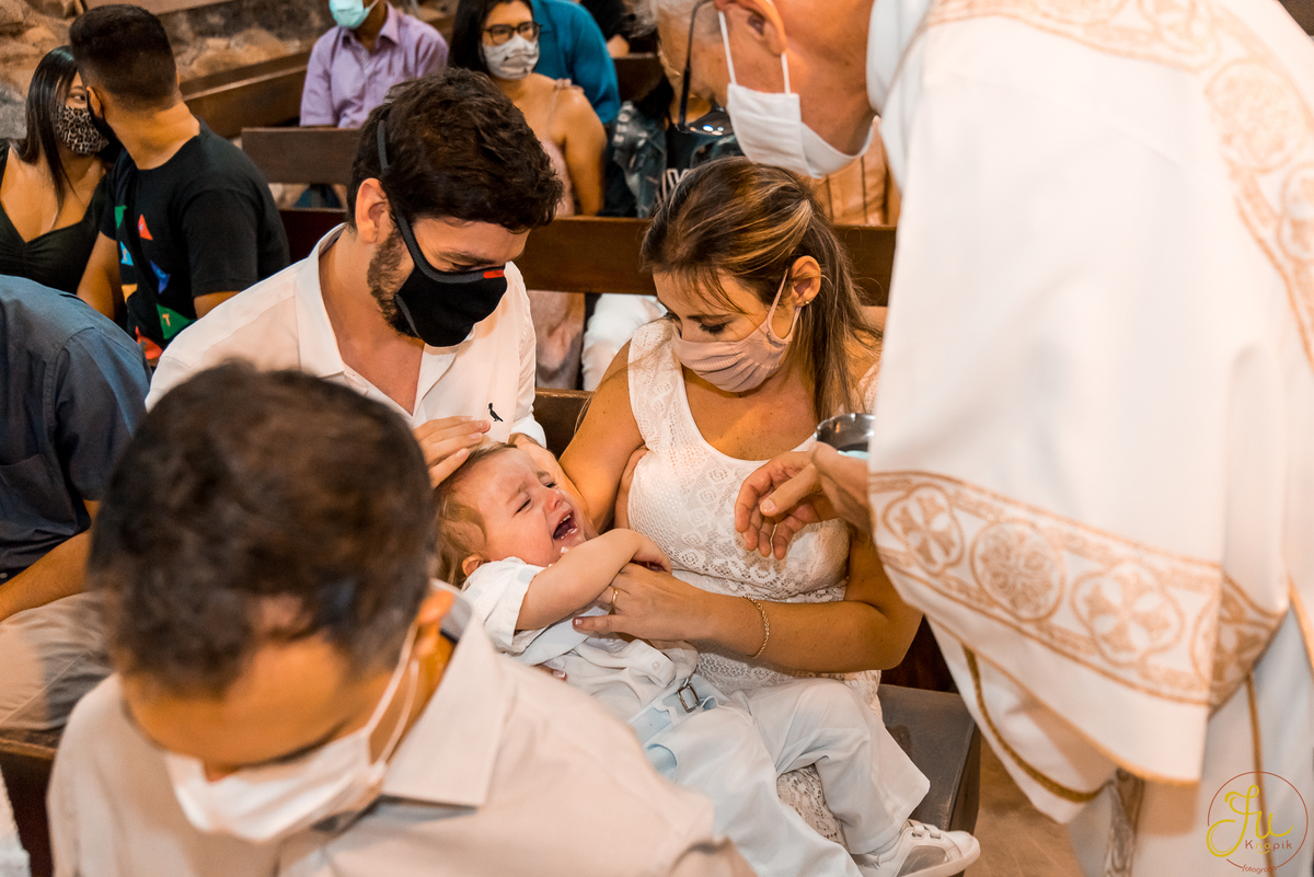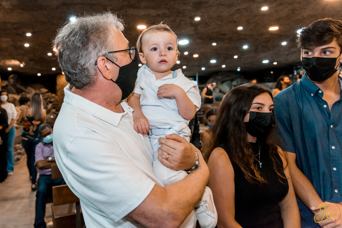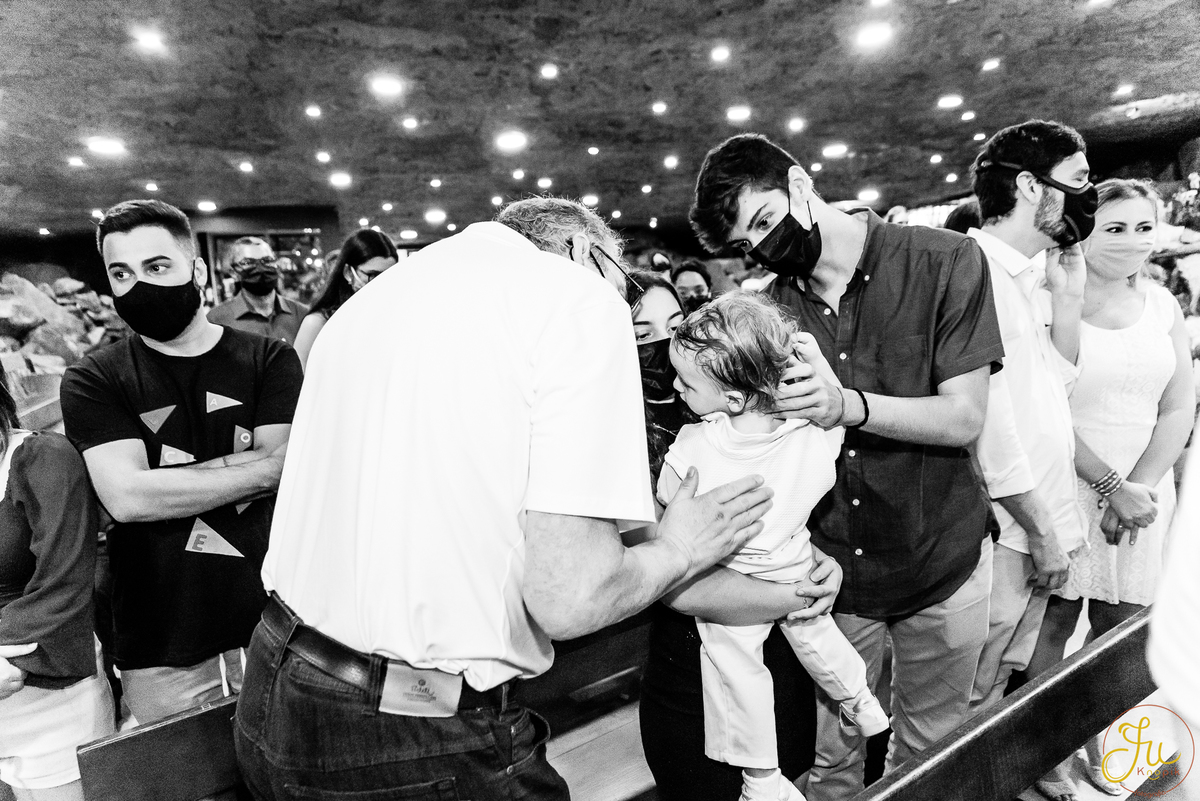 Como o Antônio nasceu justamente quando começou a pandemia aqui no Brasil, por medidas de segurança, a família optou por batiza-lo somente agora que todos estavam vacinados. Dessa forma a cerimonia pode ser na própria igreja, com a presença dos avós e dos amigos queridos.