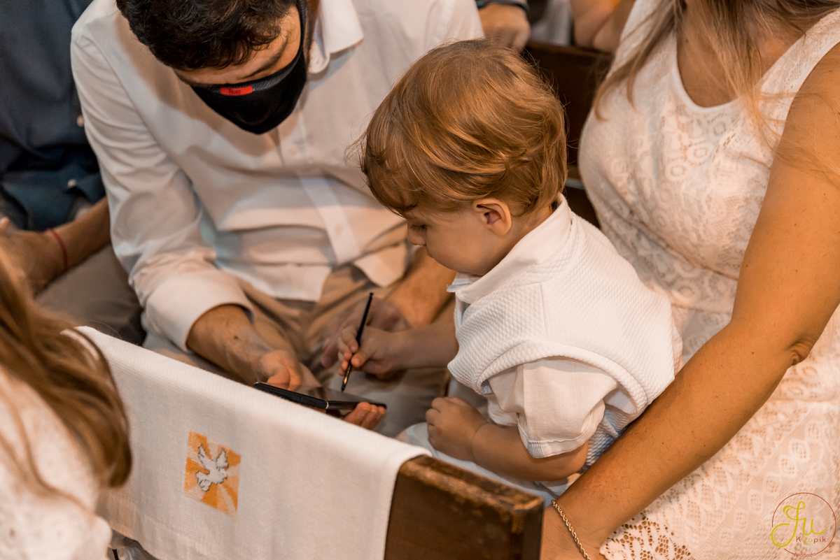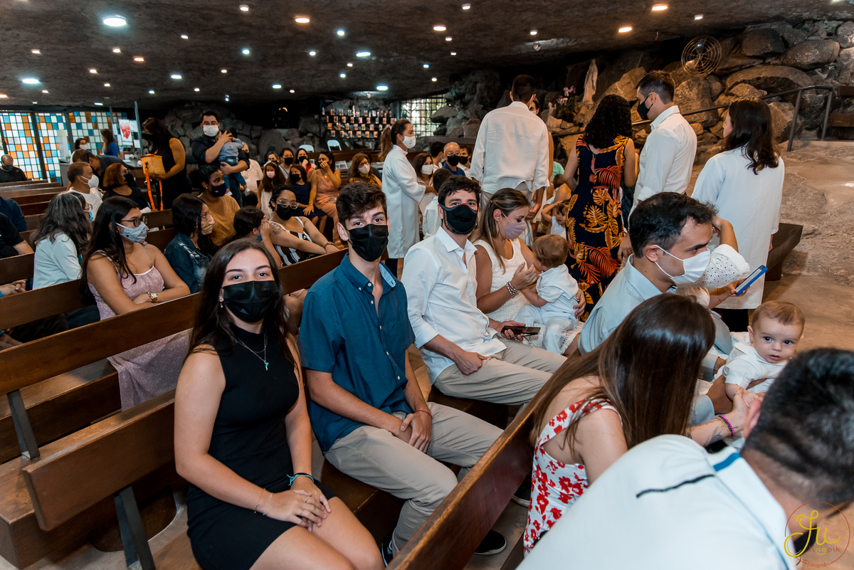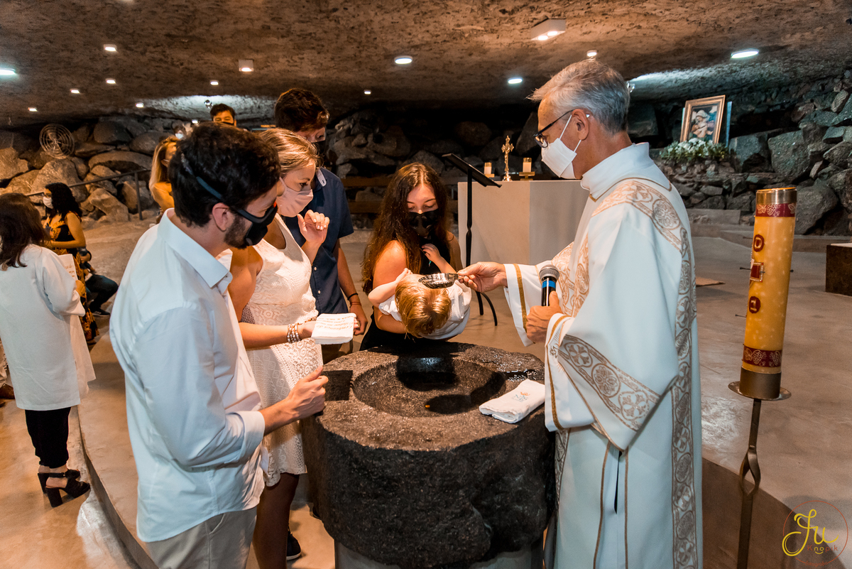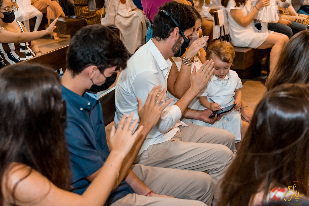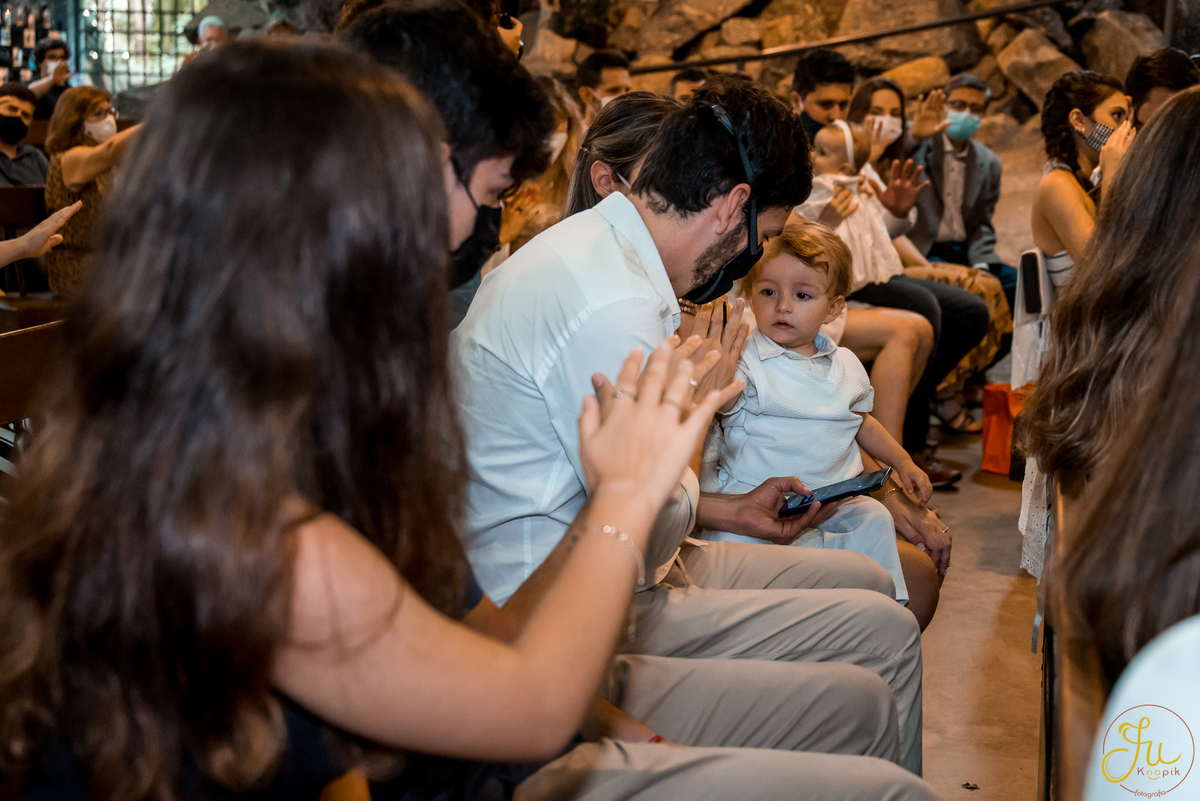 Como o Antônio nasceu justamente quando começou a pandemia aqui no Brasil, por medidas de segurança, a família optou por batiza-lo somente agora que todos estavam vacinados. Dessa forma a cerimonia pode ser na própria igreja, com a presença dos avós e dos amigos queridos.