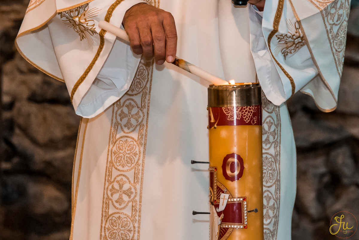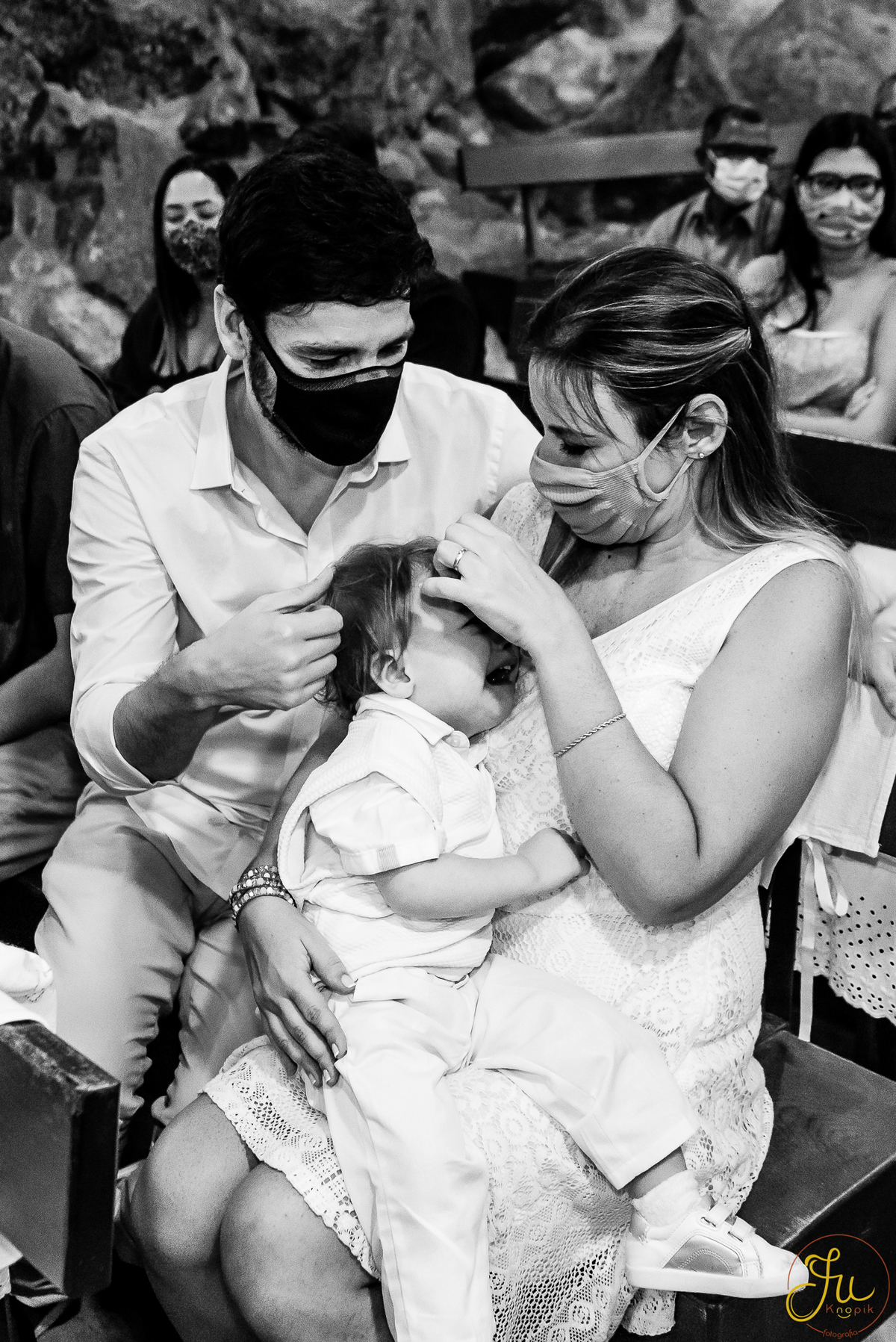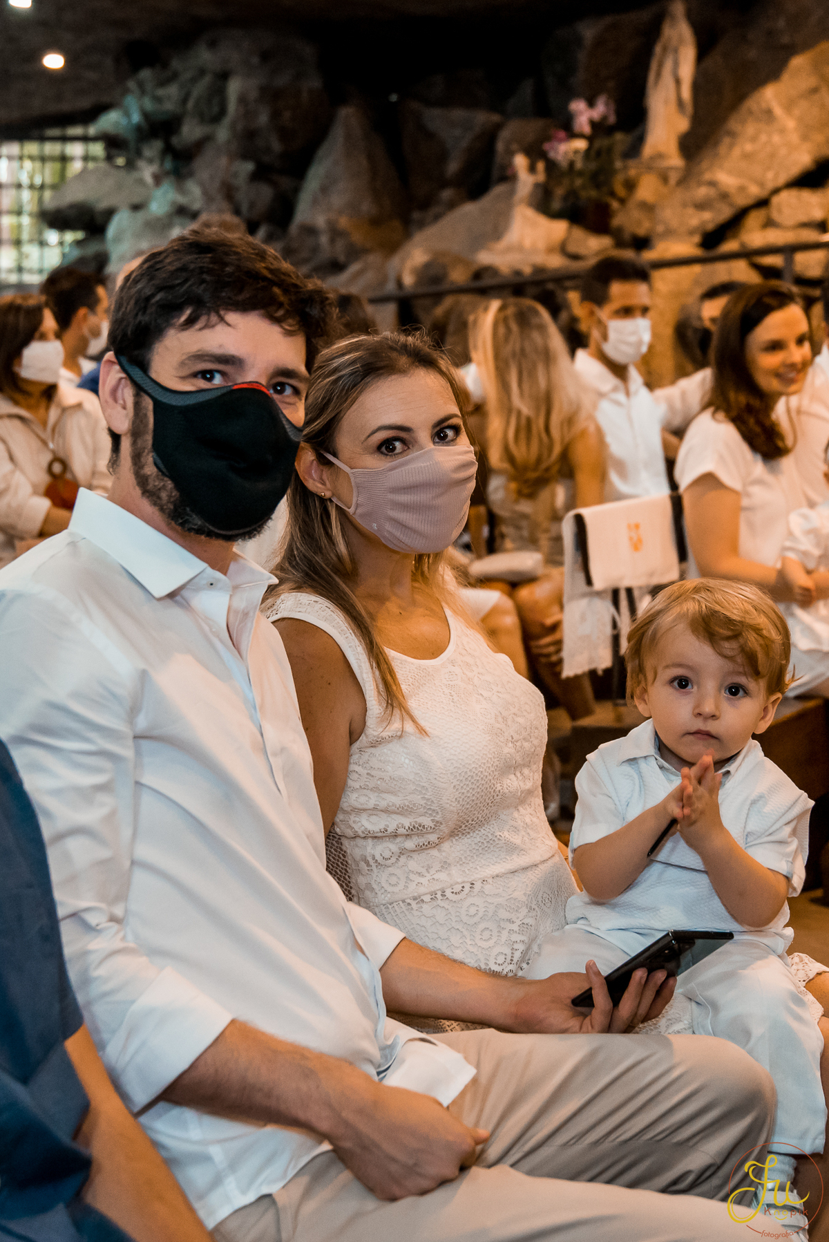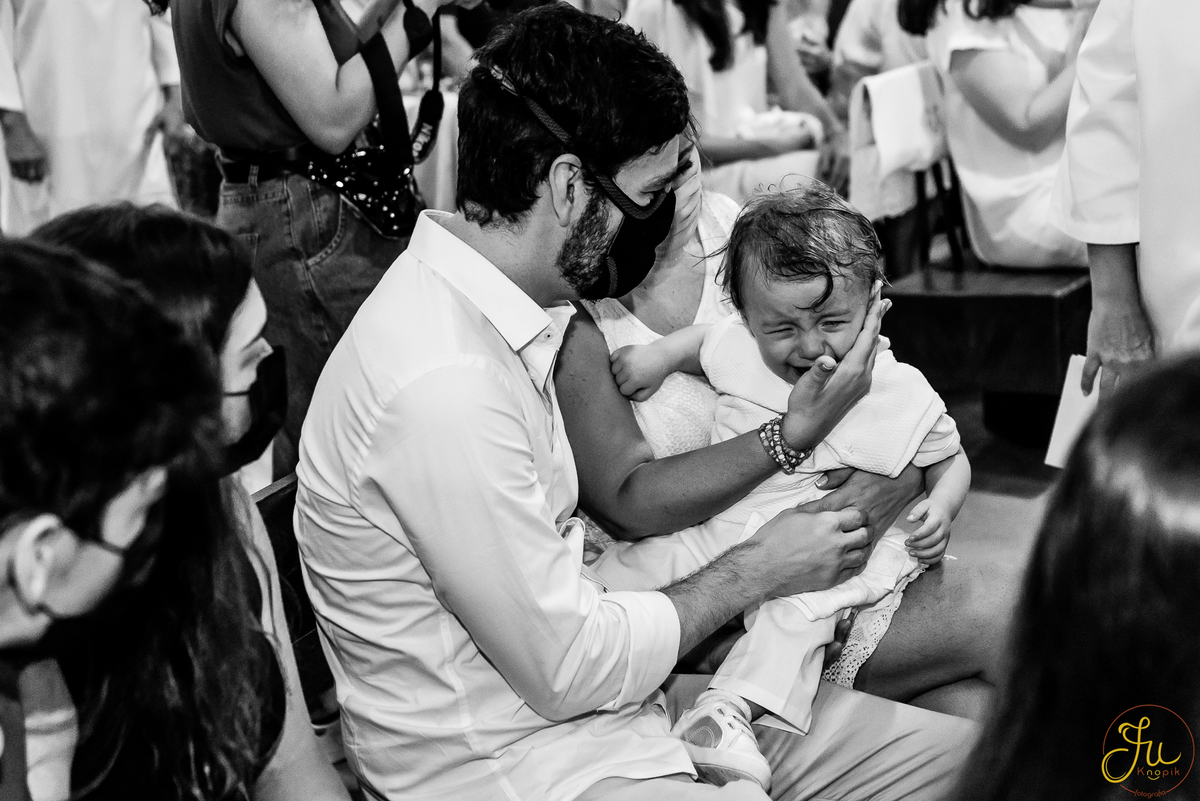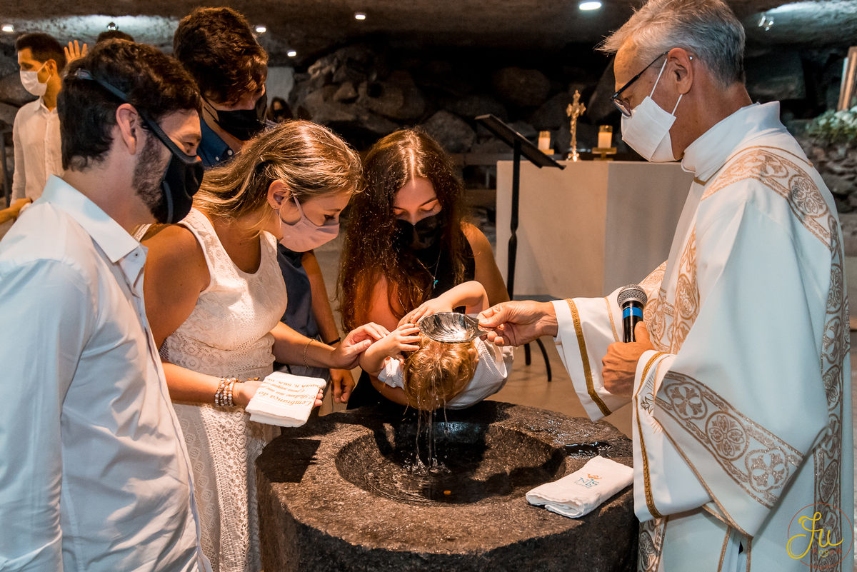Como o Antônio nasceu justamente quando começou a pandemia aqui no Brasil, por medidas de segurança, a família optou por batiza-lo somente agora que todos estavam vacinados. Dessa forma a cerimonia pode ser na própria igreja, com a presença dos avós e dos amigos queridos.