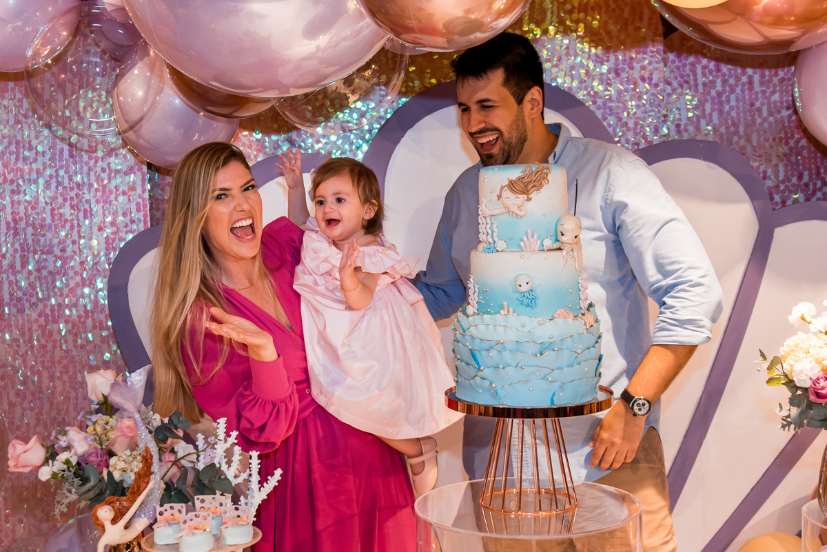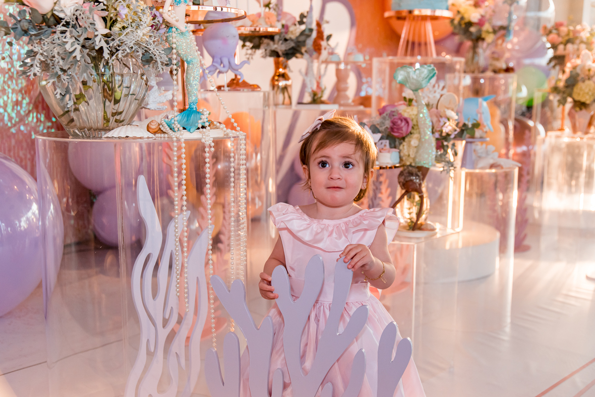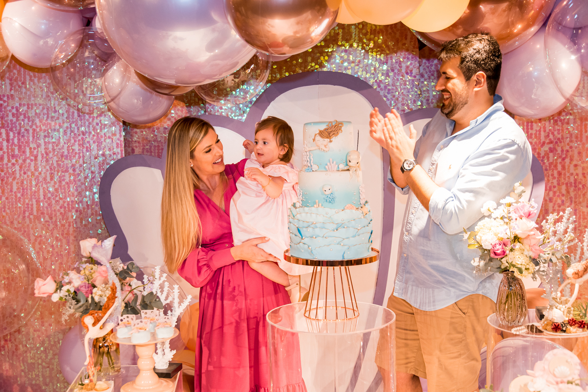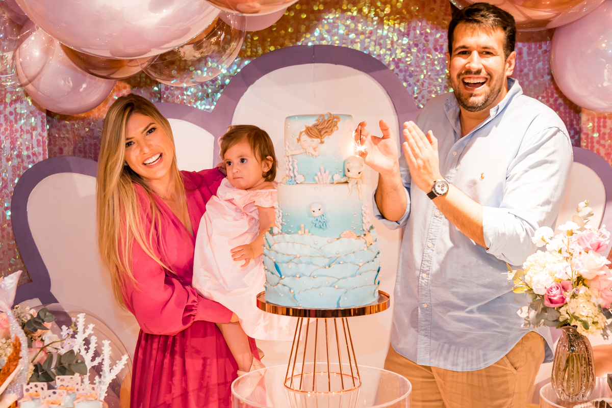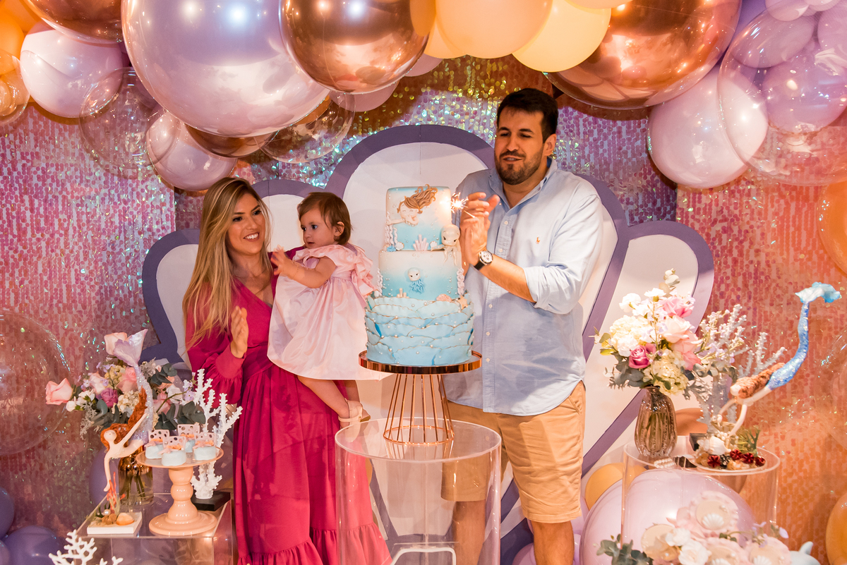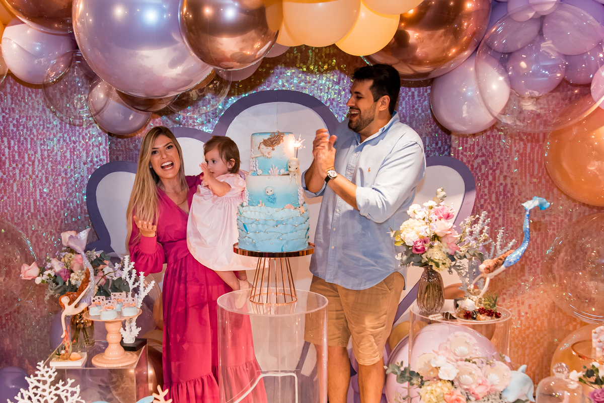 Além da decoração lindíssima, tema Sereia e Fundo do Mar, a Mafê recebeu seus amiguinhos e familiares com muita música e brincadeiras.