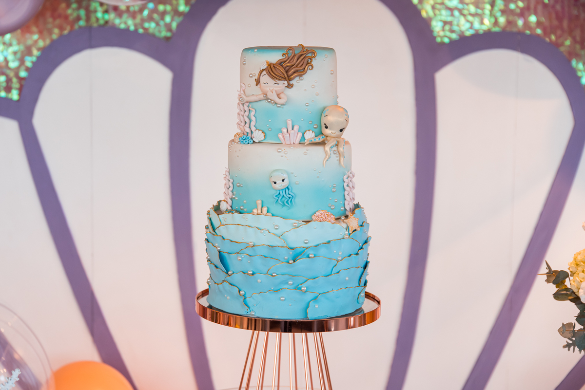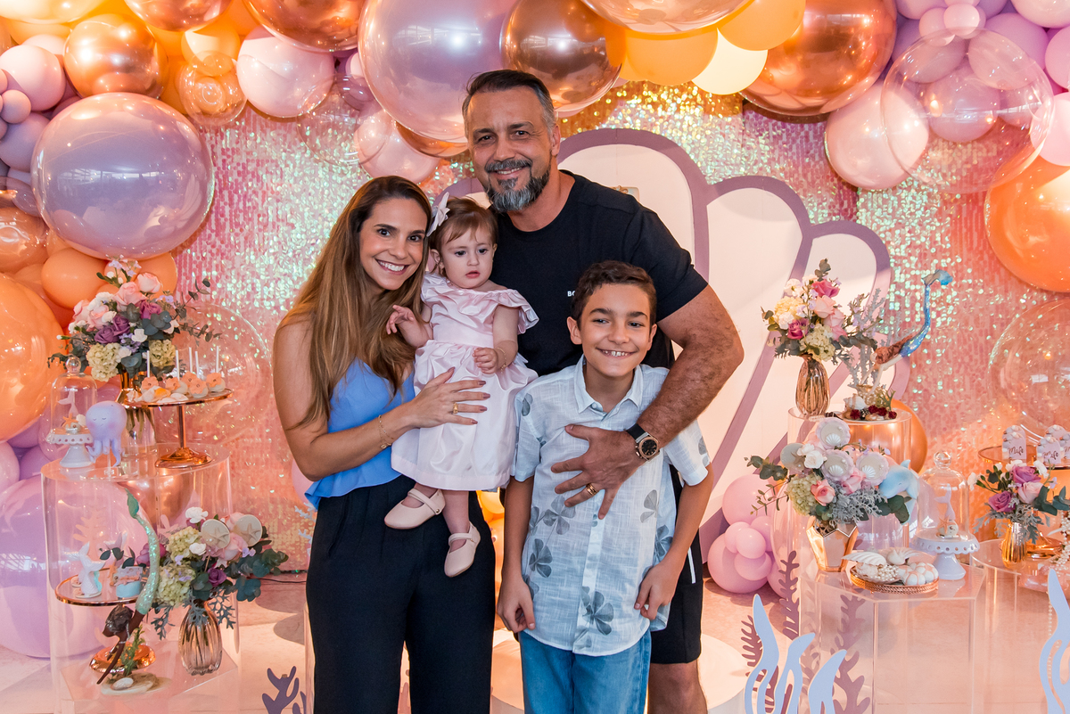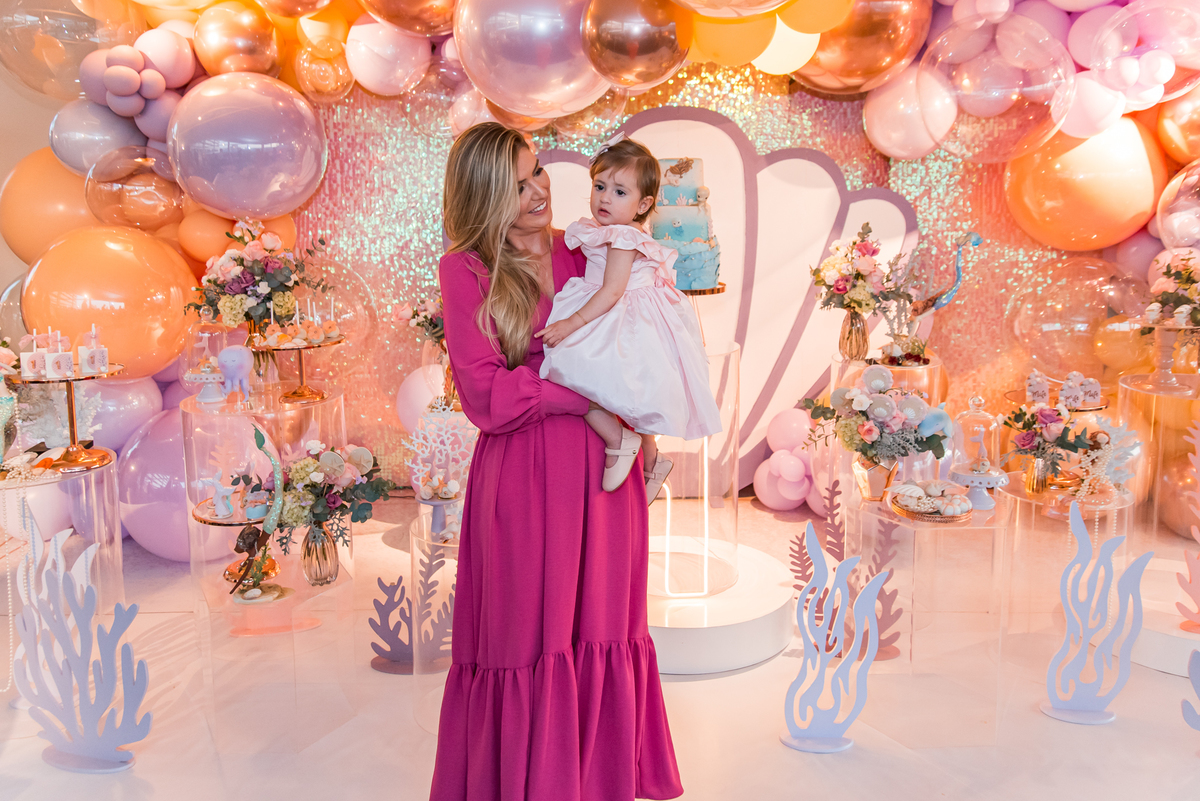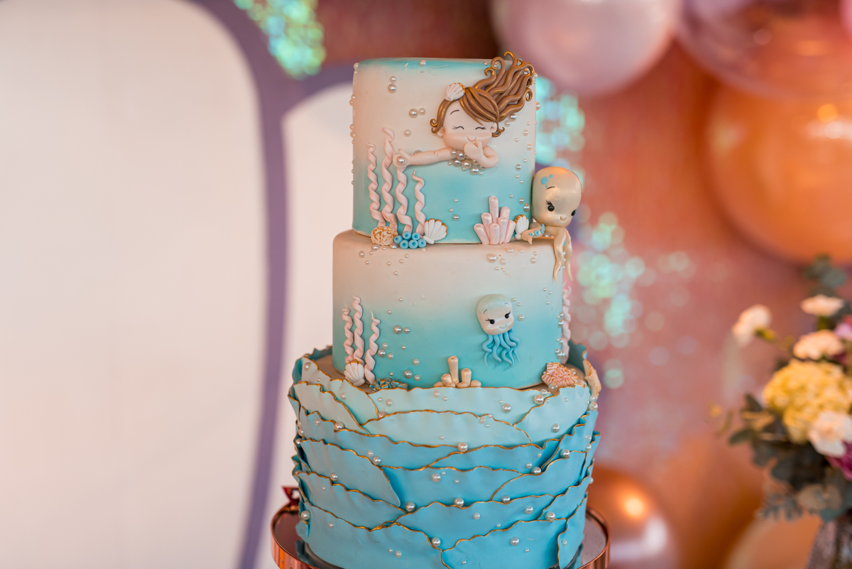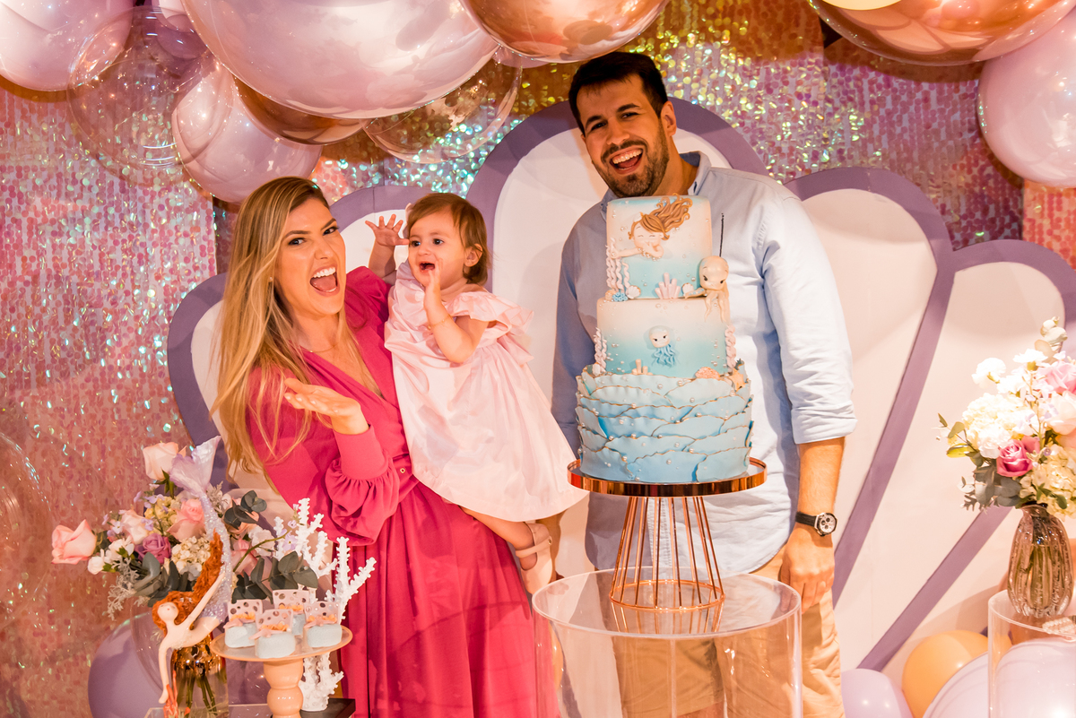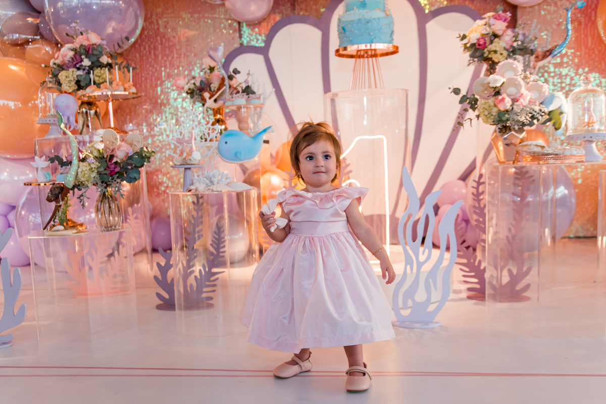 Além da decoração lindíssima, tema Sereia e Fundo do Mar, a Mafê recebeu seus amiguinhos e familiares com muita música e brincadeiras.