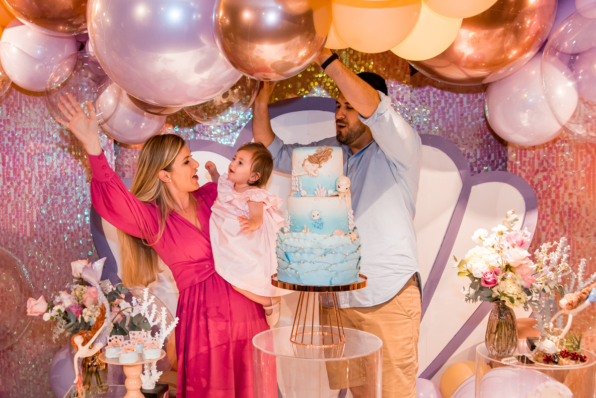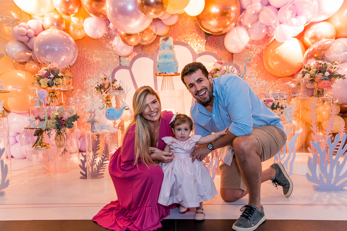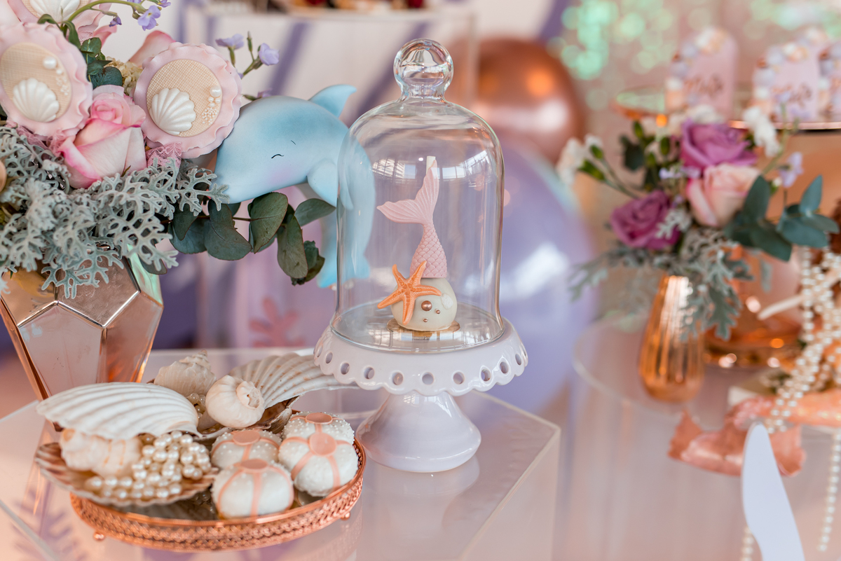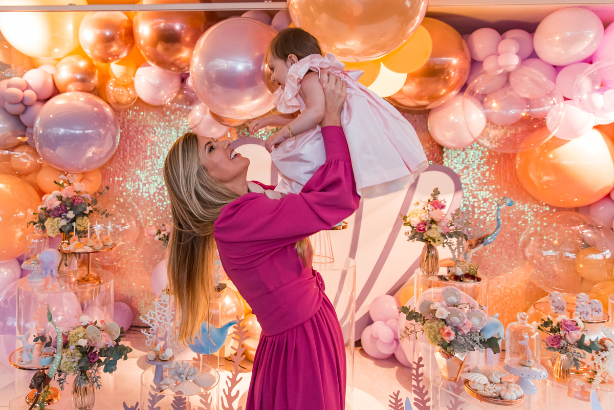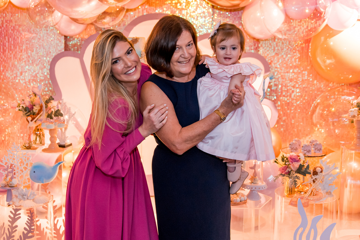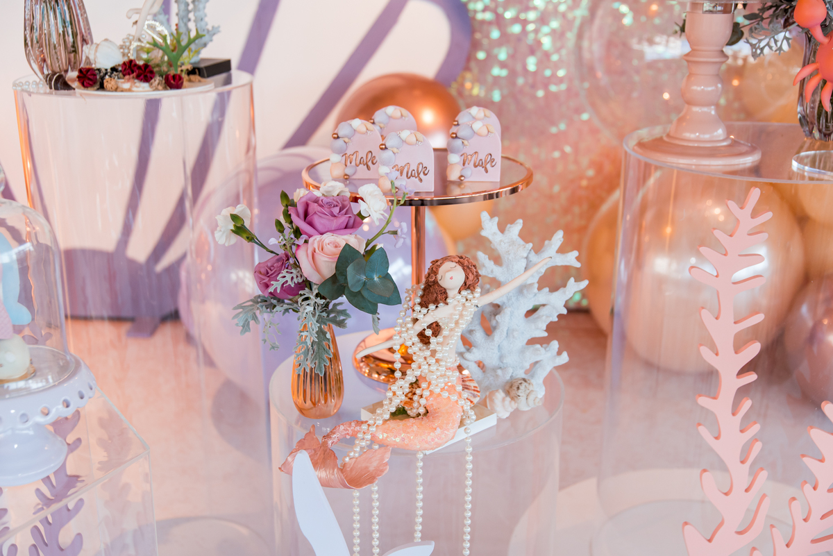 Além da decoração lindíssima, tema Sereia e Fundo do Mar, a Mafê recebeu seus amiguinhos e familiares com muita música e brincadeiras.