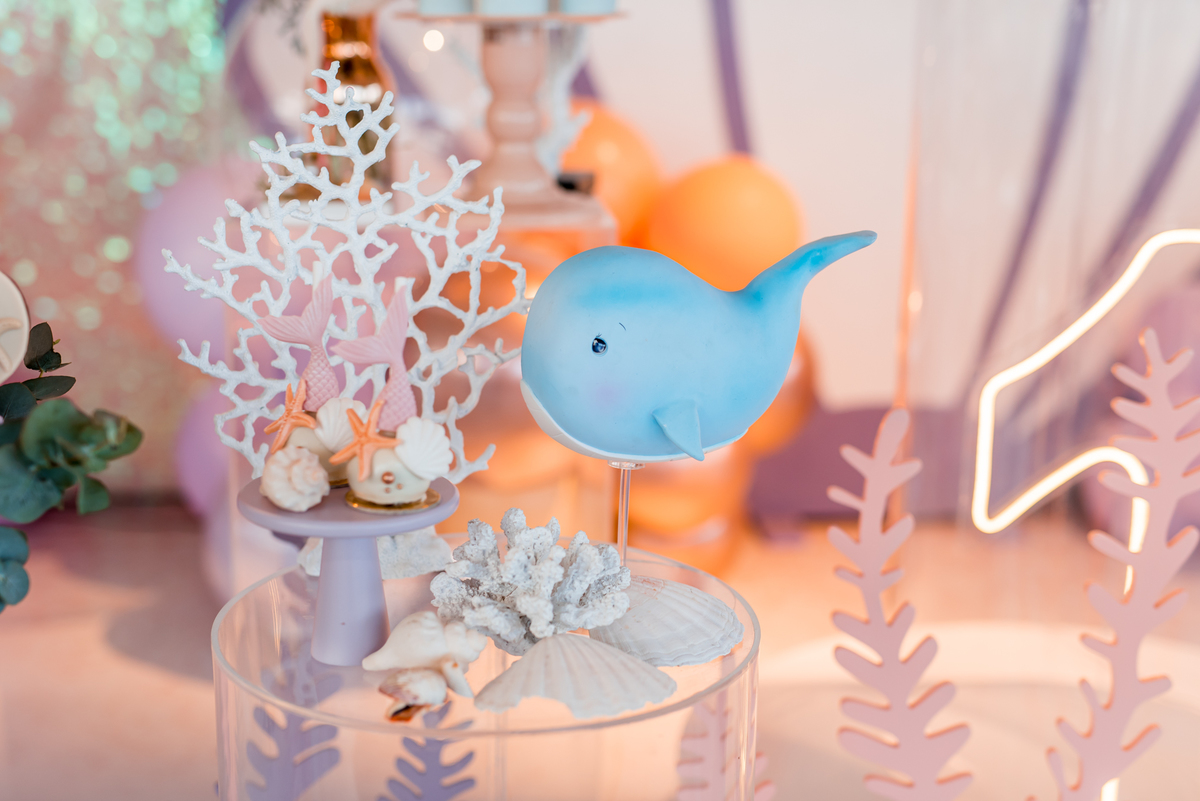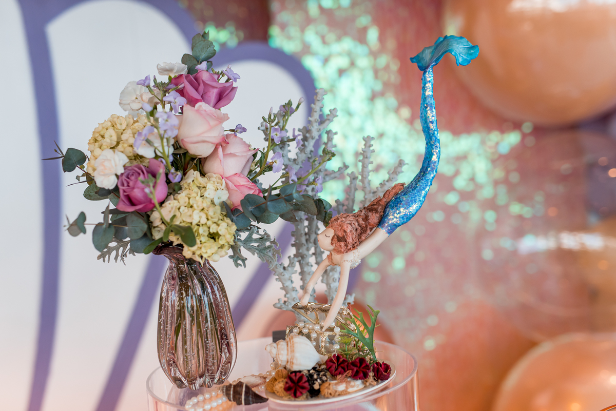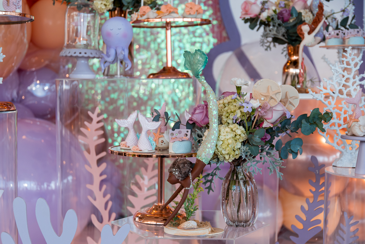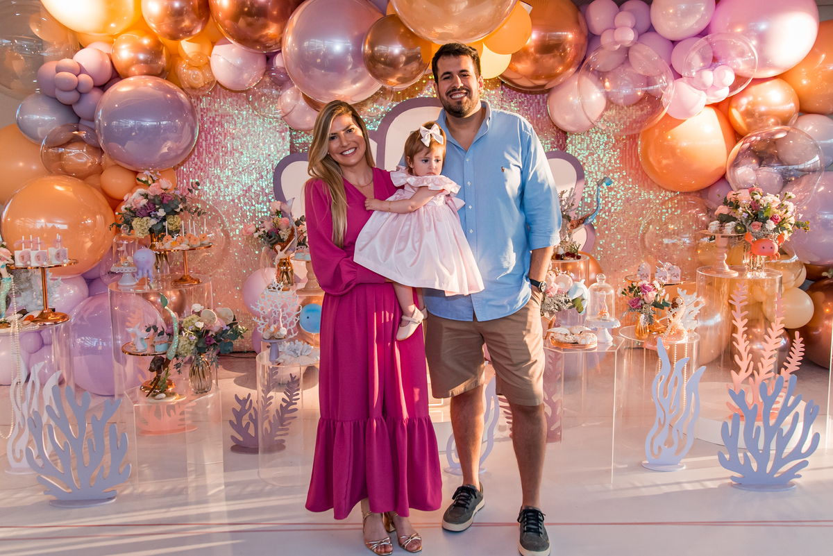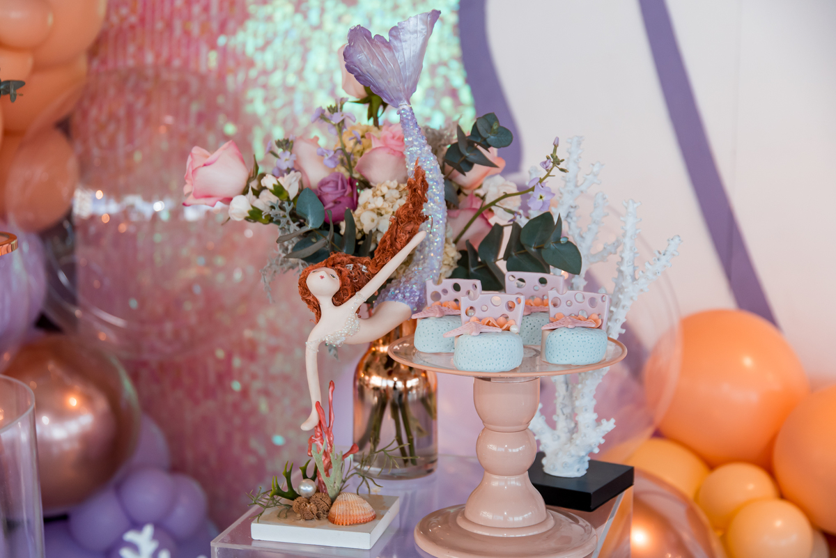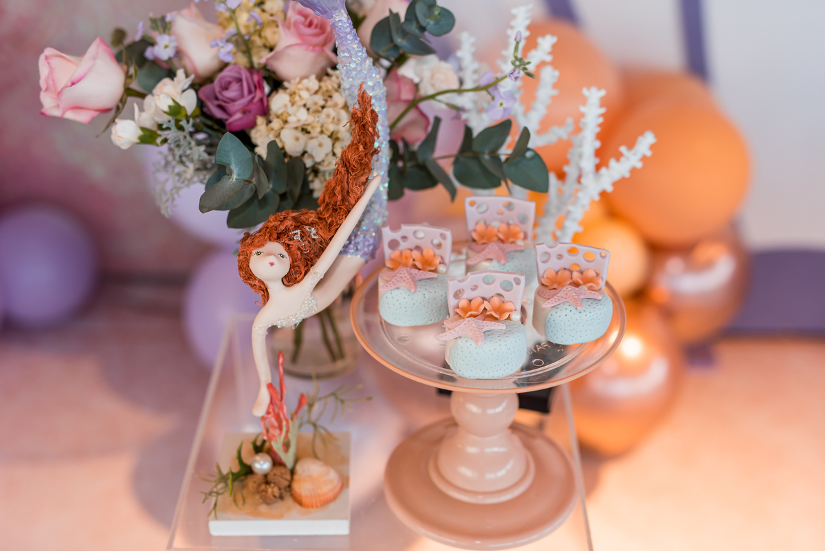 Além da decoração lindíssima, tema Sereia e Fundo do Mar, a Mafê recebeu seus amiguinhos e familiares com muita música e brincadeiras.