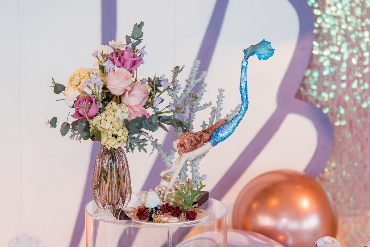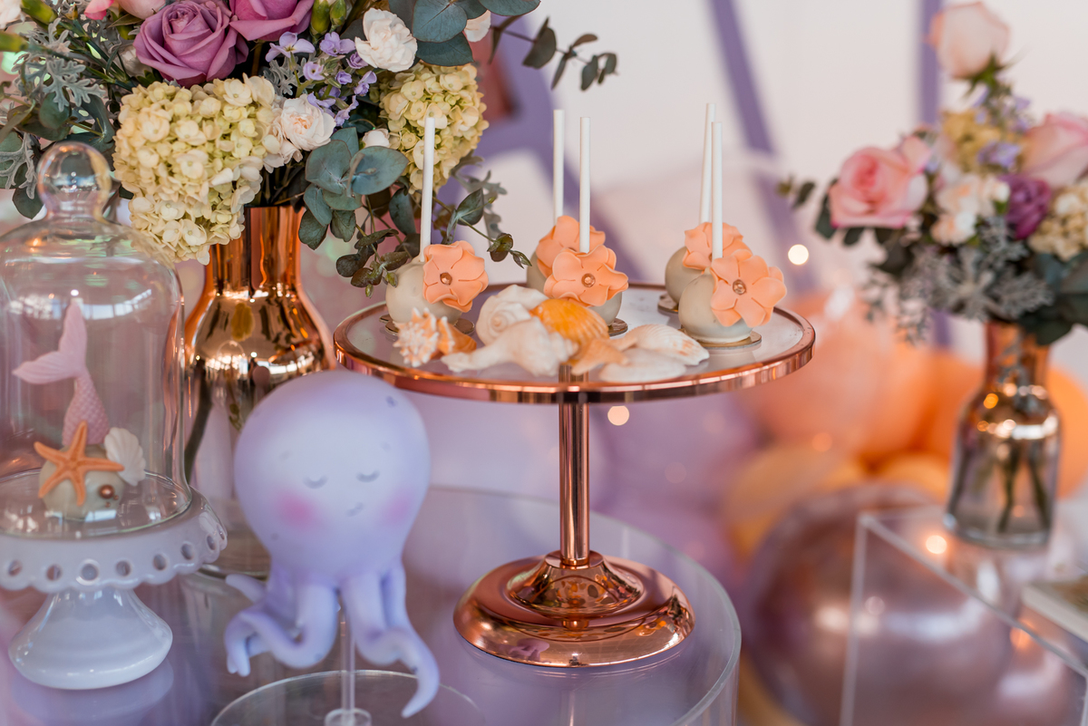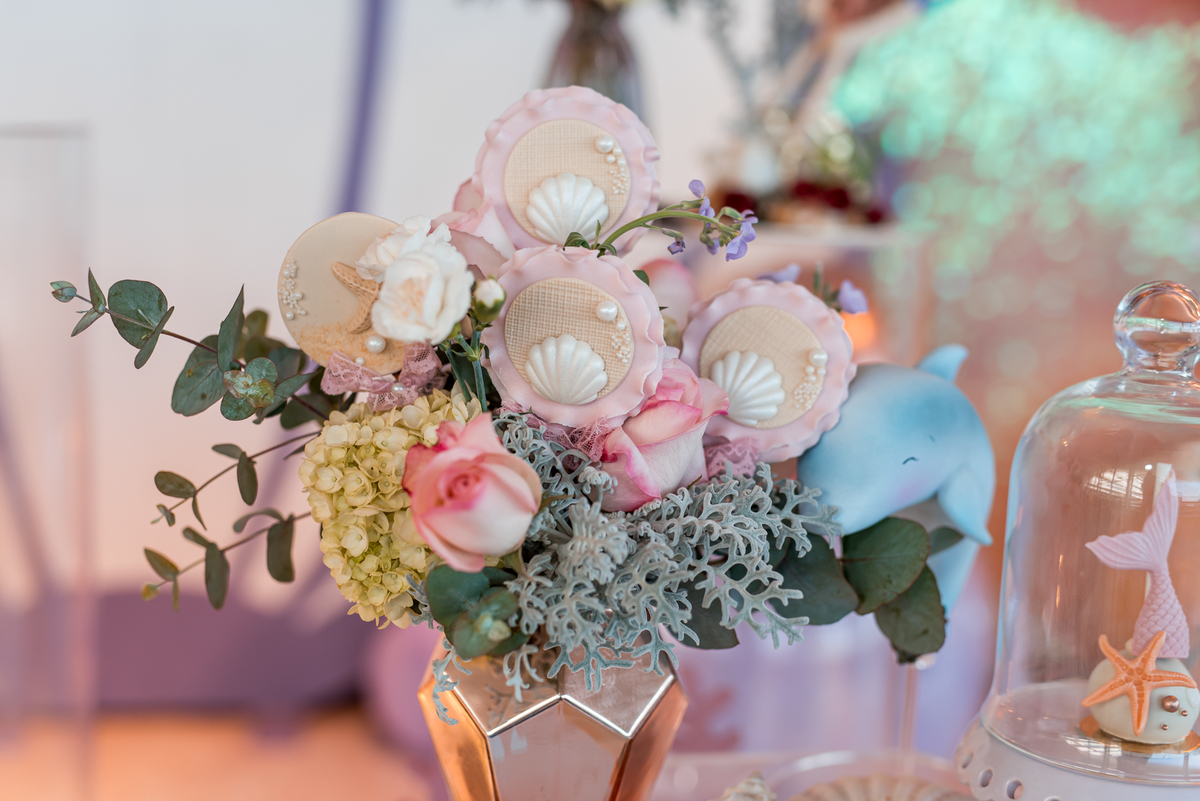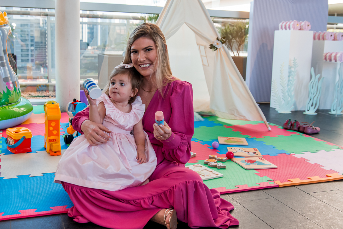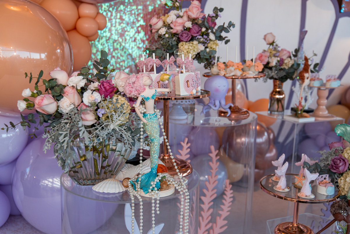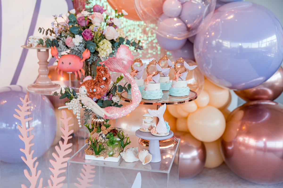 Além da decoração lindíssima, tema Sereia e Fundo do Mar, a Mafê recebeu seus amiguinhos e familiares com muita música e brincadeiras.