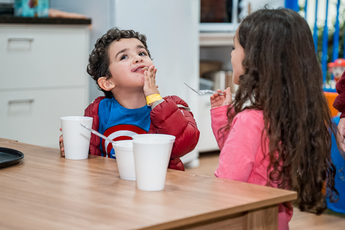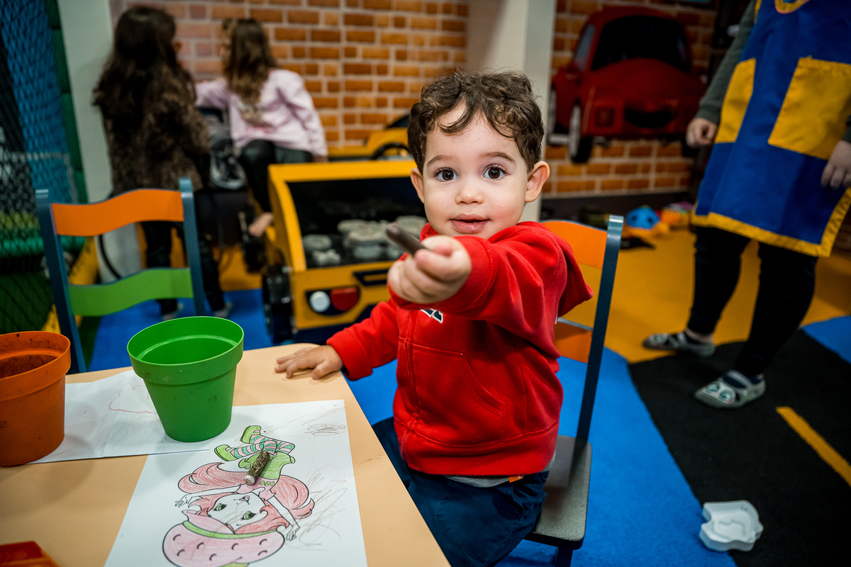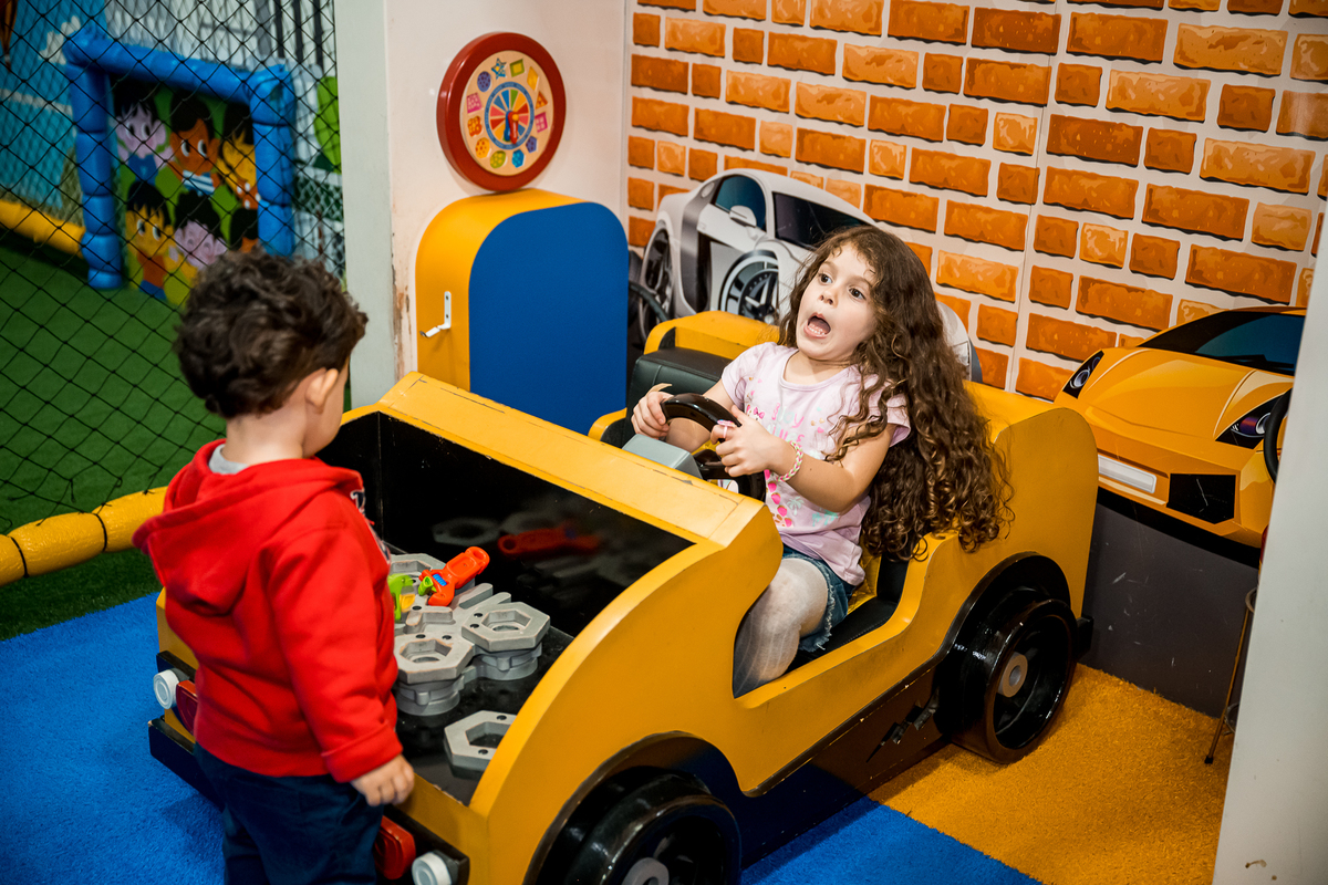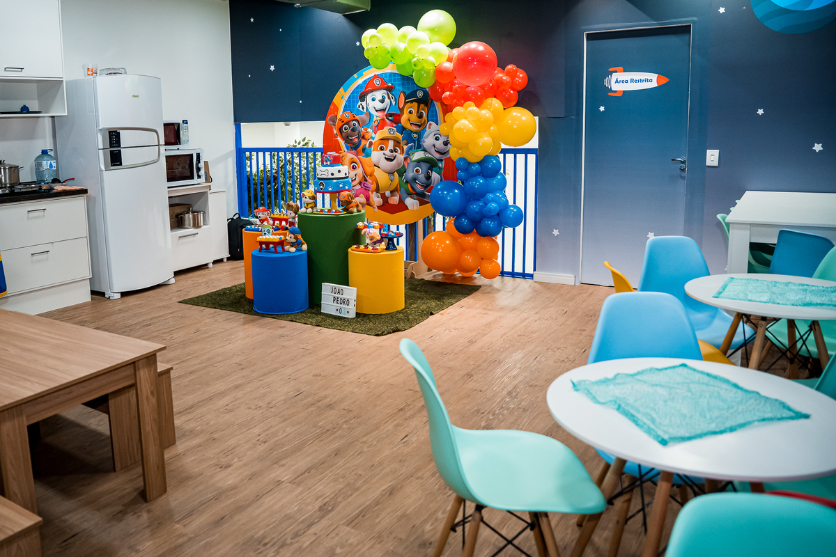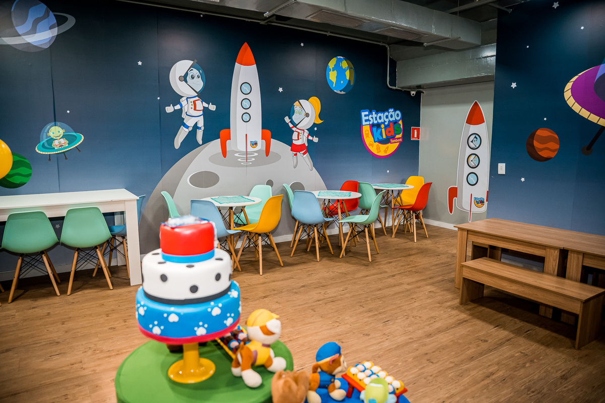 O Lugar escolhido foi o Buffet Estação Kids, que fica dentro do Shopping Tamboré, e tem um espaço bem aconchegante para as crianças brincarem a vontade.