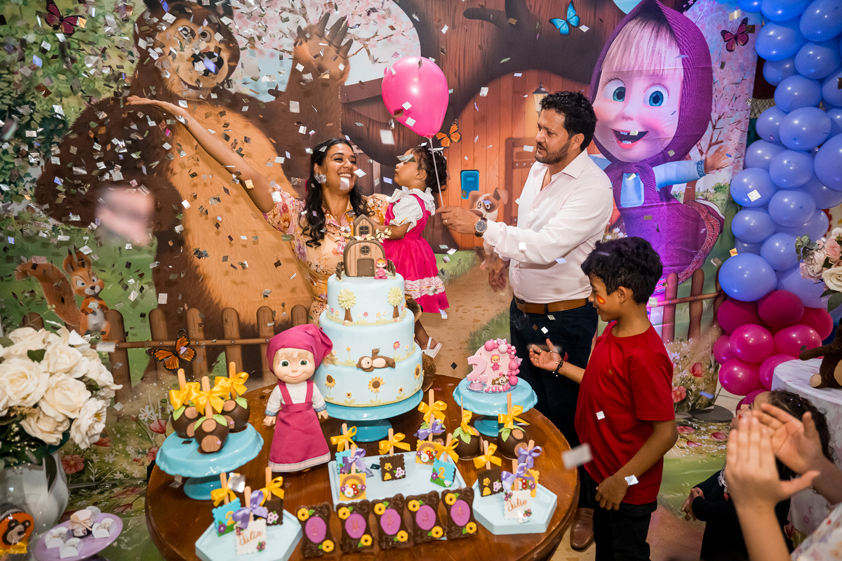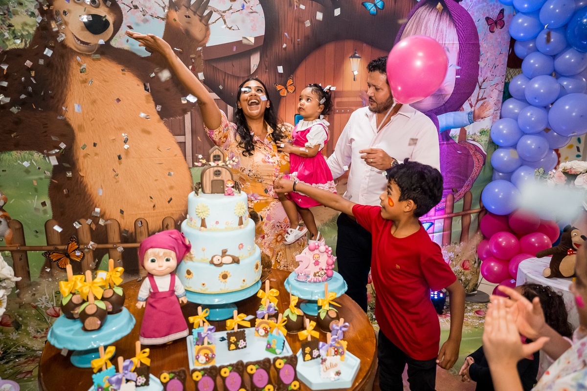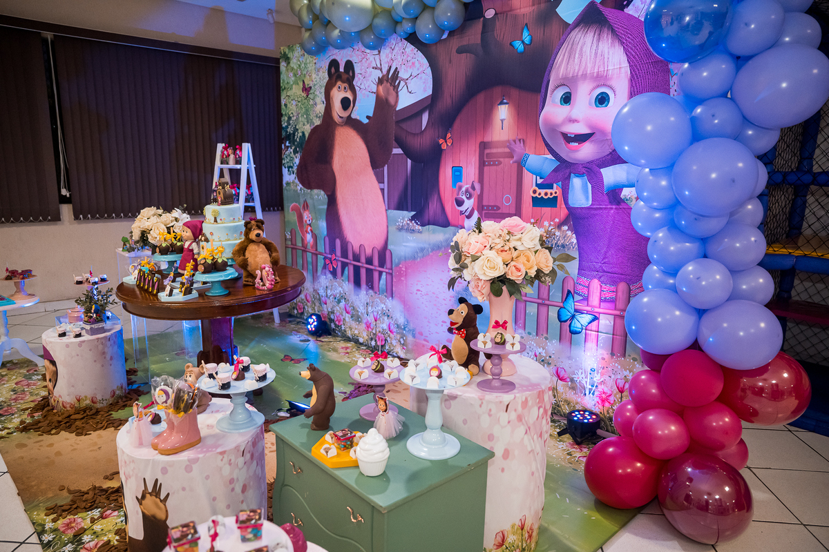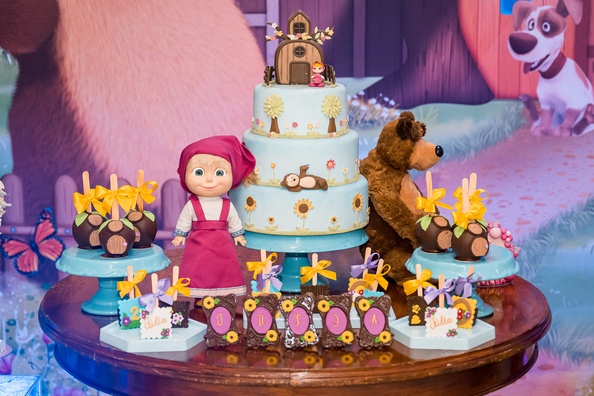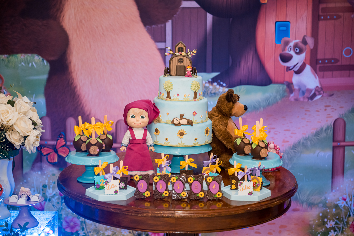 O tema escolhido para o aniversário da Julia foi Masha e o Urso.