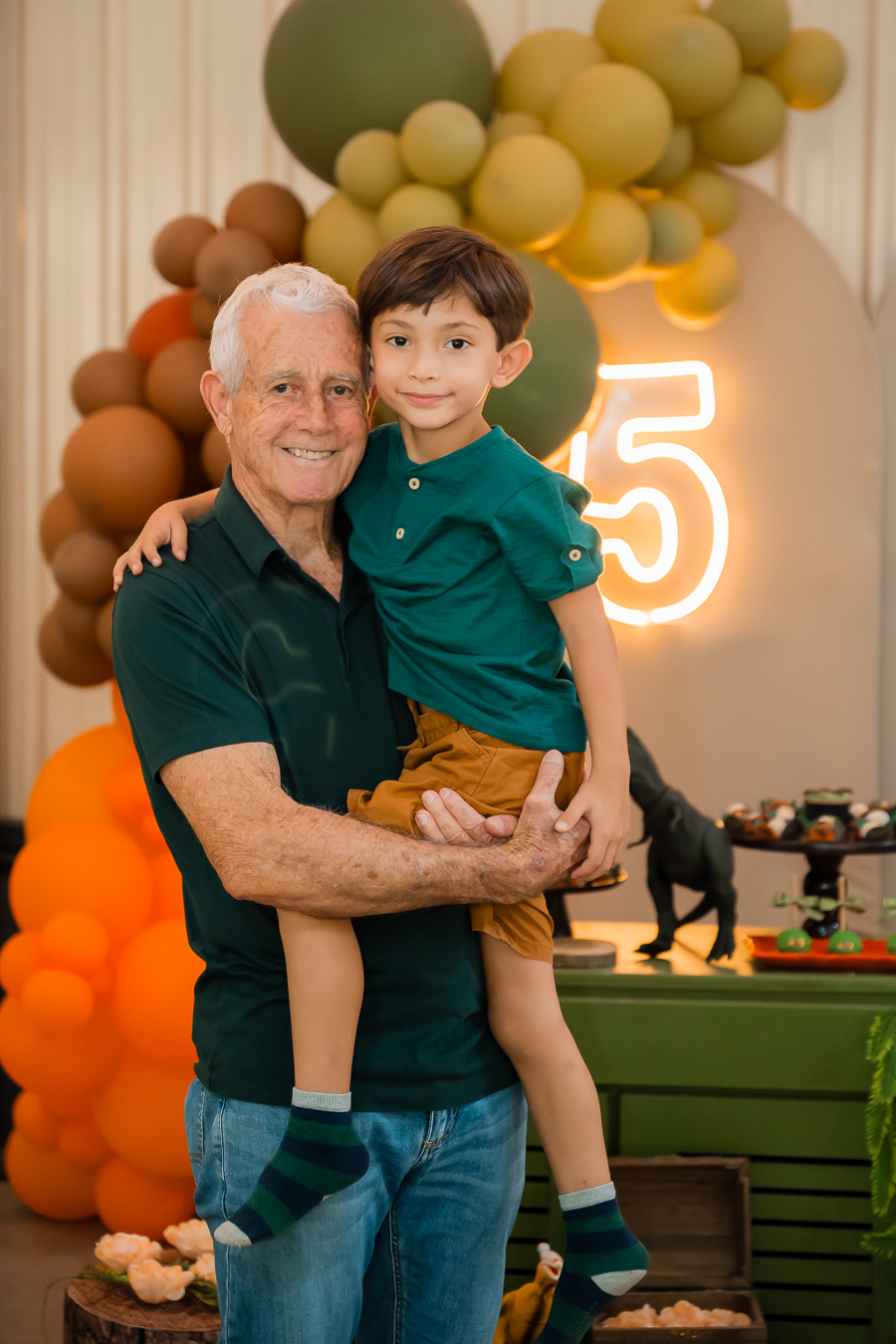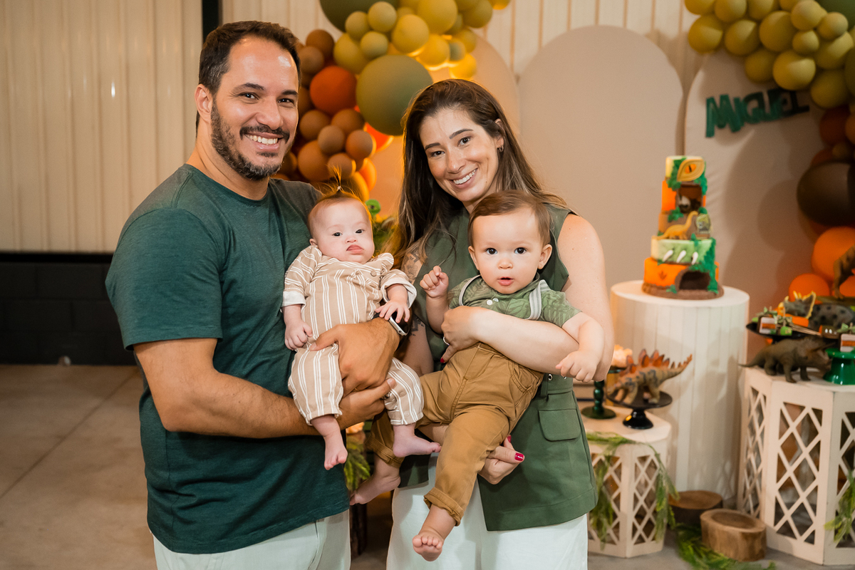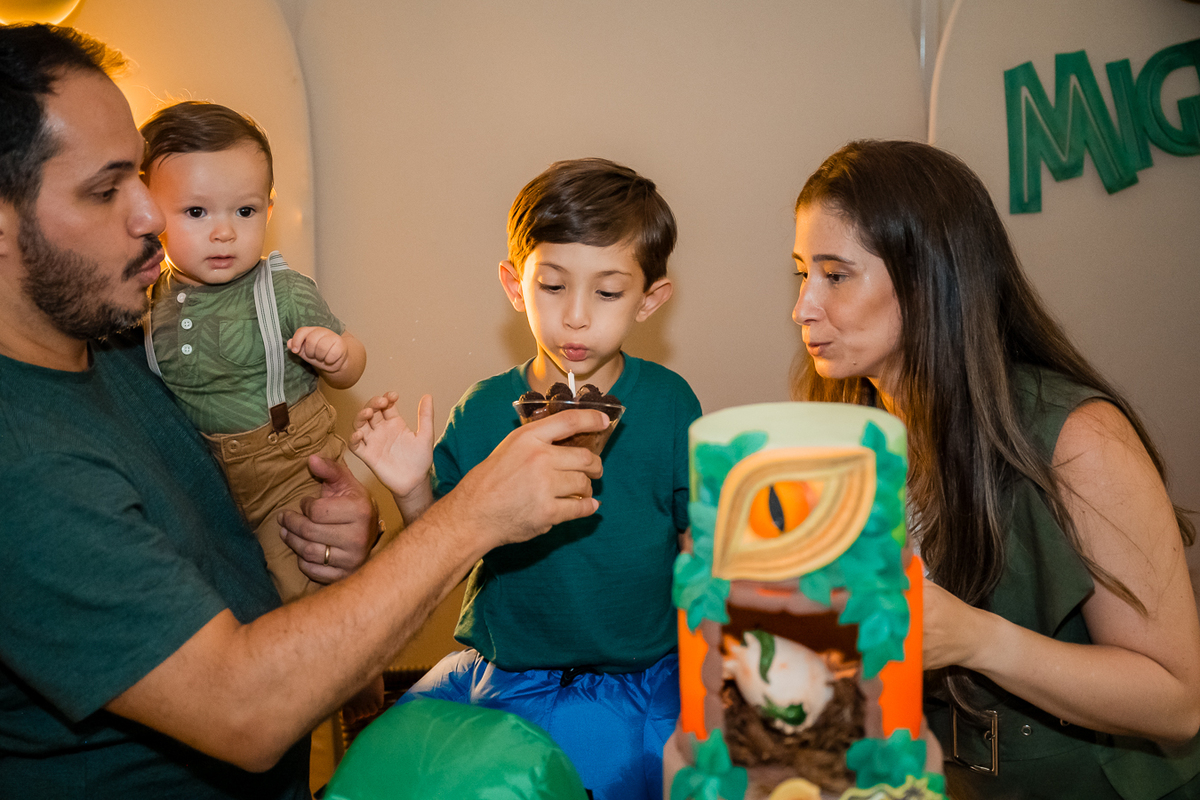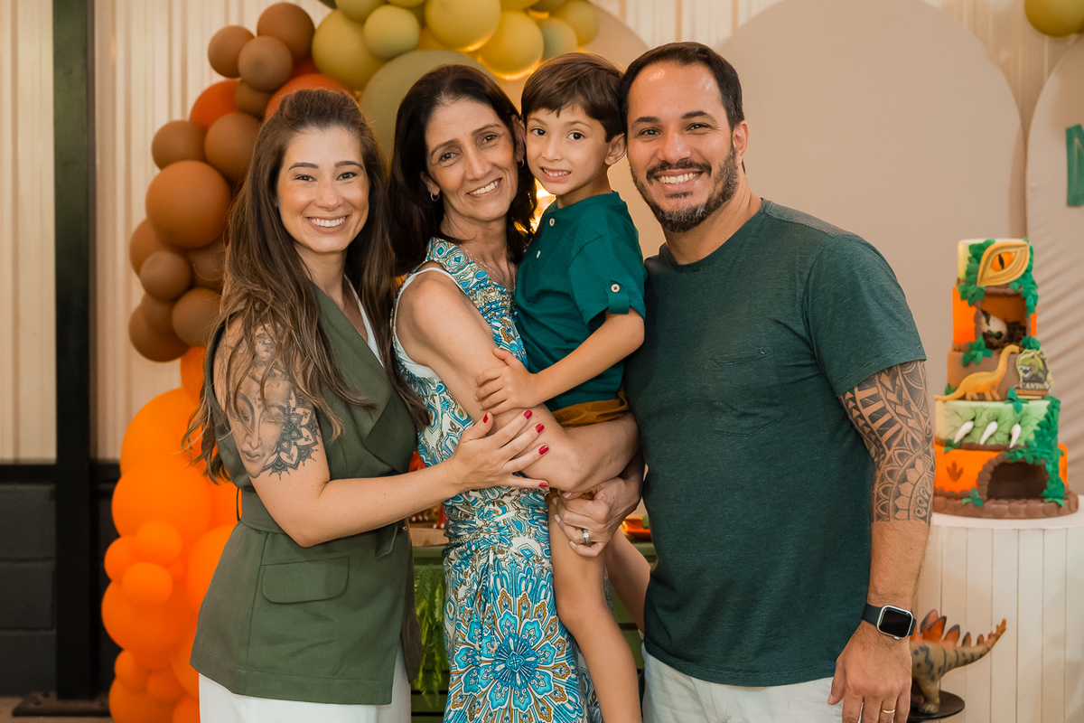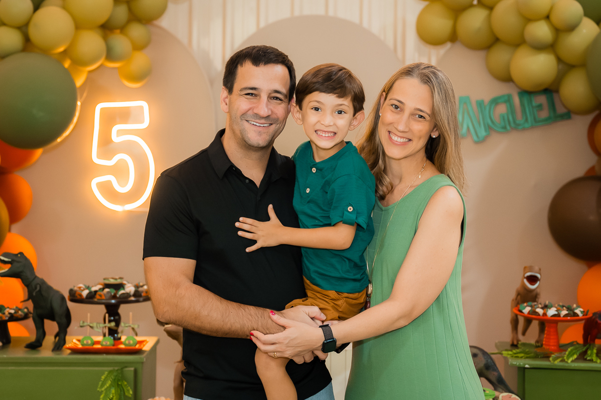 O Aniversário do Miguel foi do jeitinho que ele gosta: Muitos amigos e muitos dinossauros ferozes.