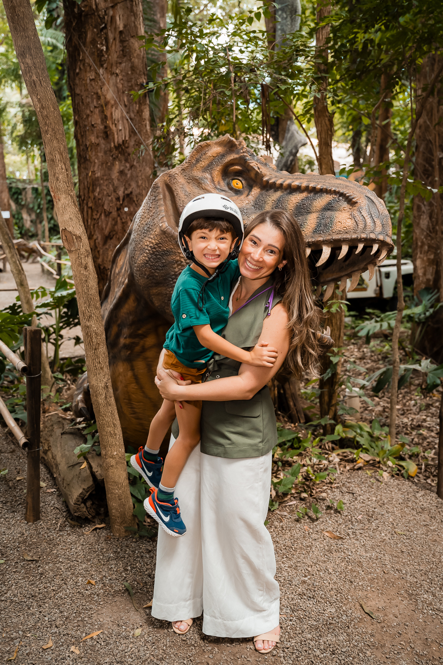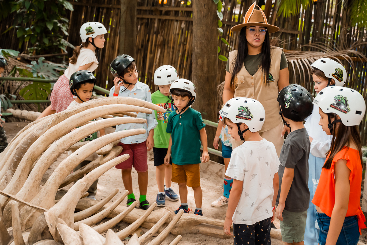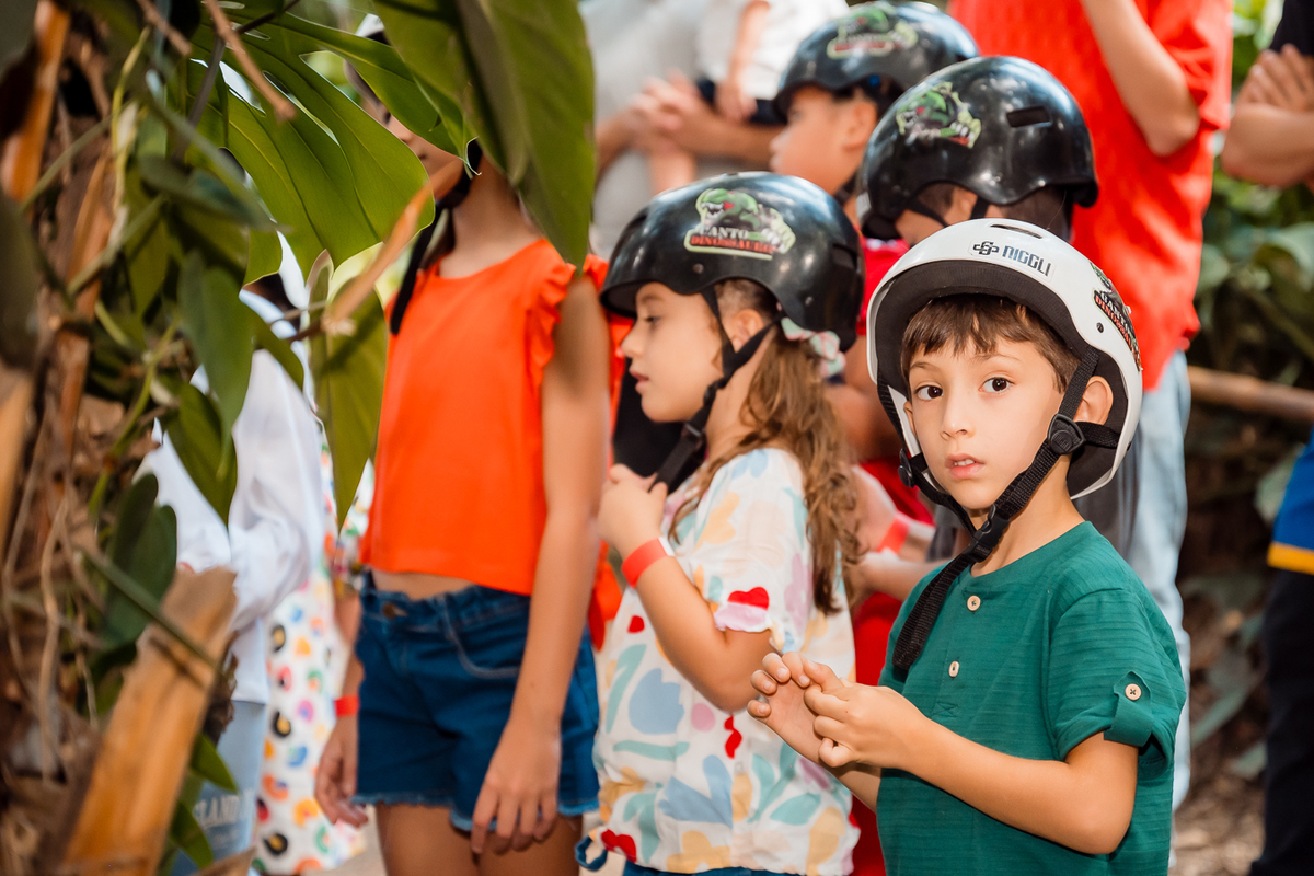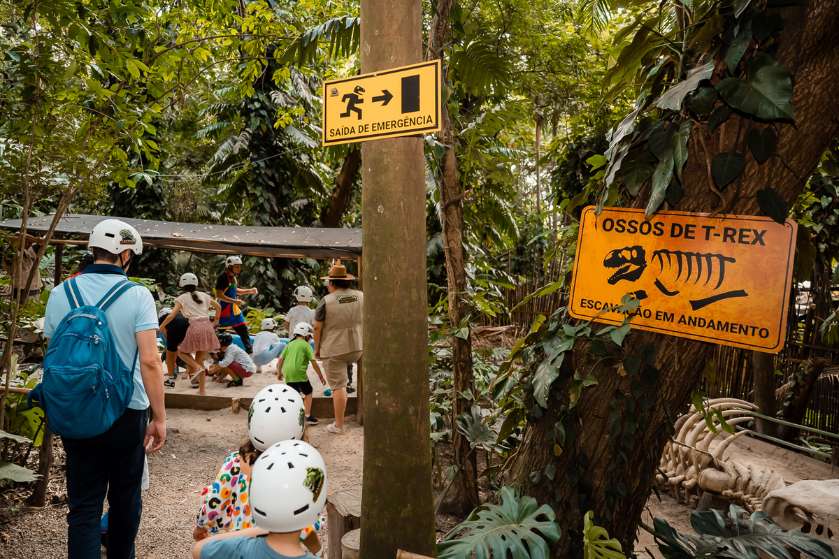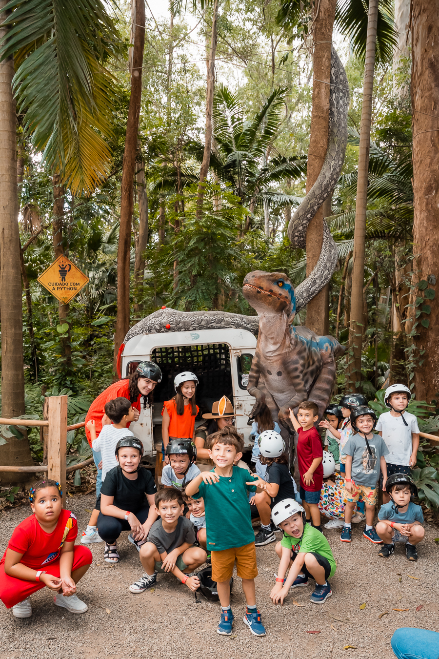 Eles aprenderam um pouco sobre cada dinossauro, fizeram tirolesa, arvorismo e até escavaram em busca de fósseis.