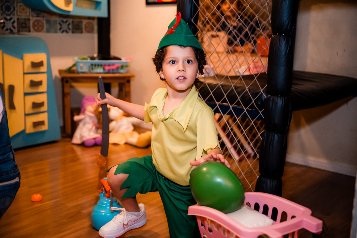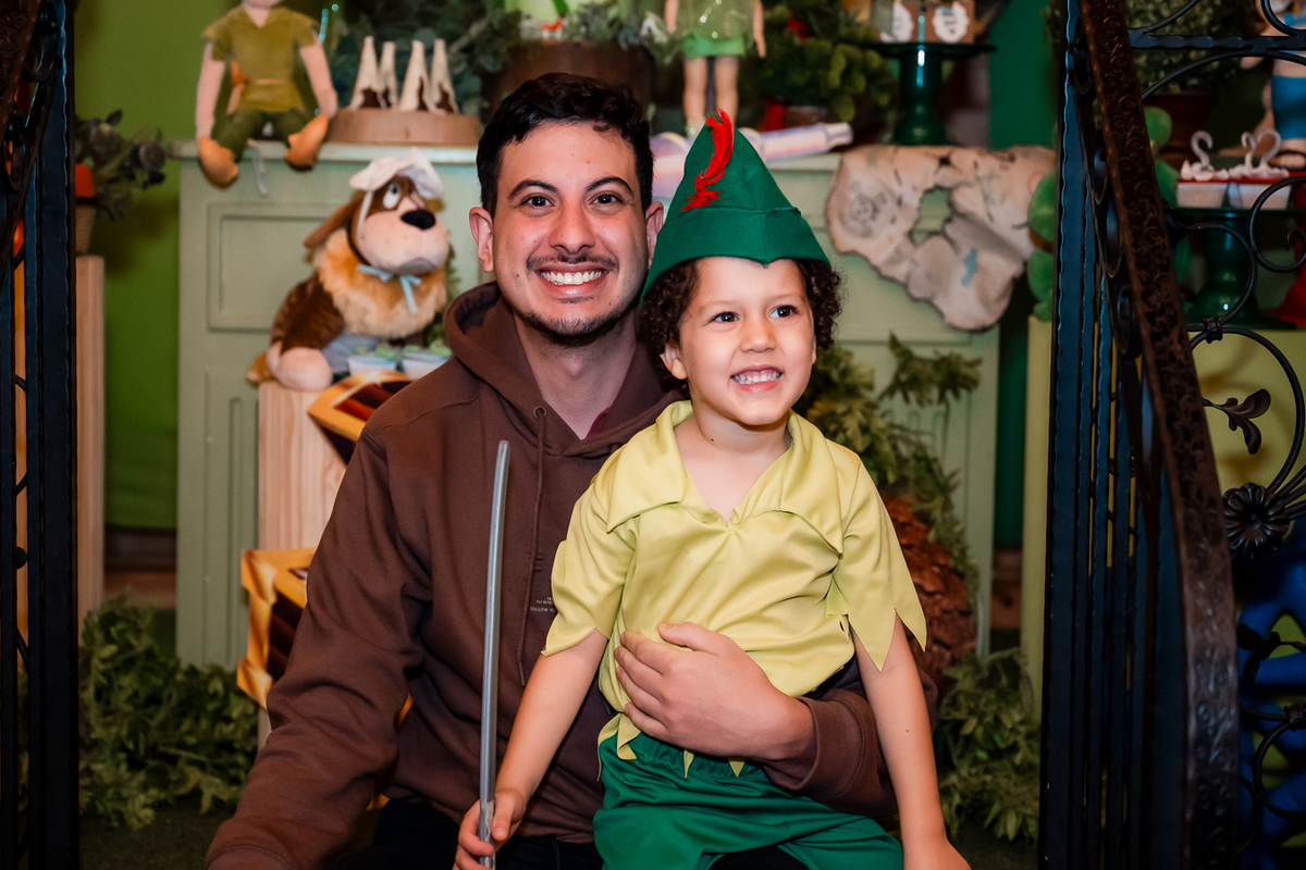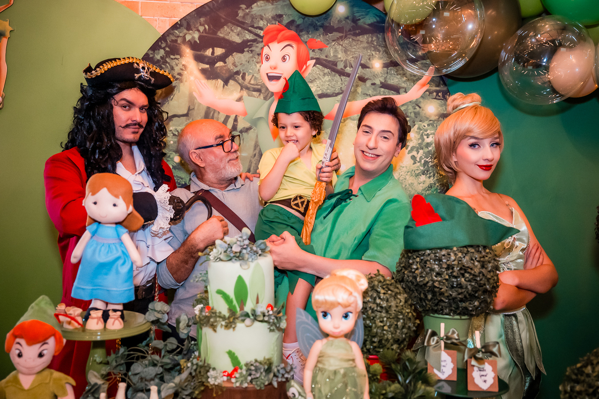 E O Vicente chamou a turminha do Peter Pan, diretamente da Terra do Nunca, para comemorar seu aniversário.
