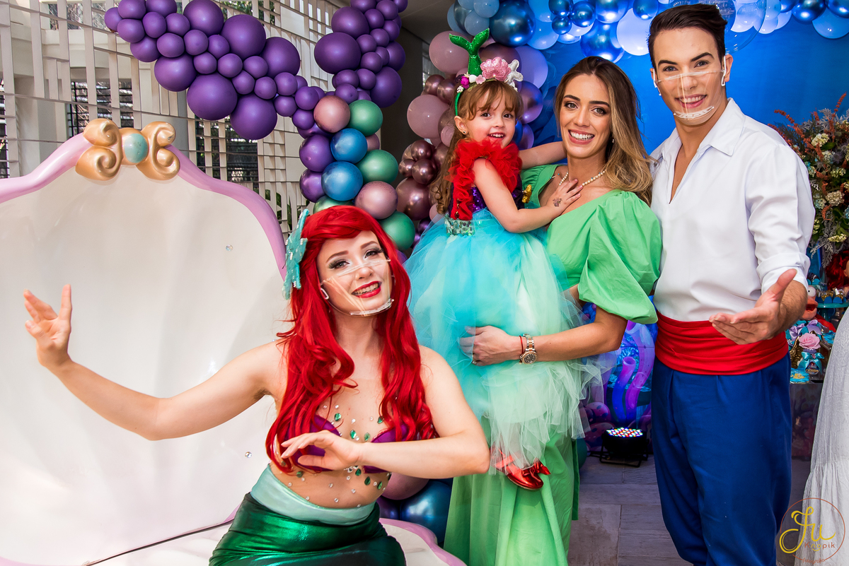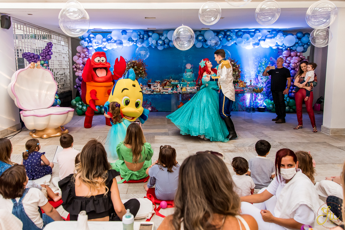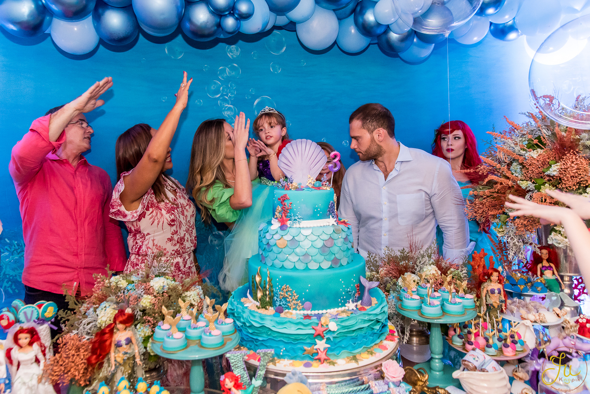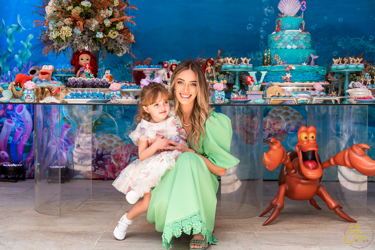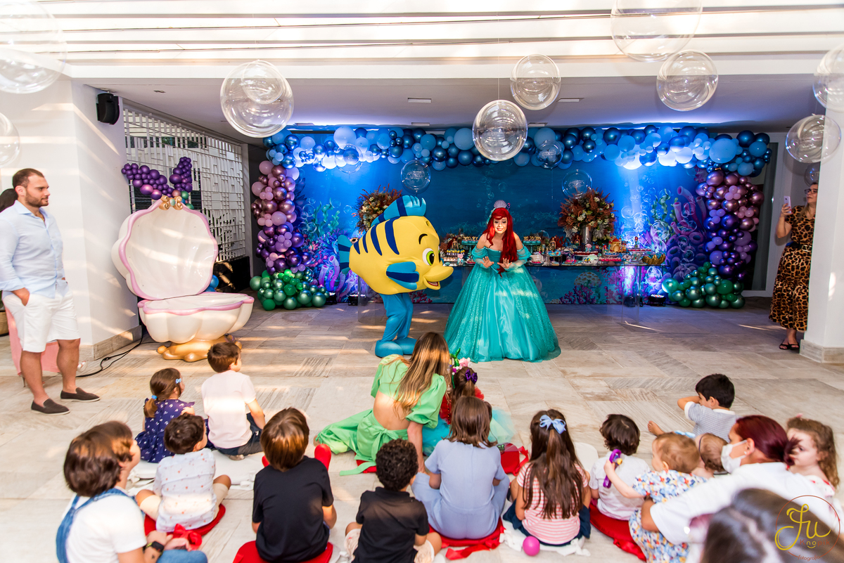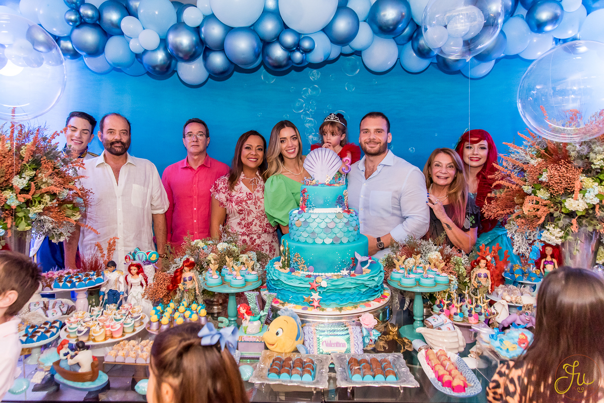 Uma Festa Sereia, com cores lindas e vibrantes e com a participação exclusiva da própria Ariel e seus amigos, diretamente lá do fundo do mar!