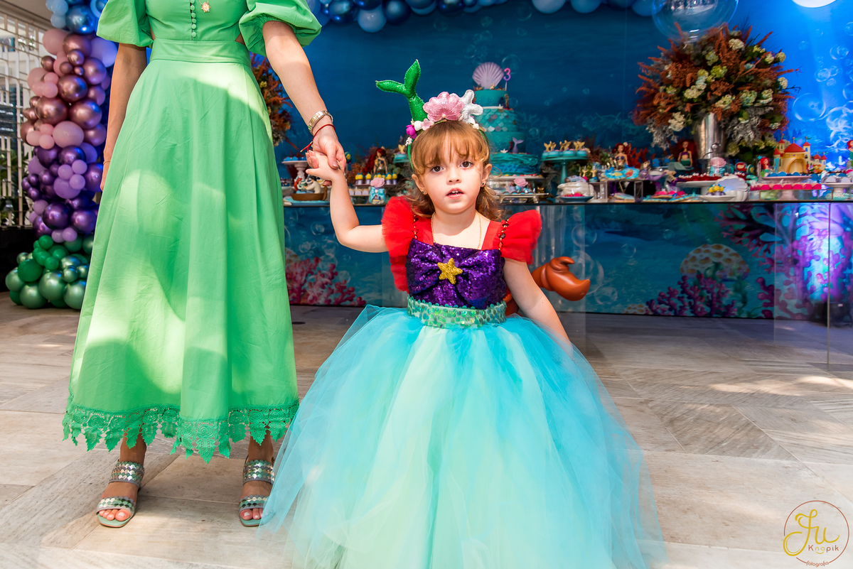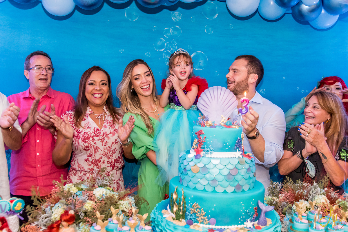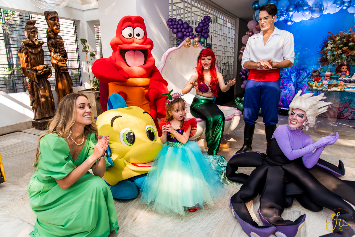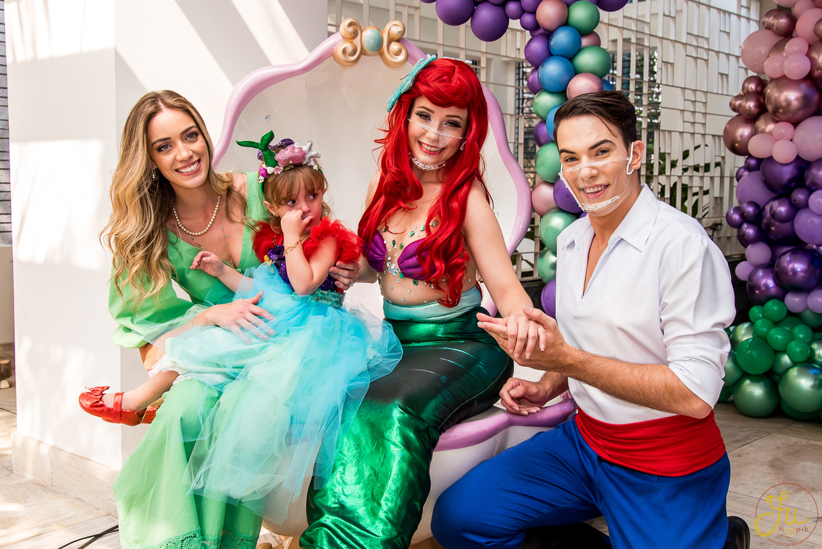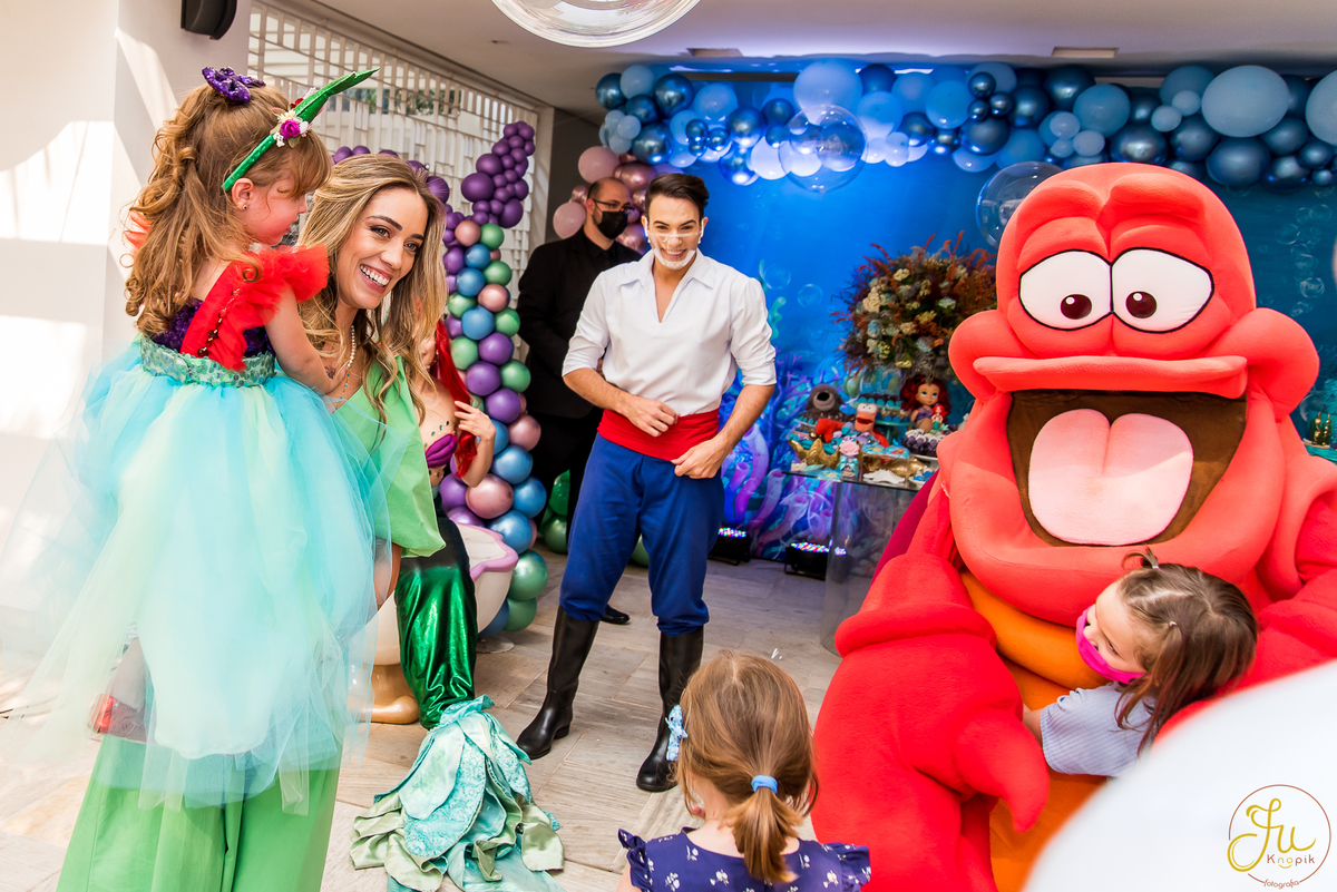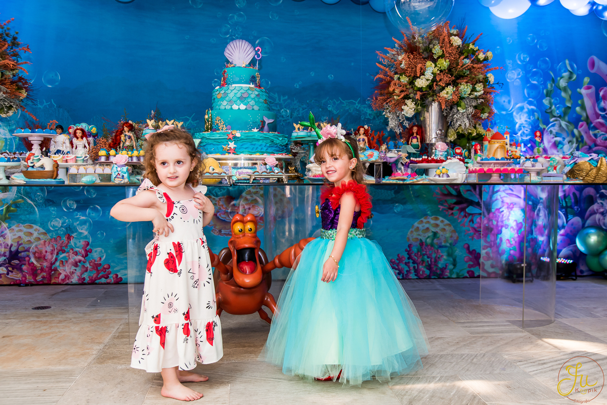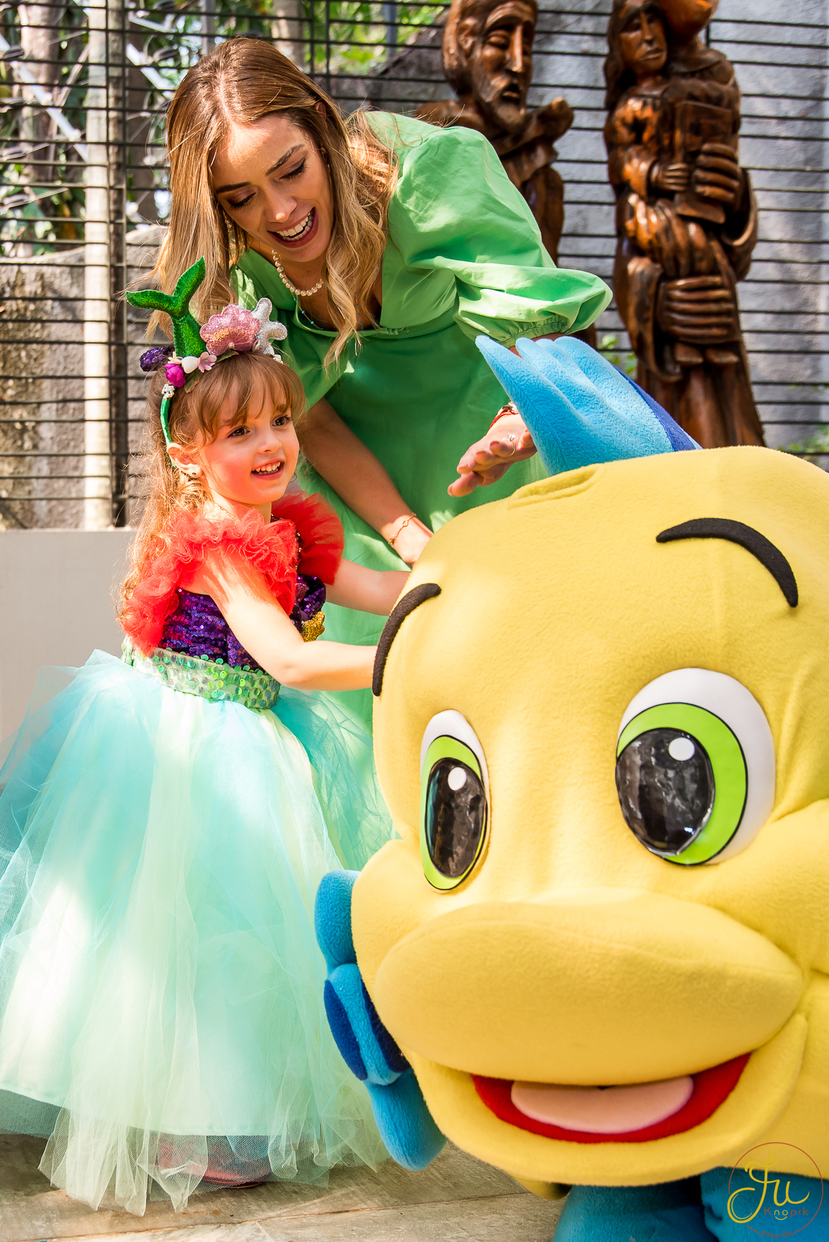 Uma Festa Sereia, com cores lindas e vibrantes e com a participação exclusiva da própria Ariel e seus amigos, diretamente lá do fundo do mar!