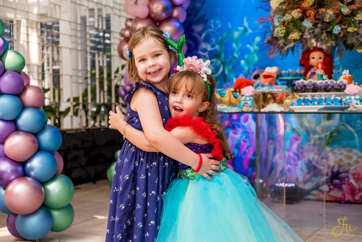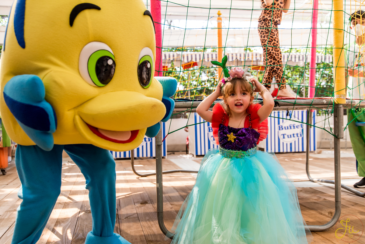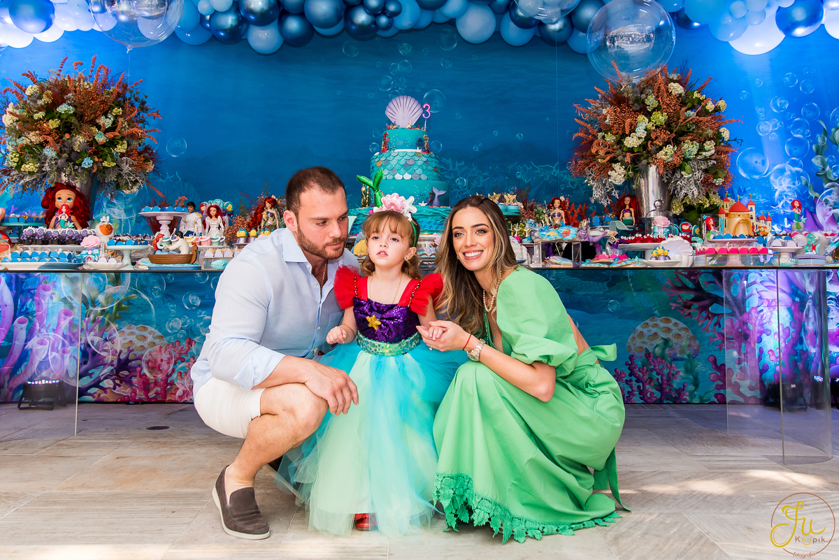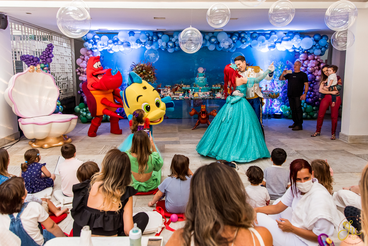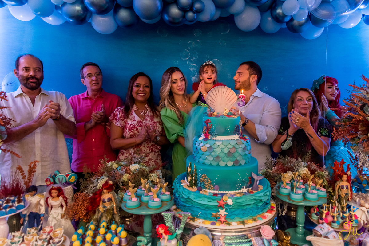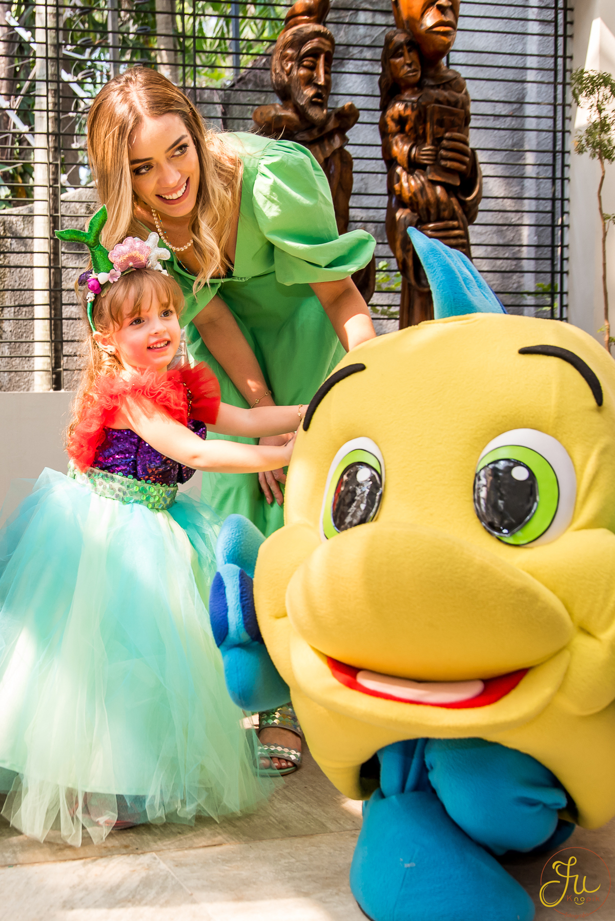 Uma Festa Sereia, com cores lindas e vibrantes e com a participação exclusiva da própria Ariel e seus amigos, diretamente lá do fundo do mar!