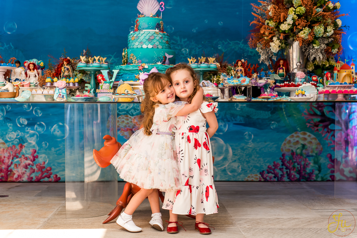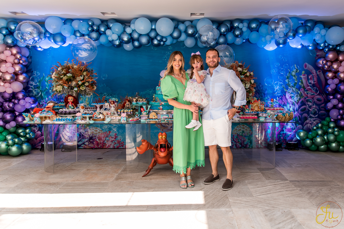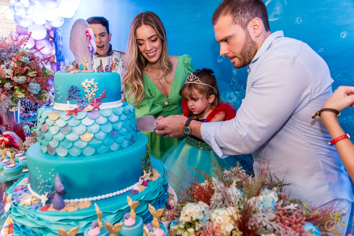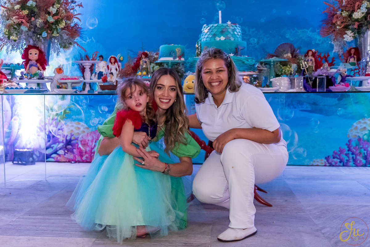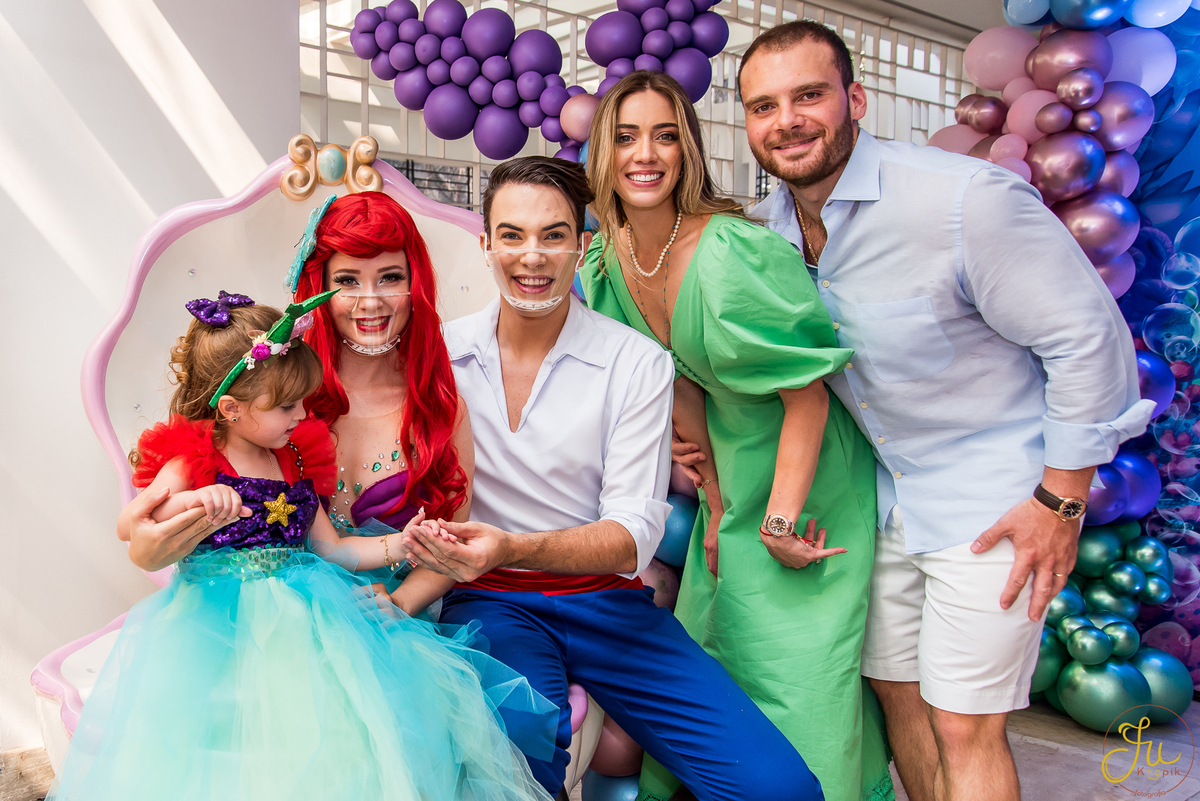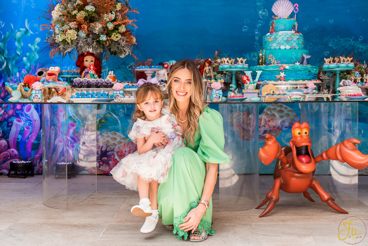 Uma Festa Sereia, com cores lindas e vibrantes e com a participação exclusiva da própria Ariel e seus amigos, diretamente lá do fundo do mar!