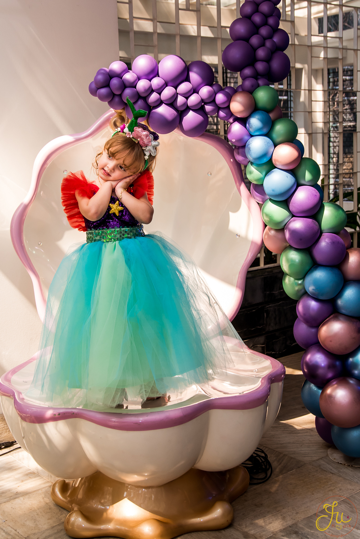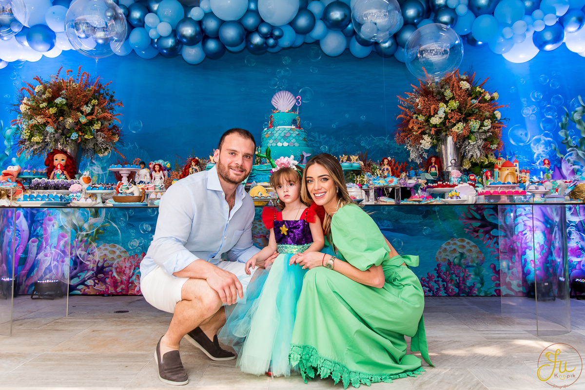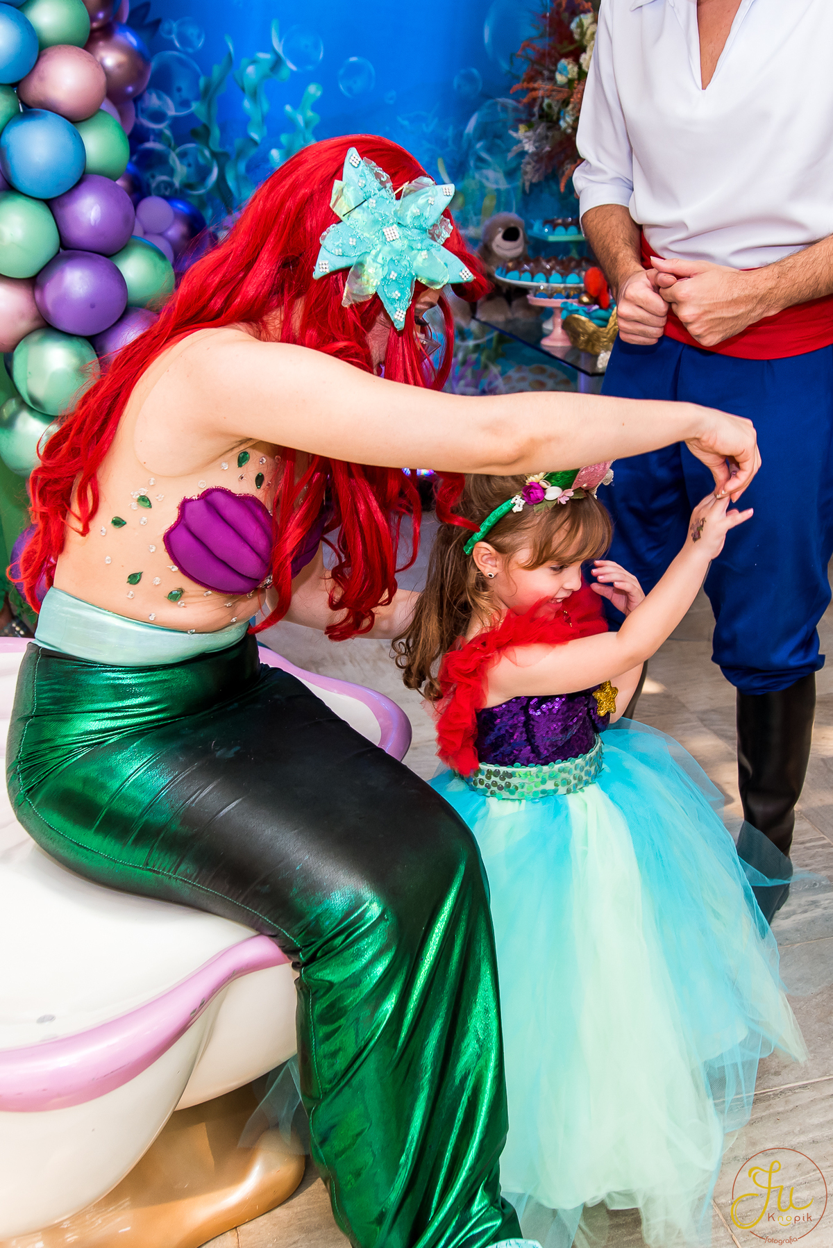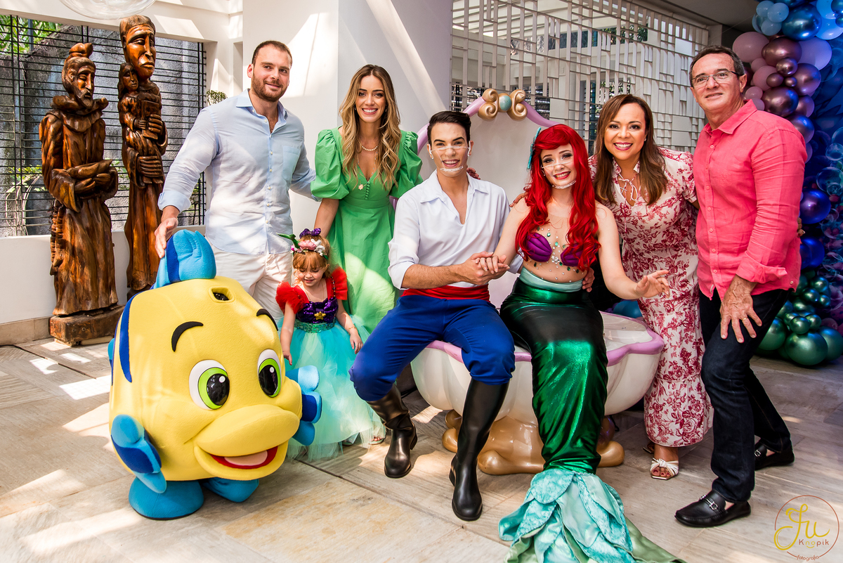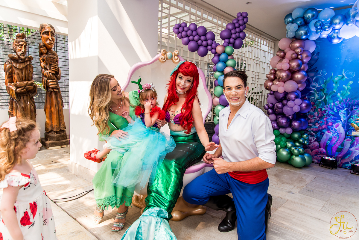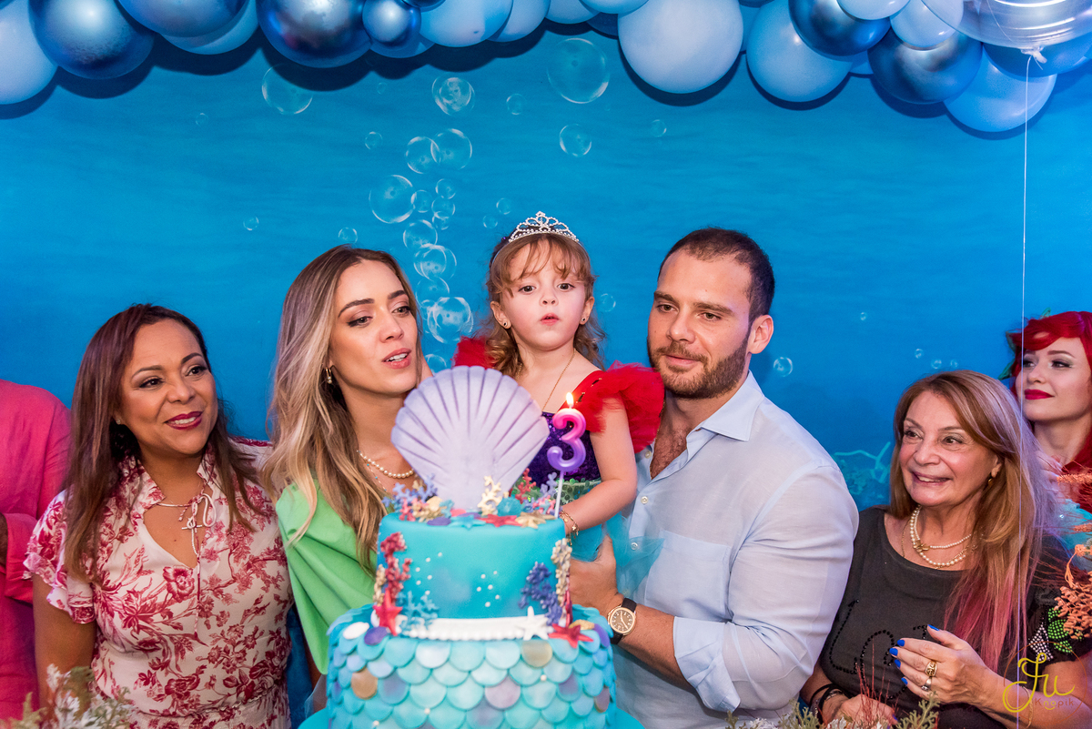Uma Festa Sereia, com cores lindas e vibrantes e com a participação exclusiva da própria Ariel e seus amigos, diretamente lá do fundo do mar!