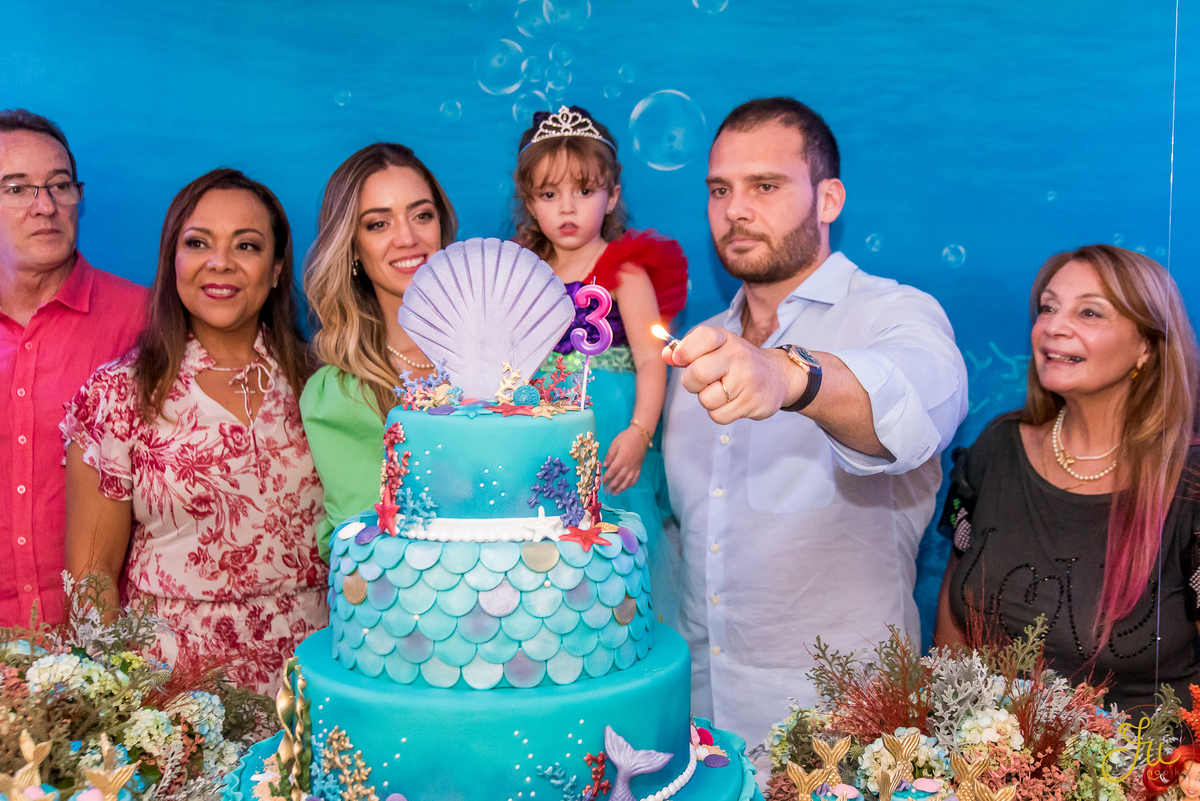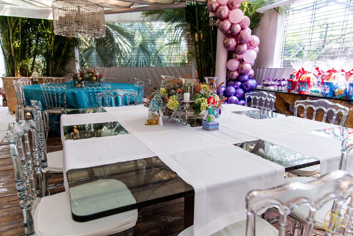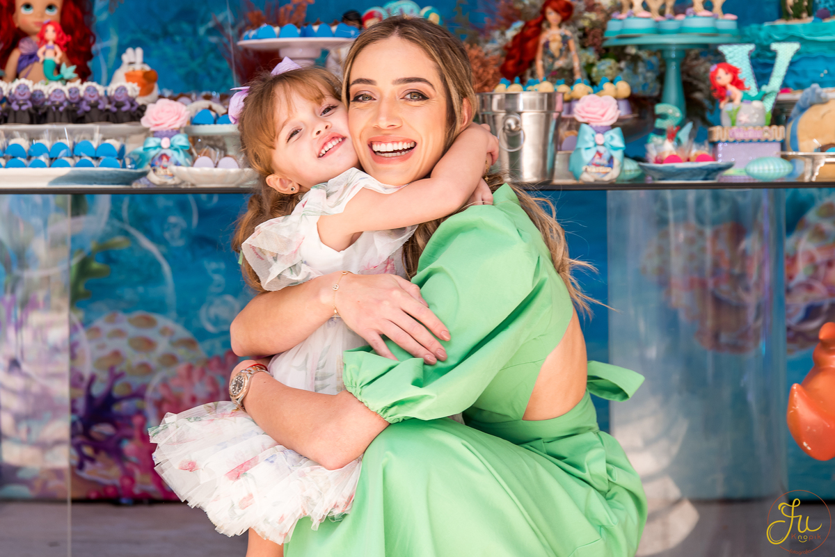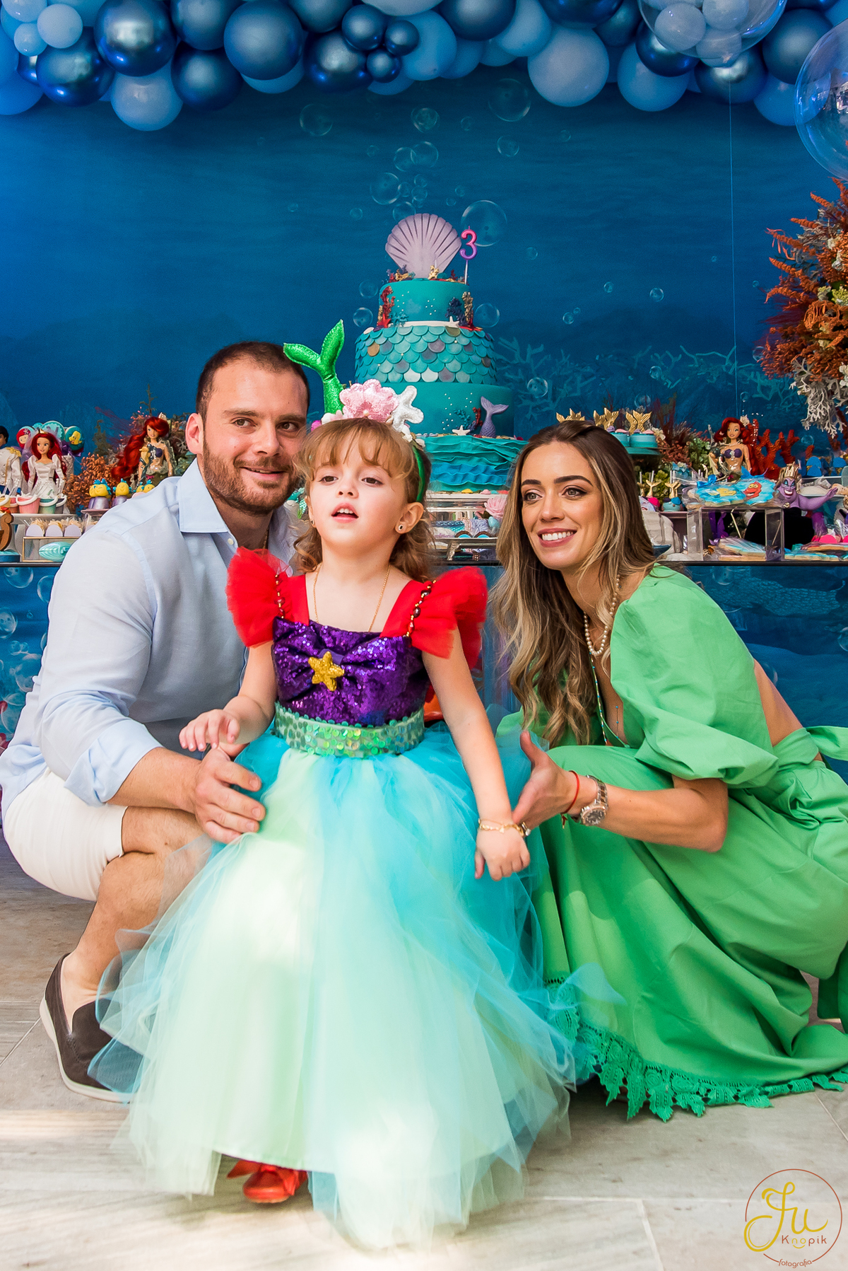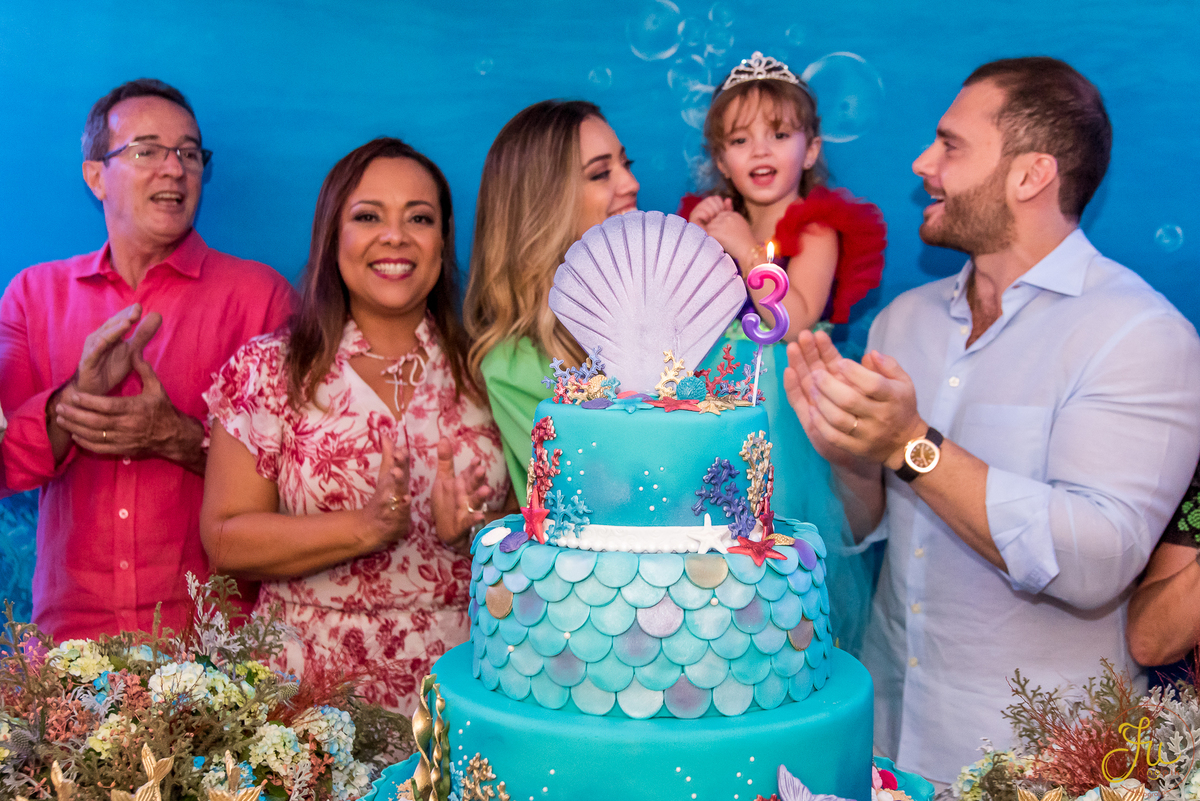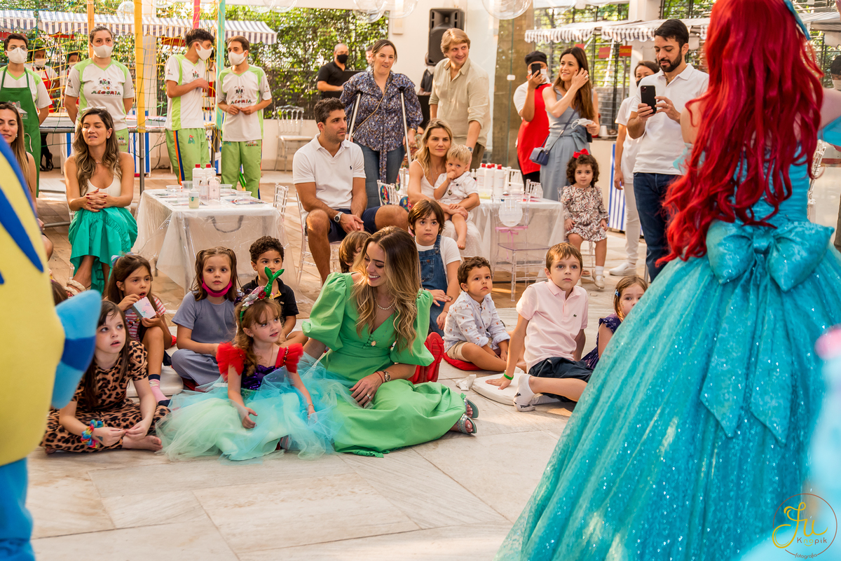 Uma Festa Sereia, com cores lindas e vibrantes e com a participação exclusiva da própria Ariel e seus amigos, diretamente lá do fundo do mar!