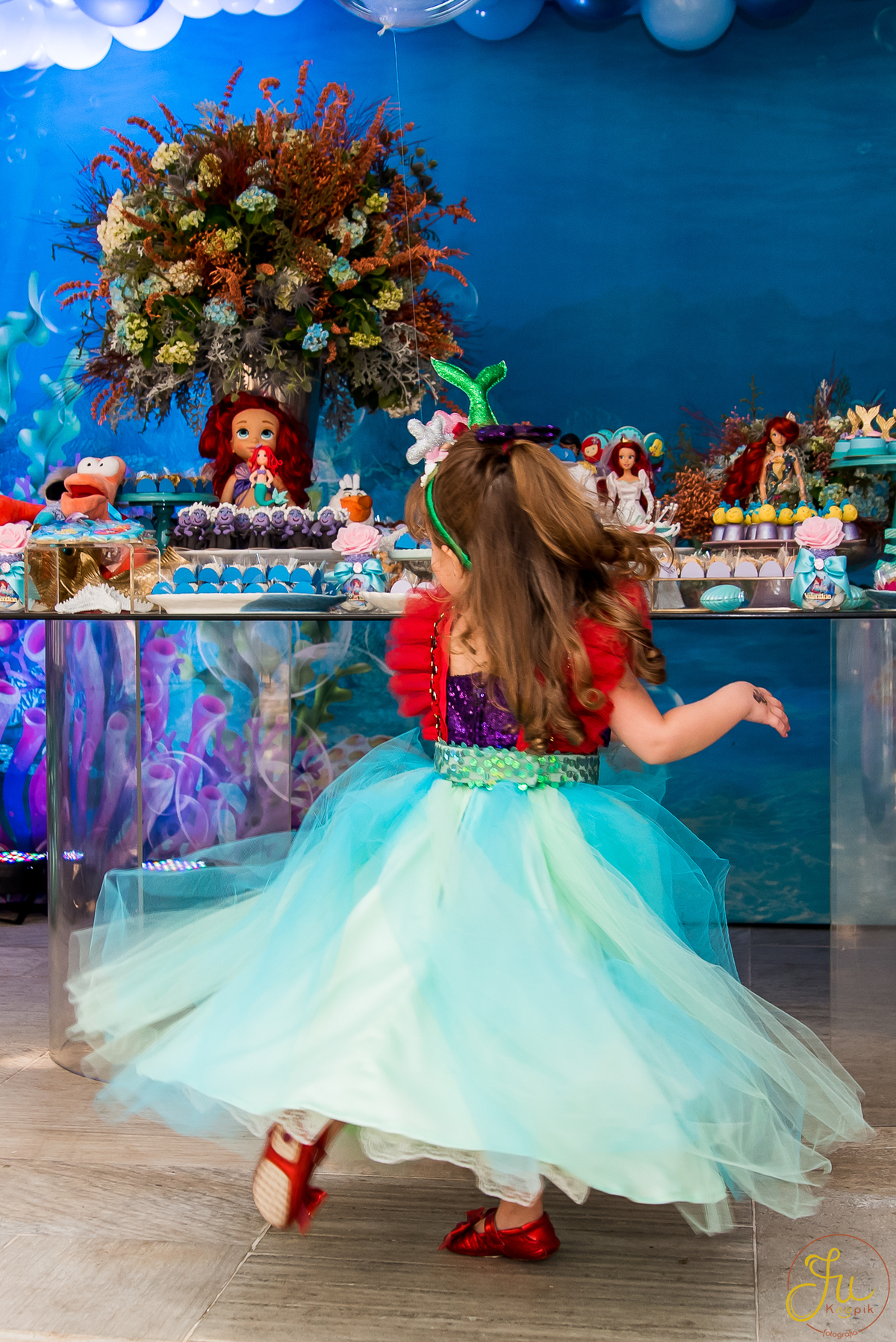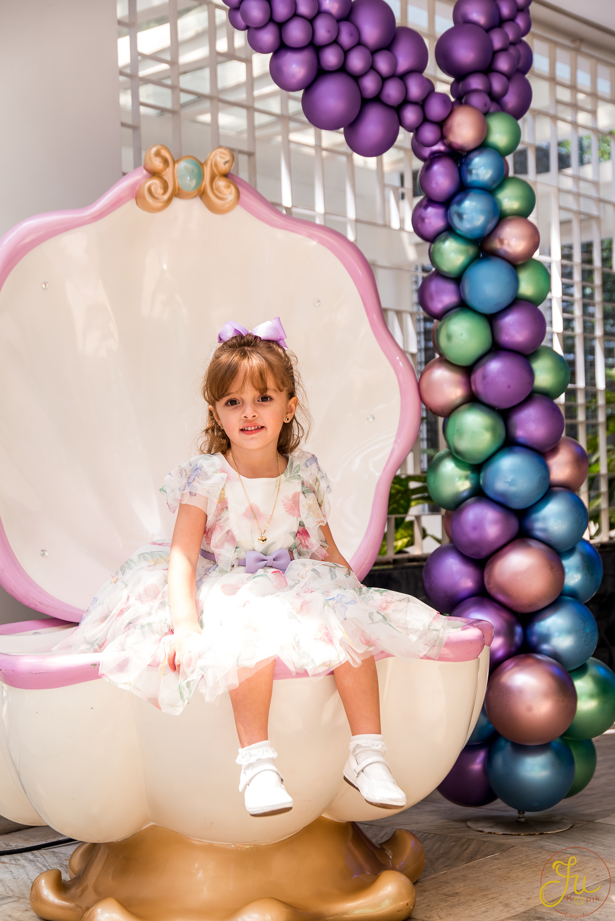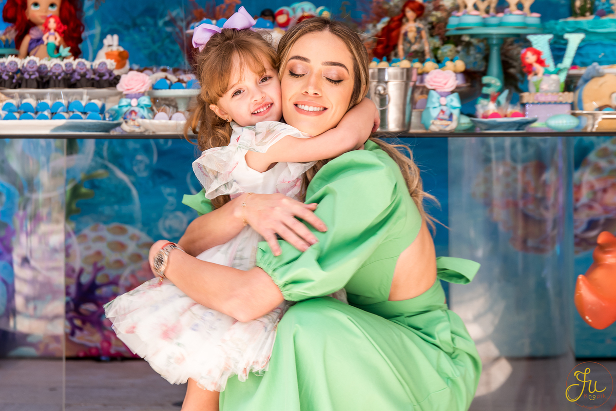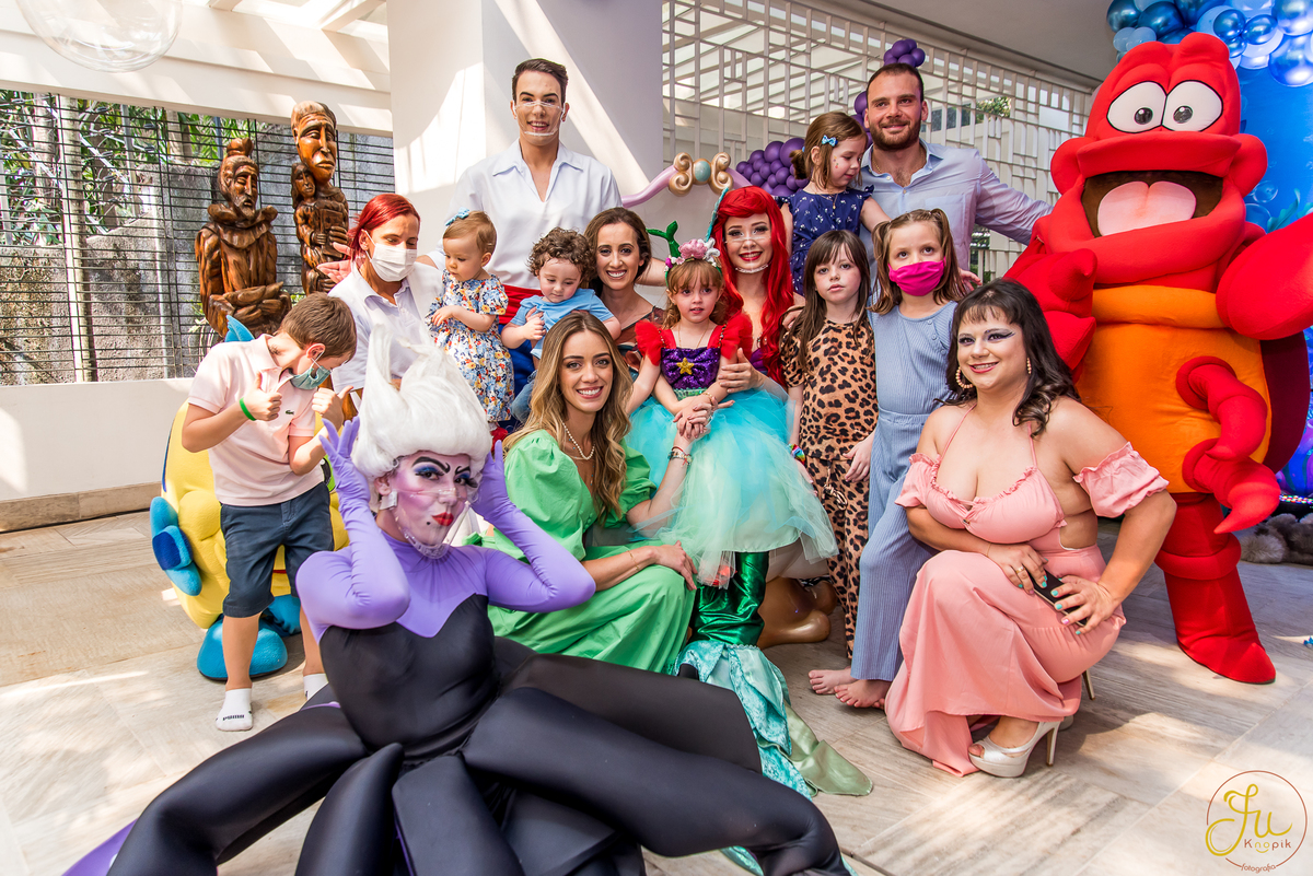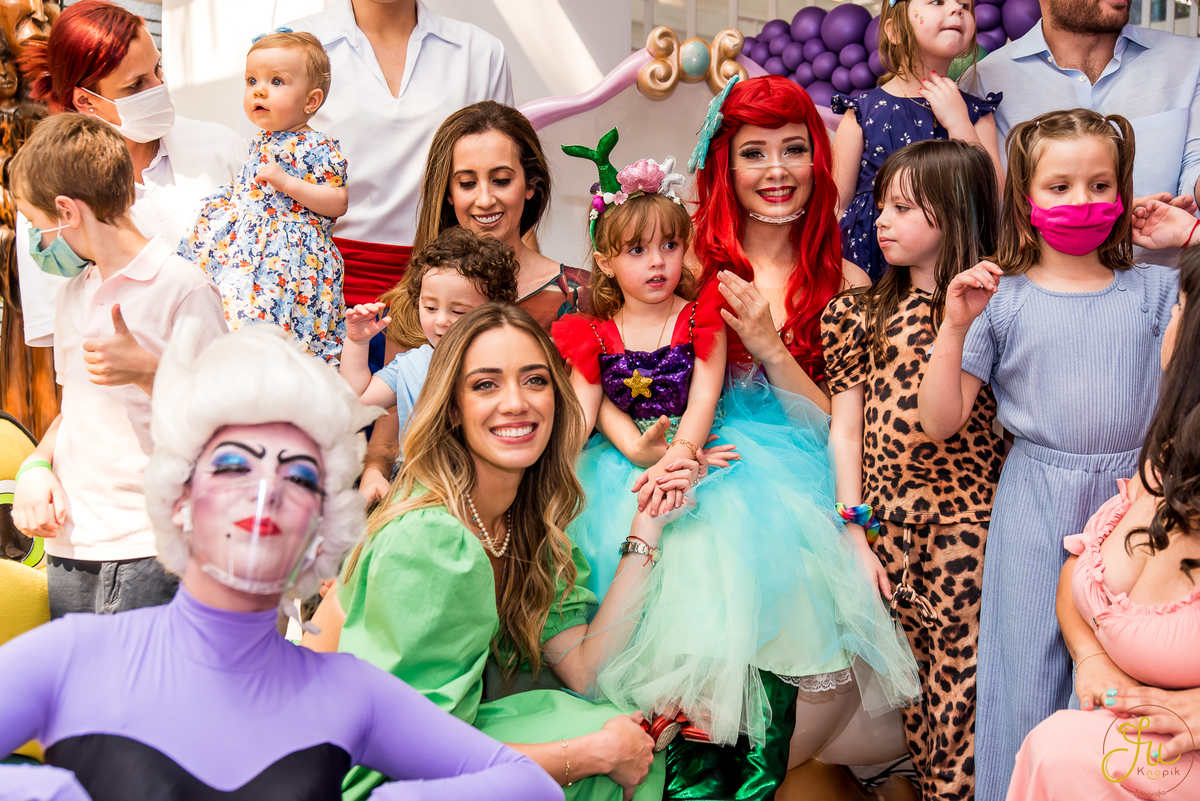 Uma Festa Sereia, com cores lindas e vibrantes e com a participação exclusiva da própria Ariel e seus amigos, diretamente lá do fundo do mar!