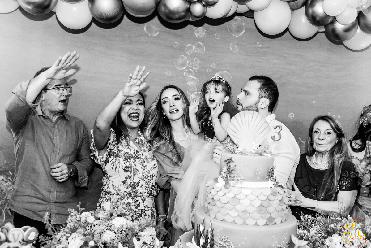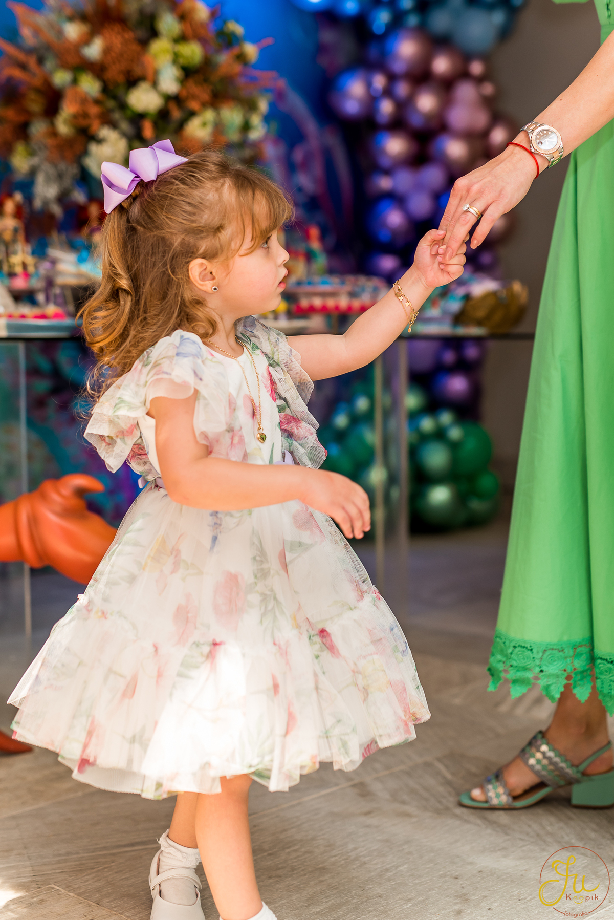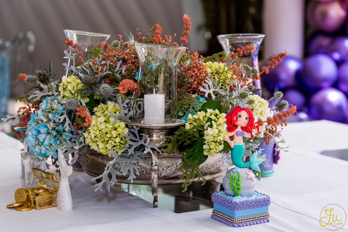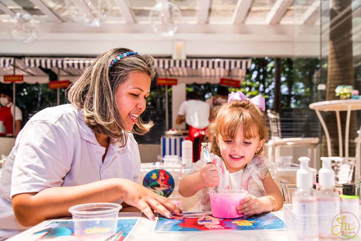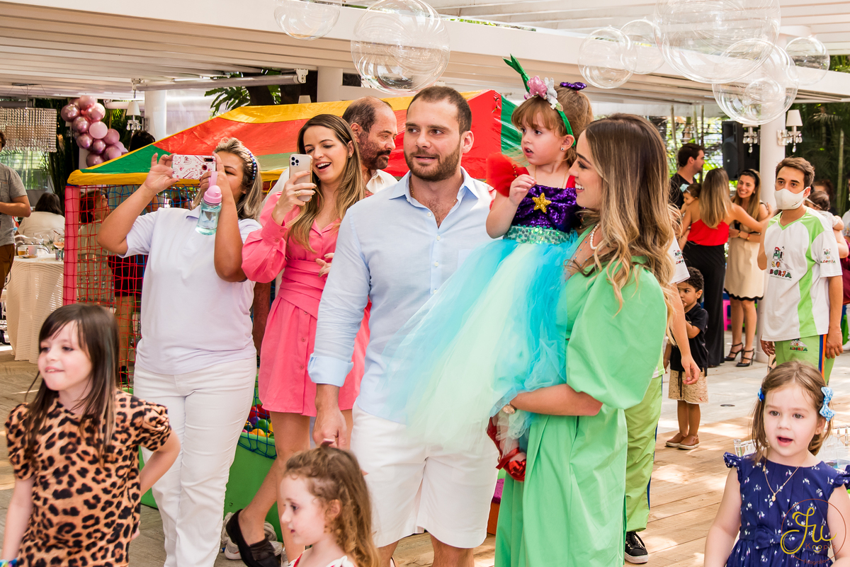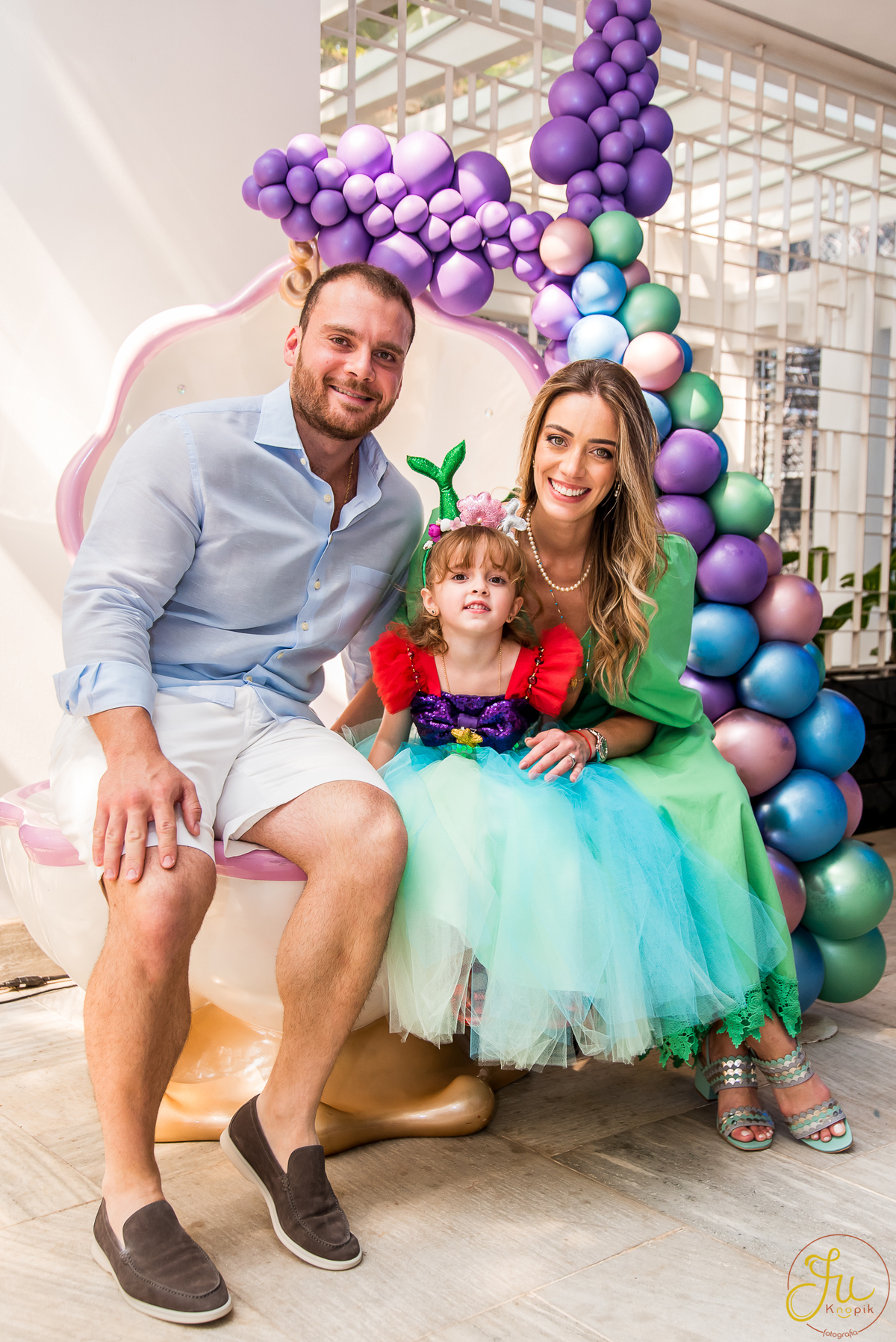 Uma Festa Sereia, com cores lindas e vibrantes e com a participação exclusiva da própria Ariel e seus amigos, diretamente lá do fundo do mar!