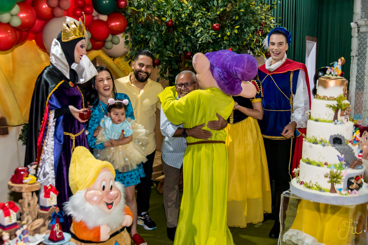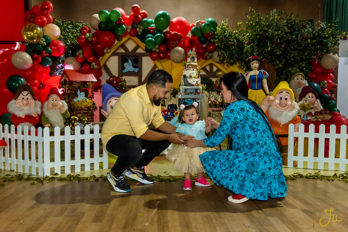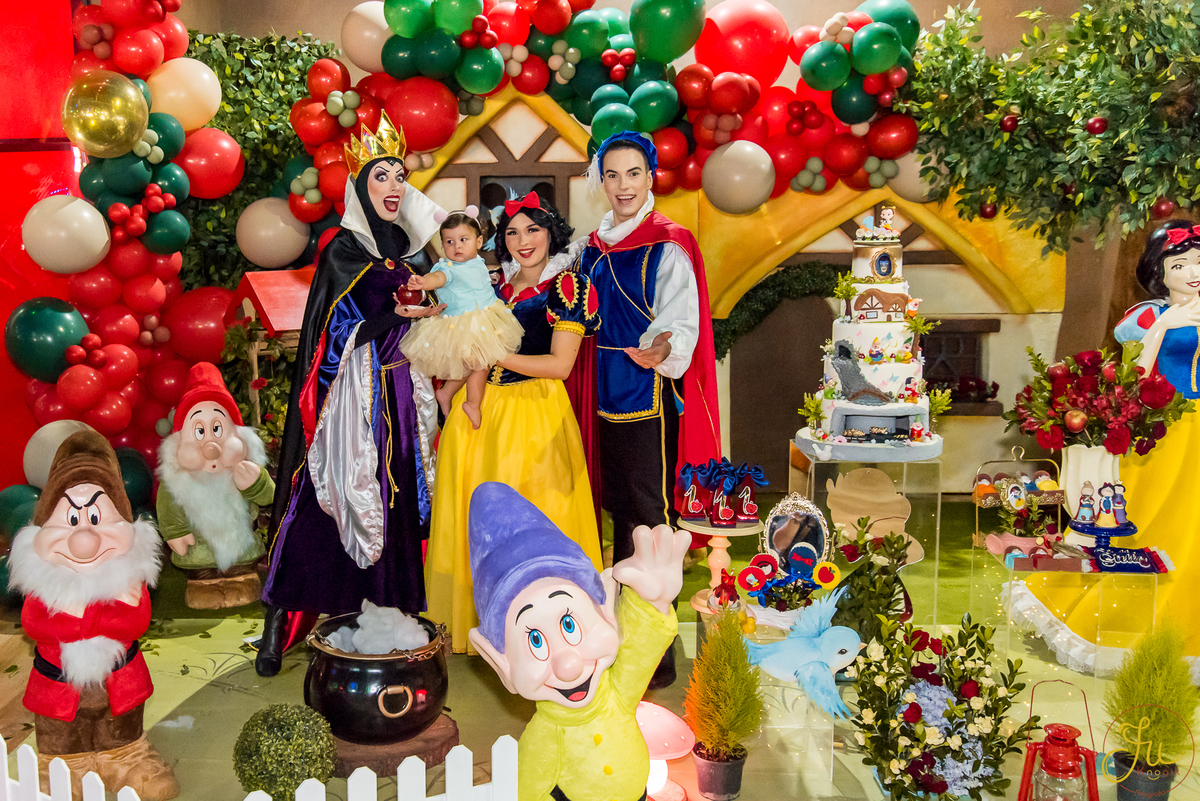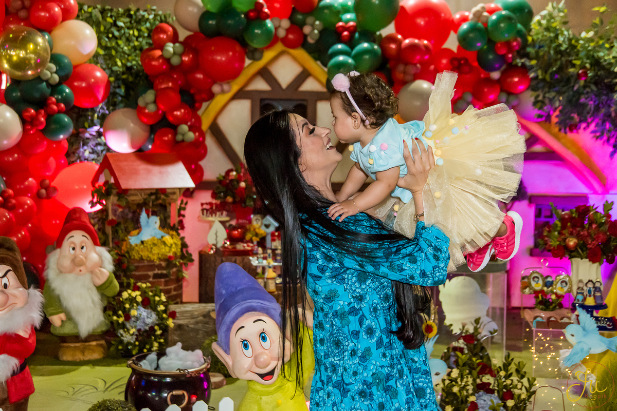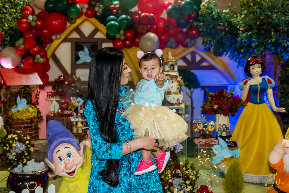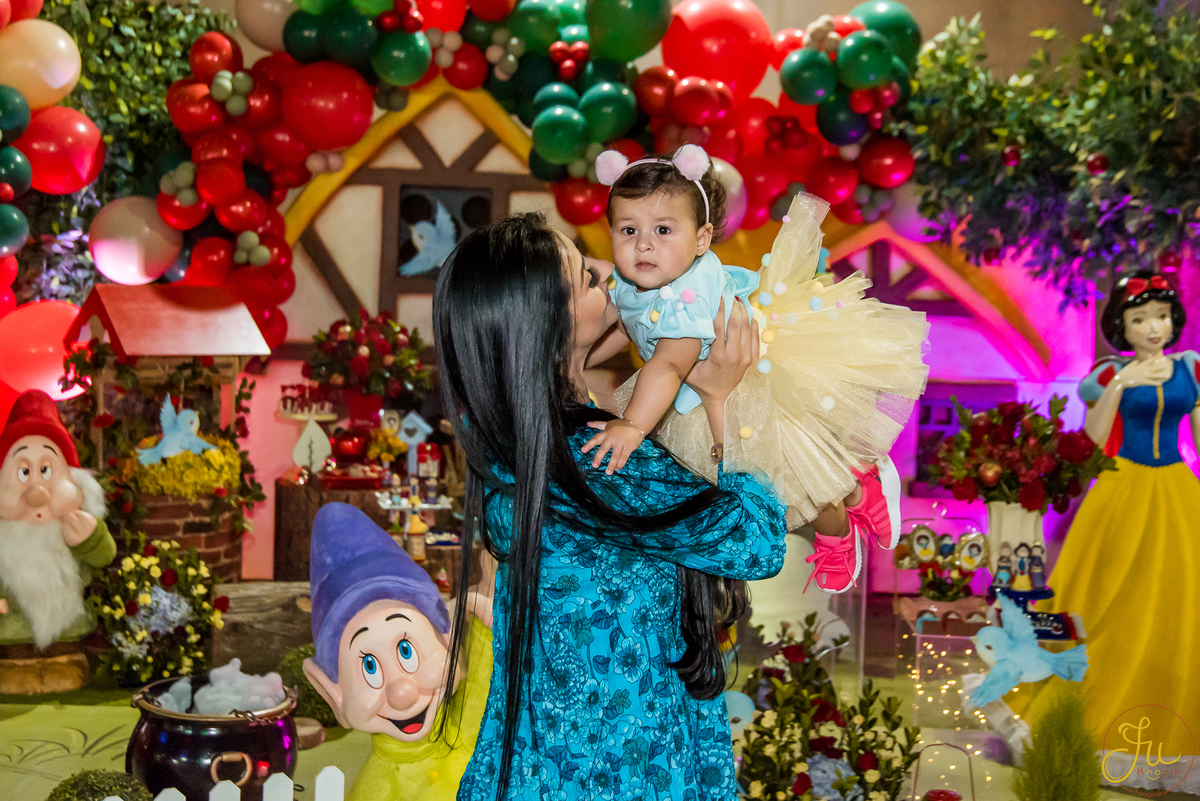 O tema escolhido pela mamãe foi: Branca de Neve, e a decoração foi lindamente produzida pela Brunna, da DetalhesFest.