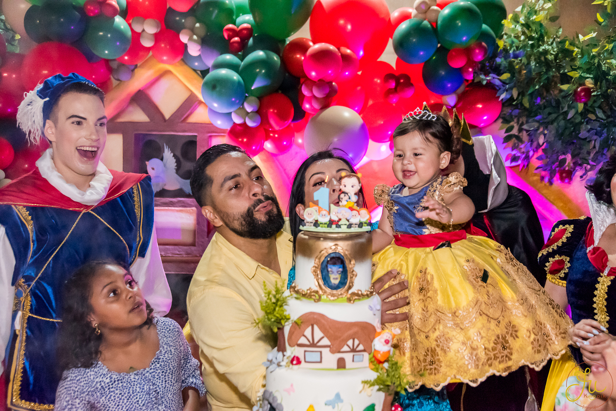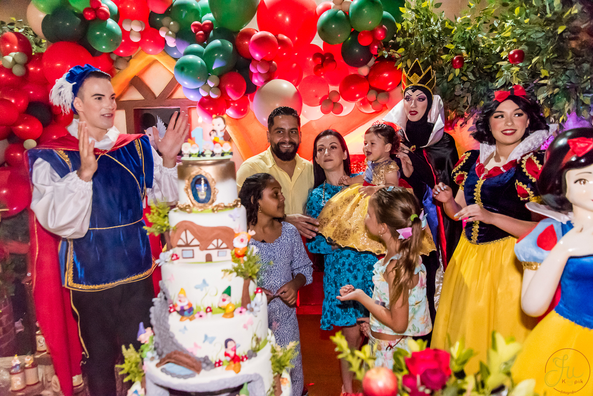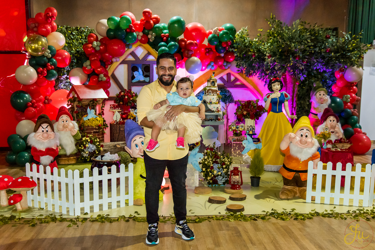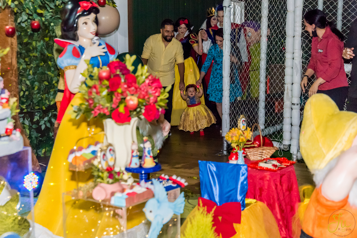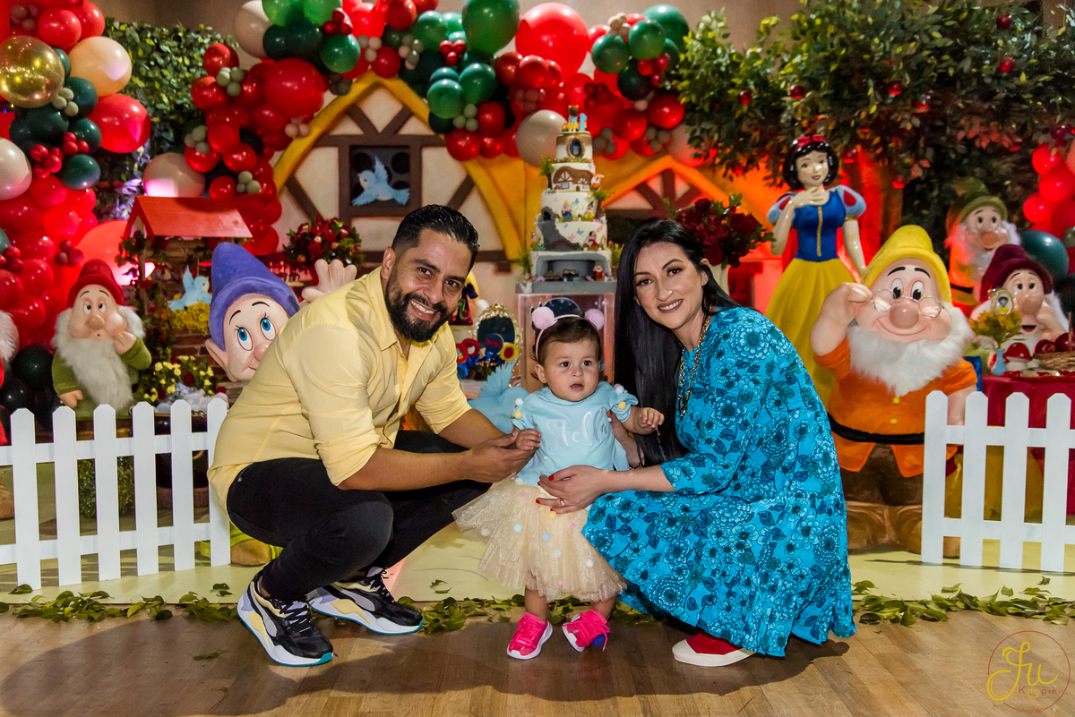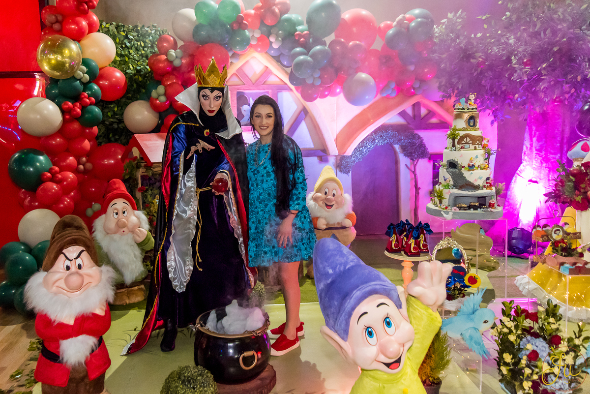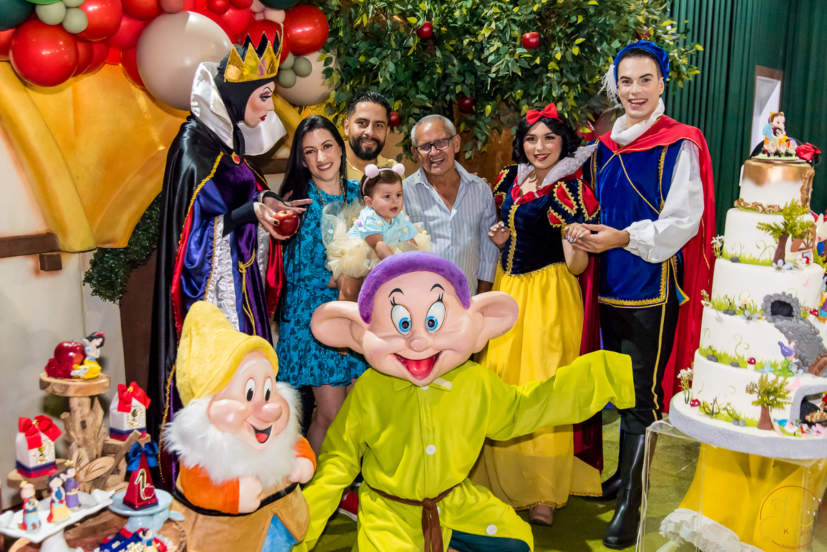 O tema escolhido pela mamãe foi: Branca de Neve, e a decoração foi lindamente produzida pela Brunna, da DetalhesFest.