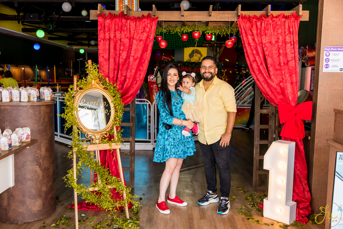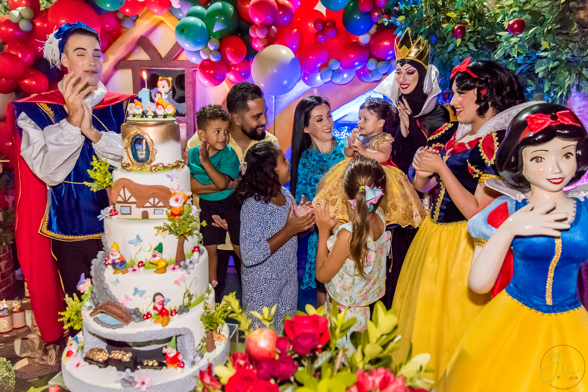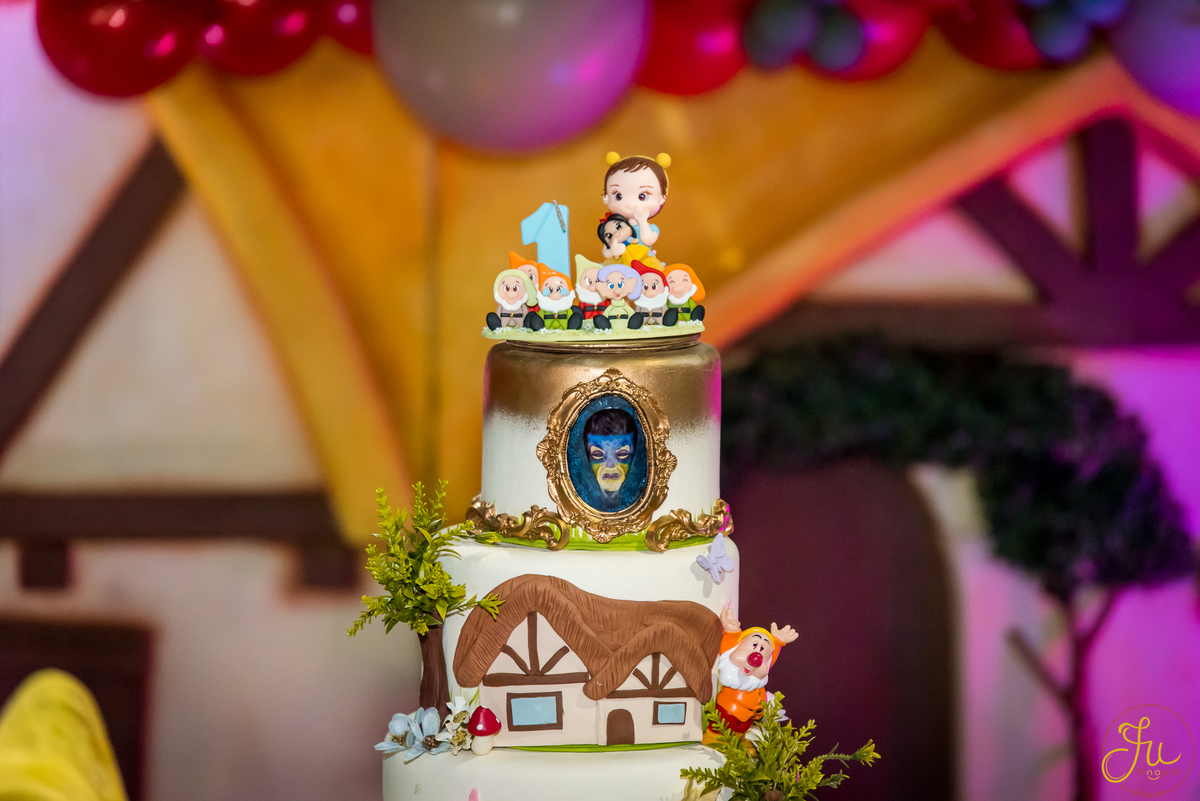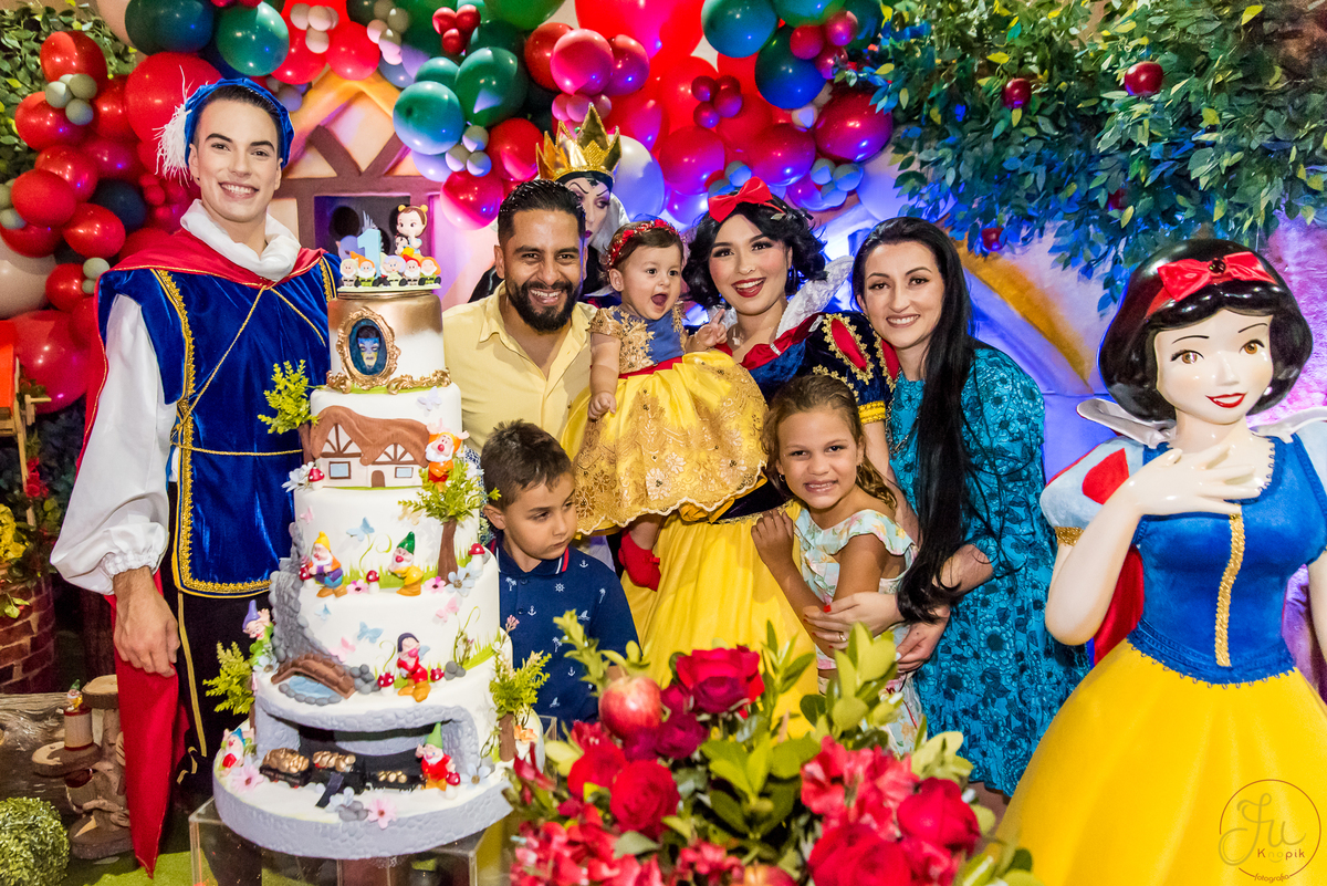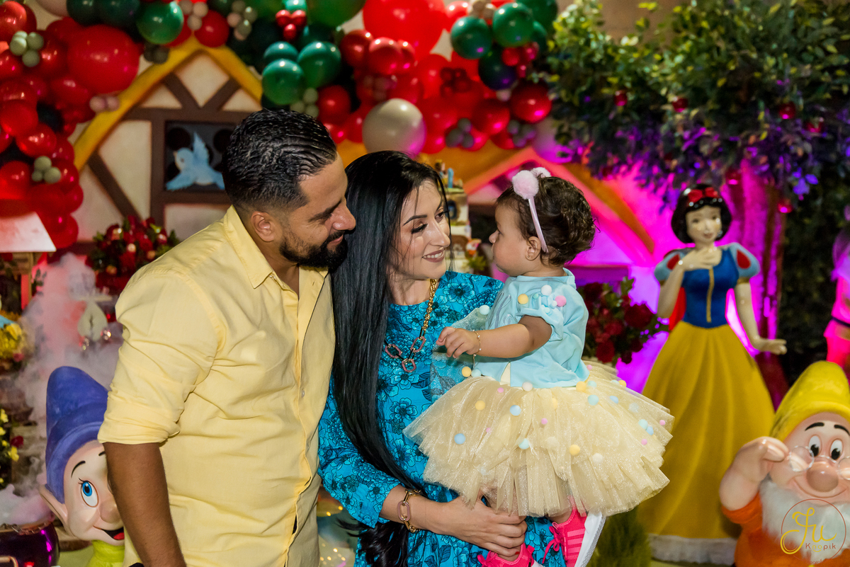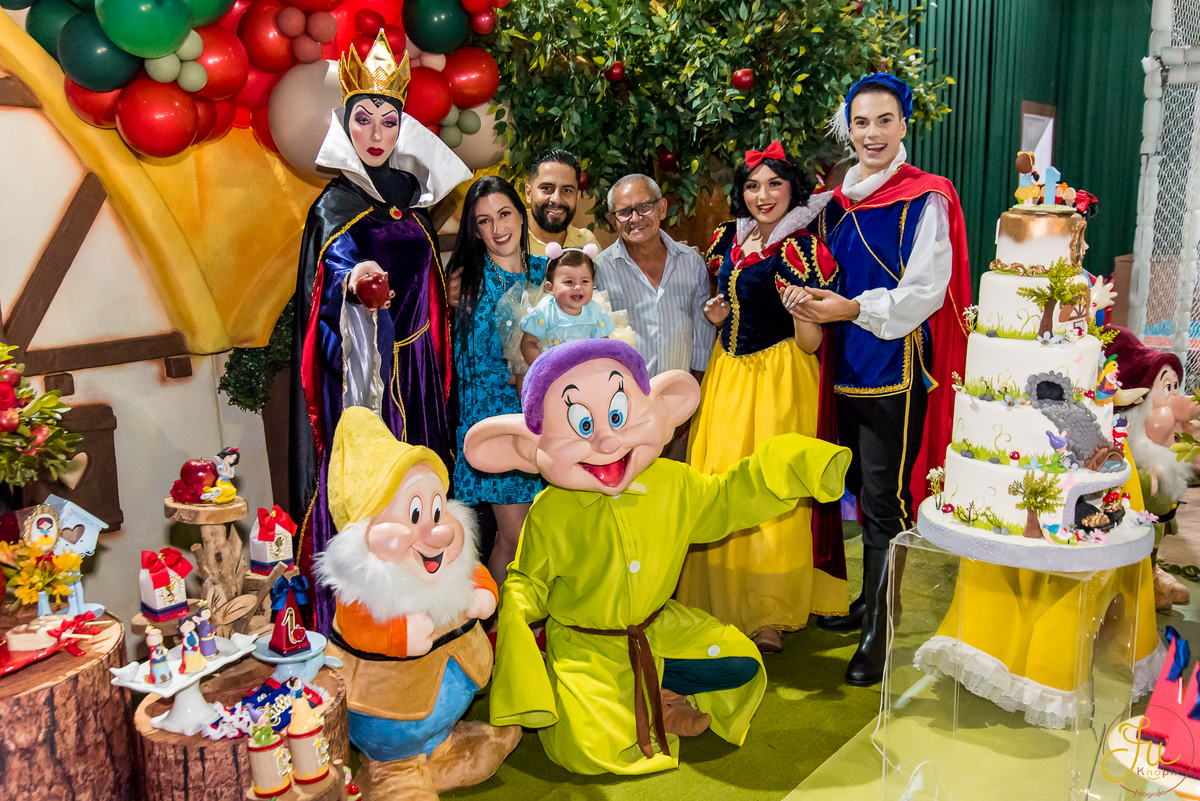 O tema escolhido pela mamãe foi: Branca de Neve, e a decoração foi lindamente produzida pela Brunna, da DetalhesFest.
