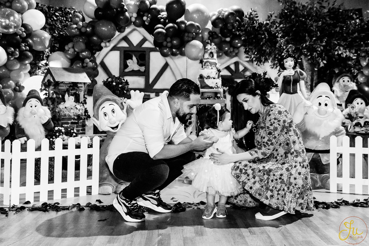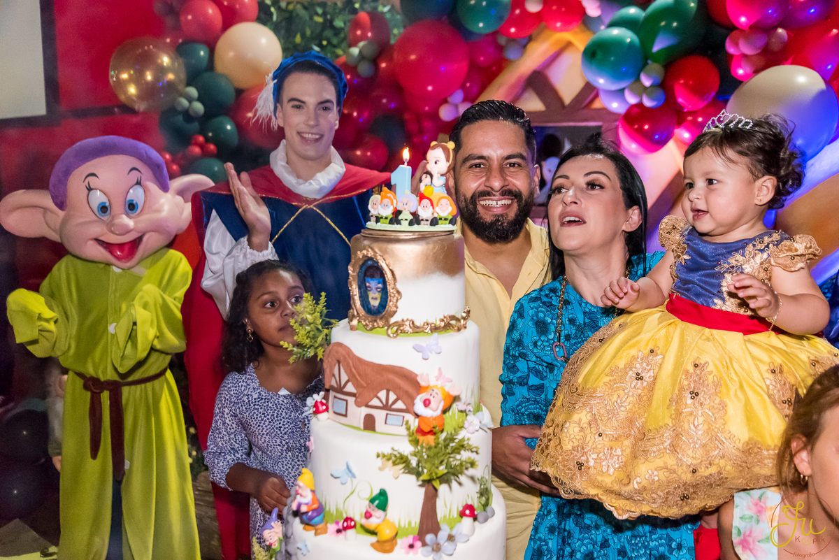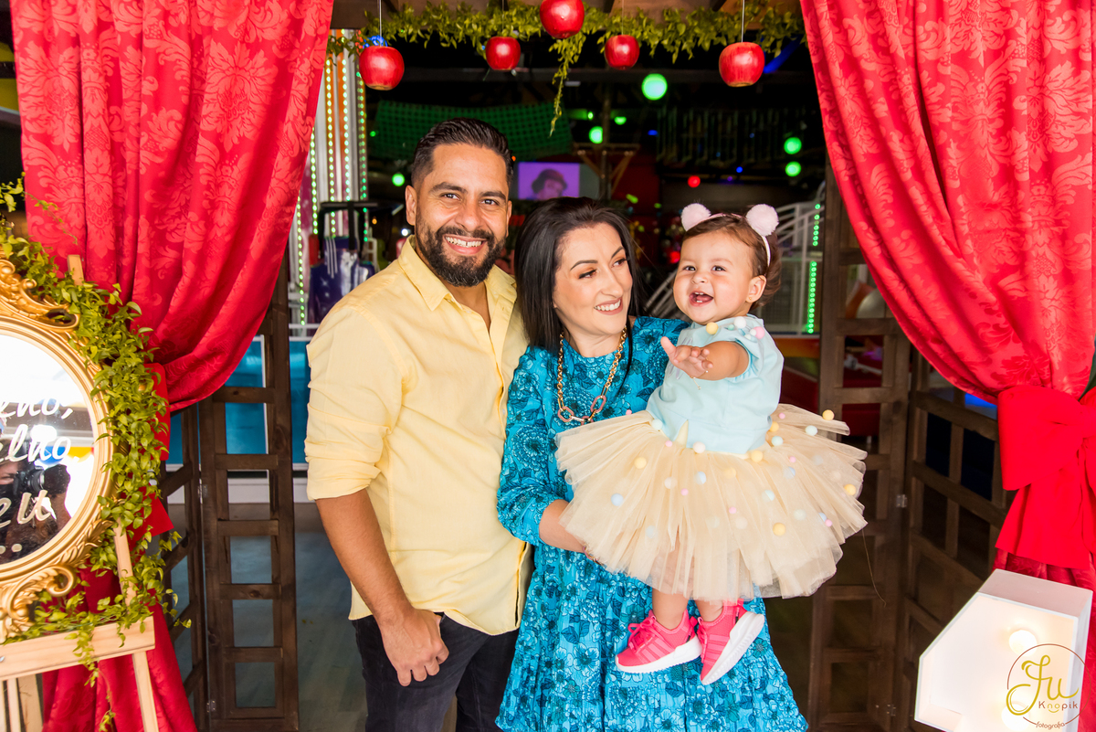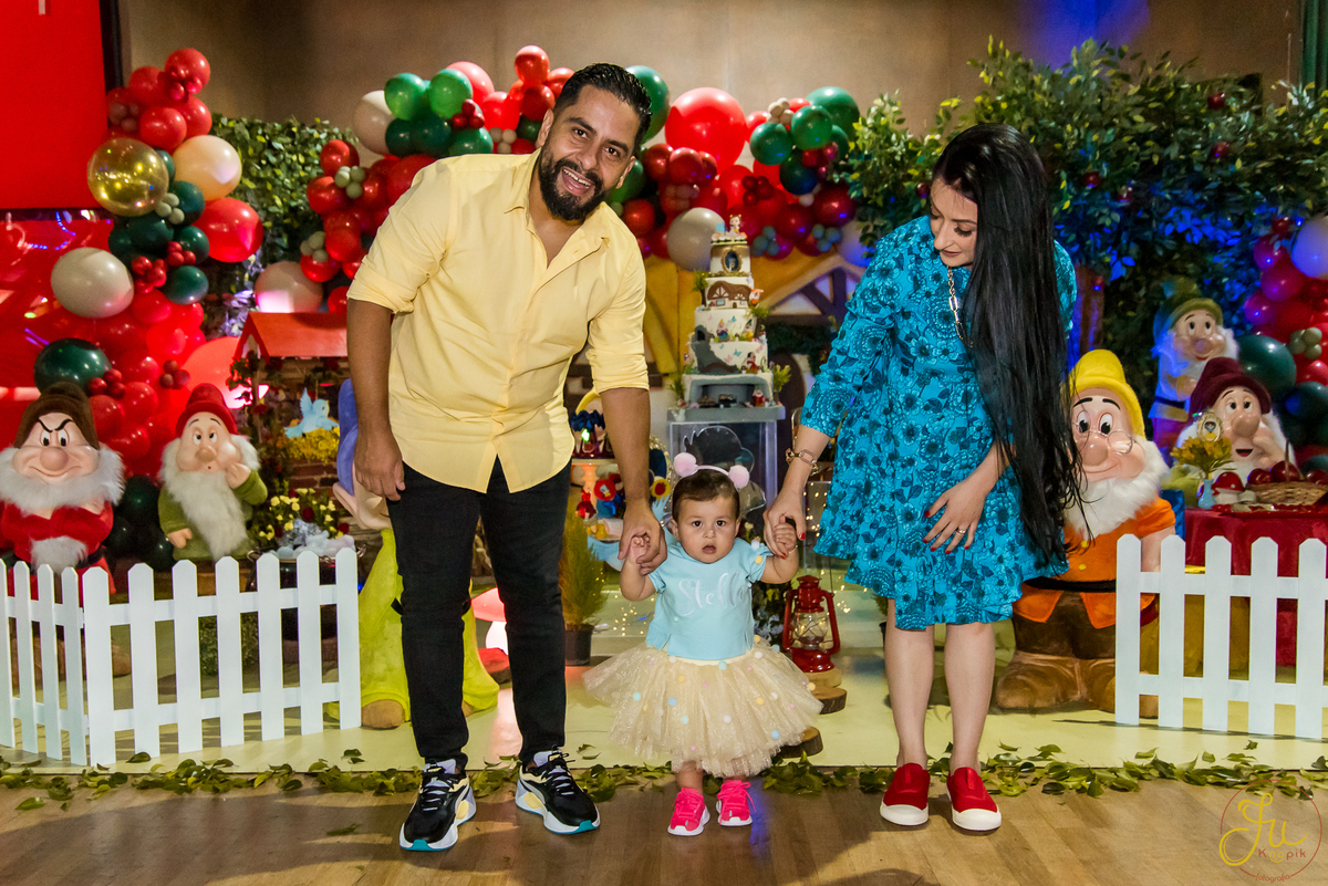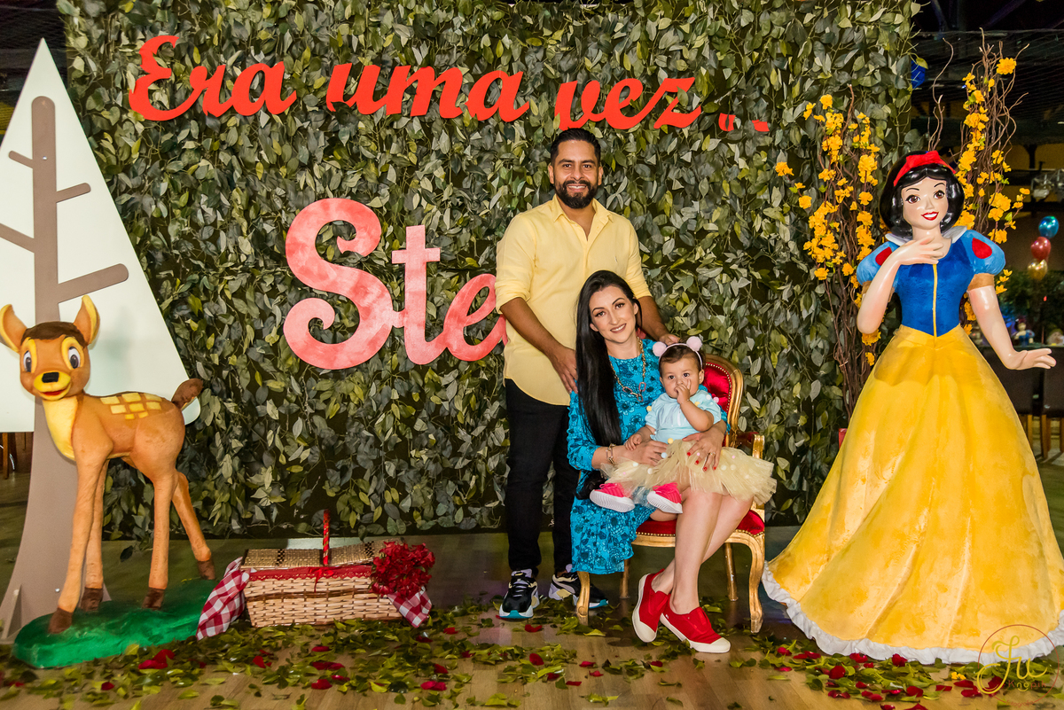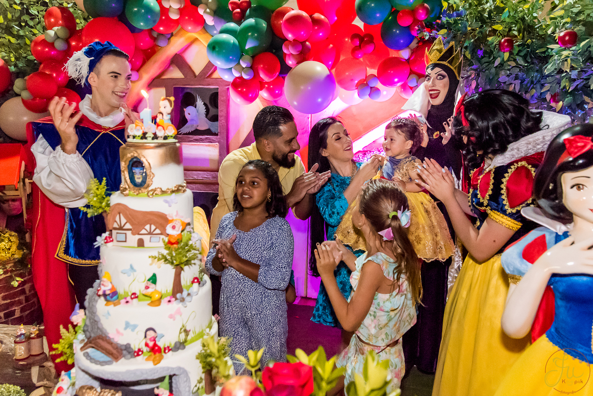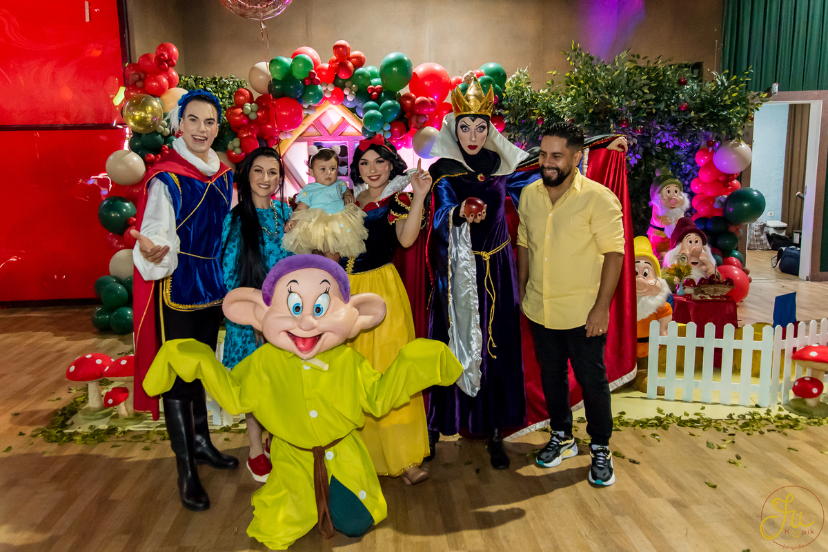 O tema escolhido pela mamãe foi: Branca de Neve, e a decoração foi lindamente produzida pela Brunna, da DetalhesFest.