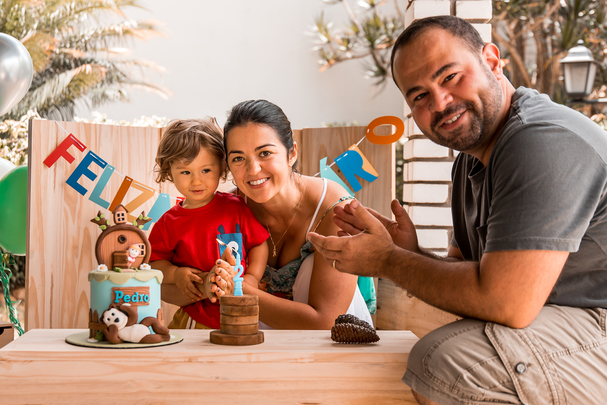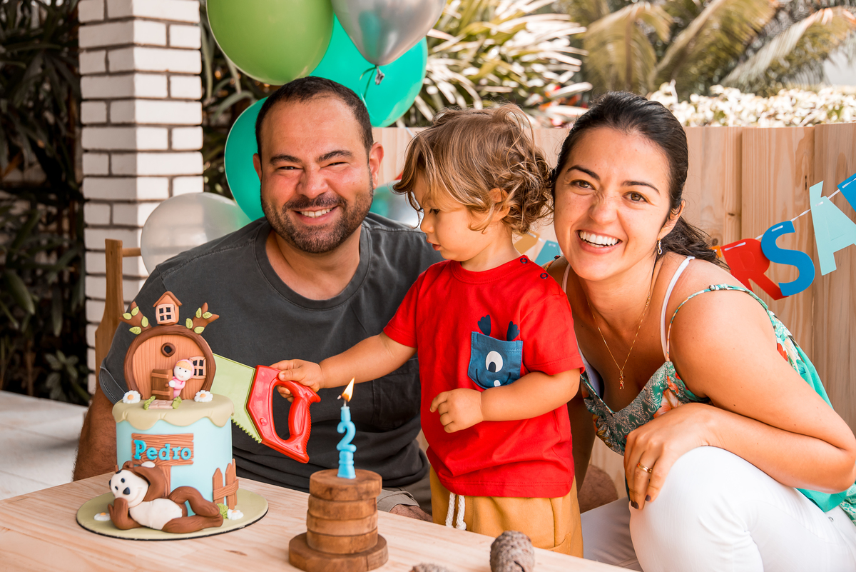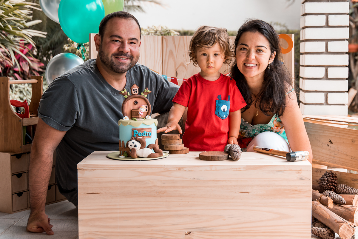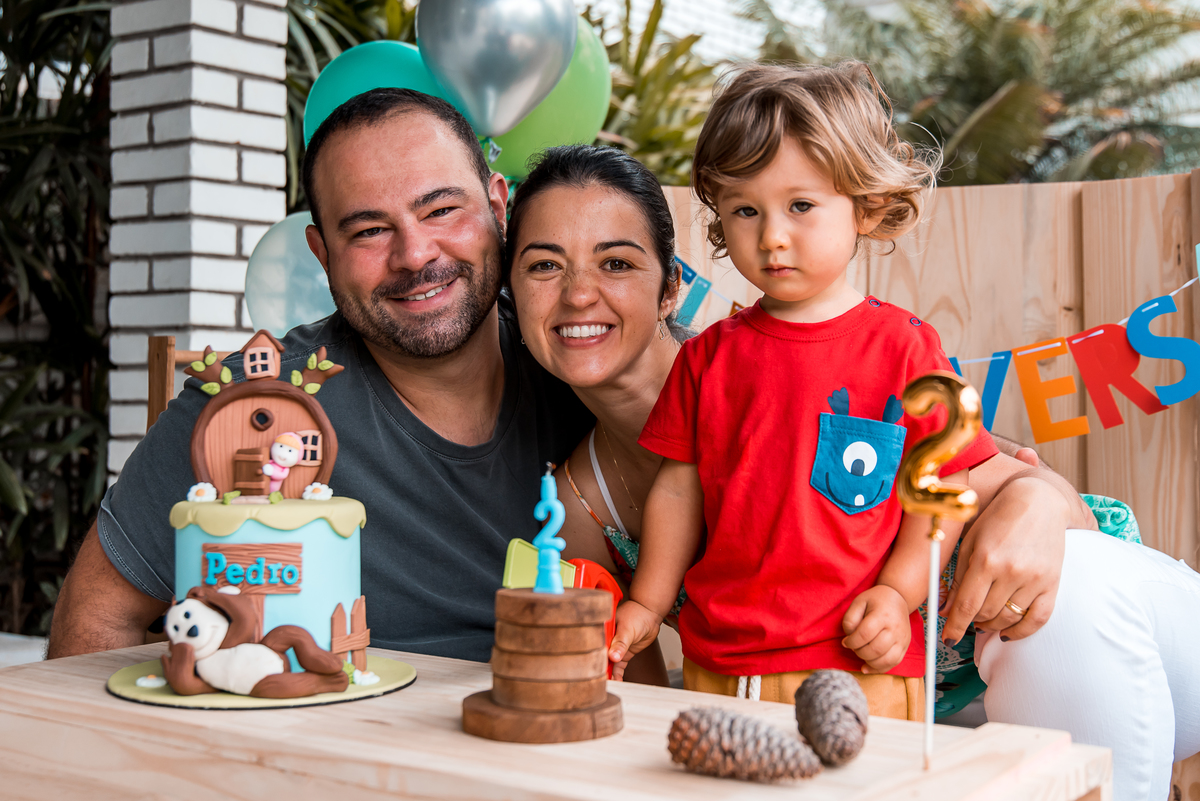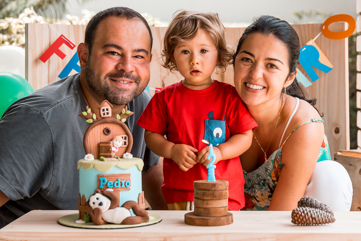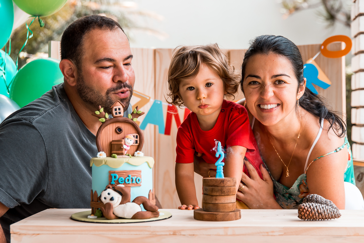 Como os avos do Pedro moram no Rio, a família optou por fazer uma comemoração só com o Papai, a Mamãe e o Pedrinho.