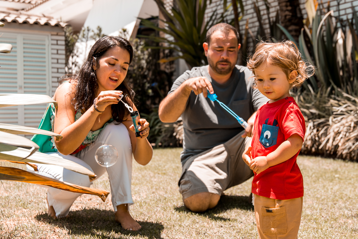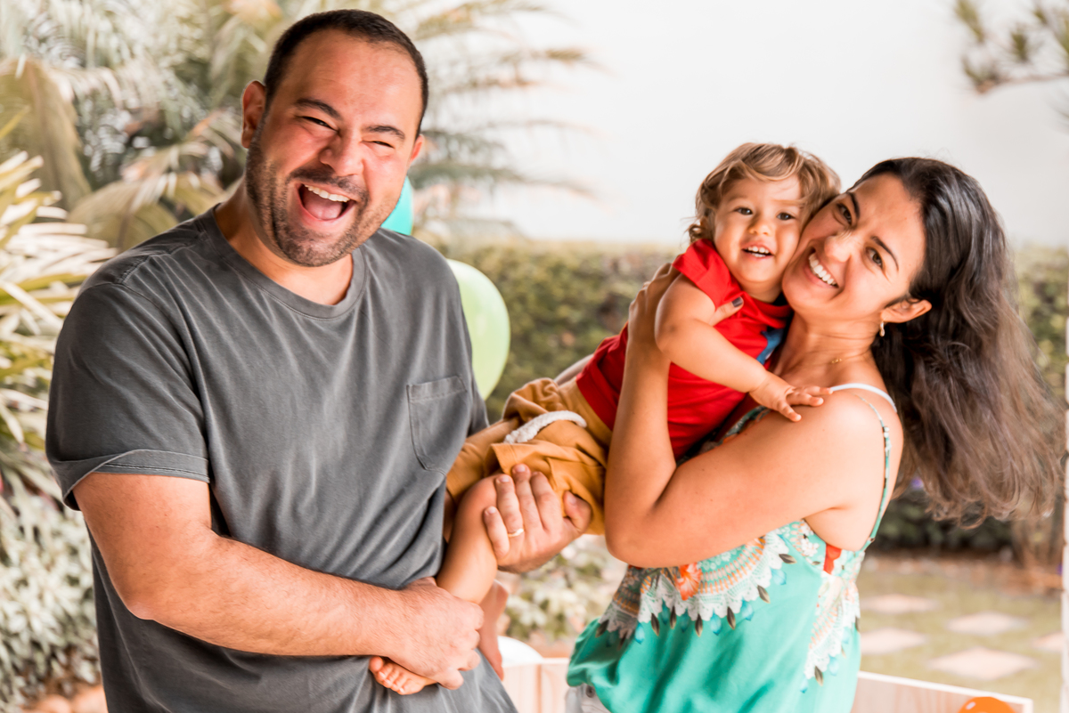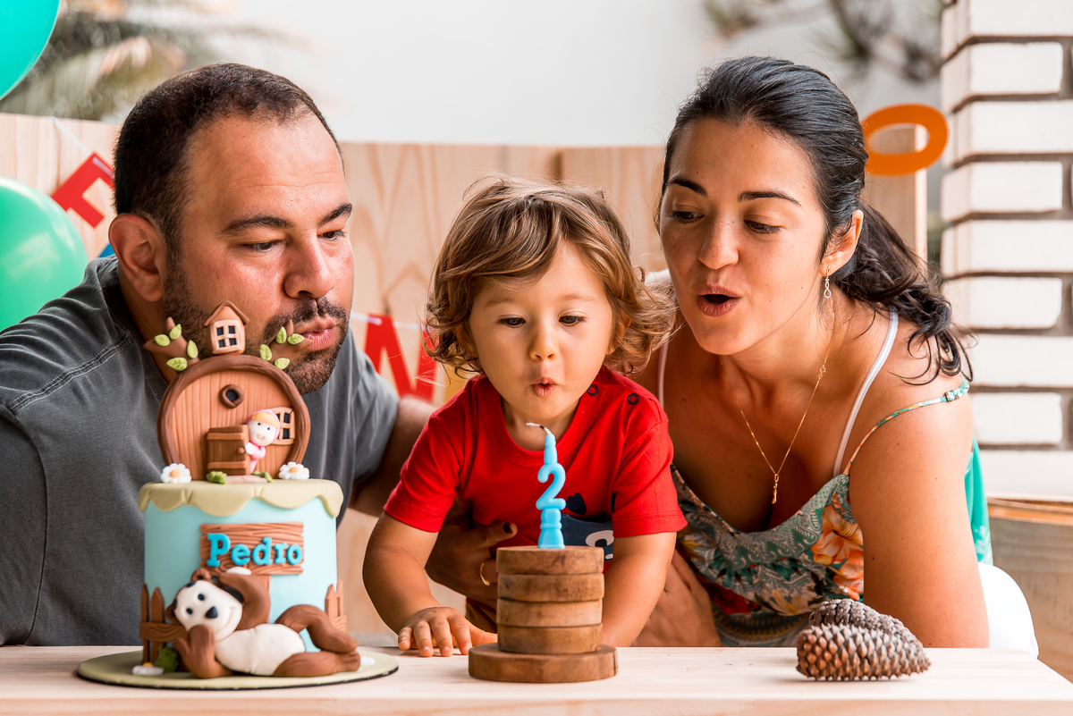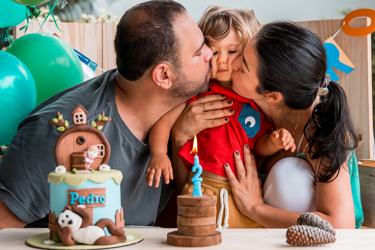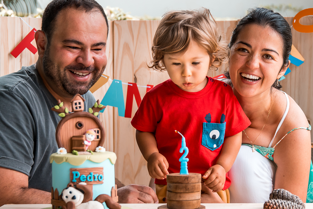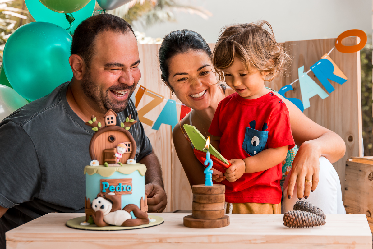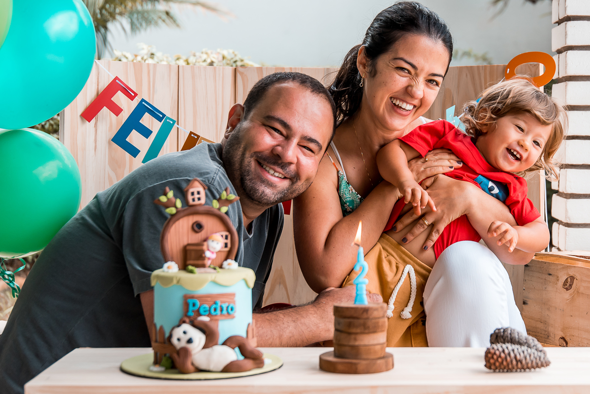 Como os avos do Pedro moram no Rio, a família optou por fazer uma comemoração só com o Papai, a Mamãe e o Pedrinho.