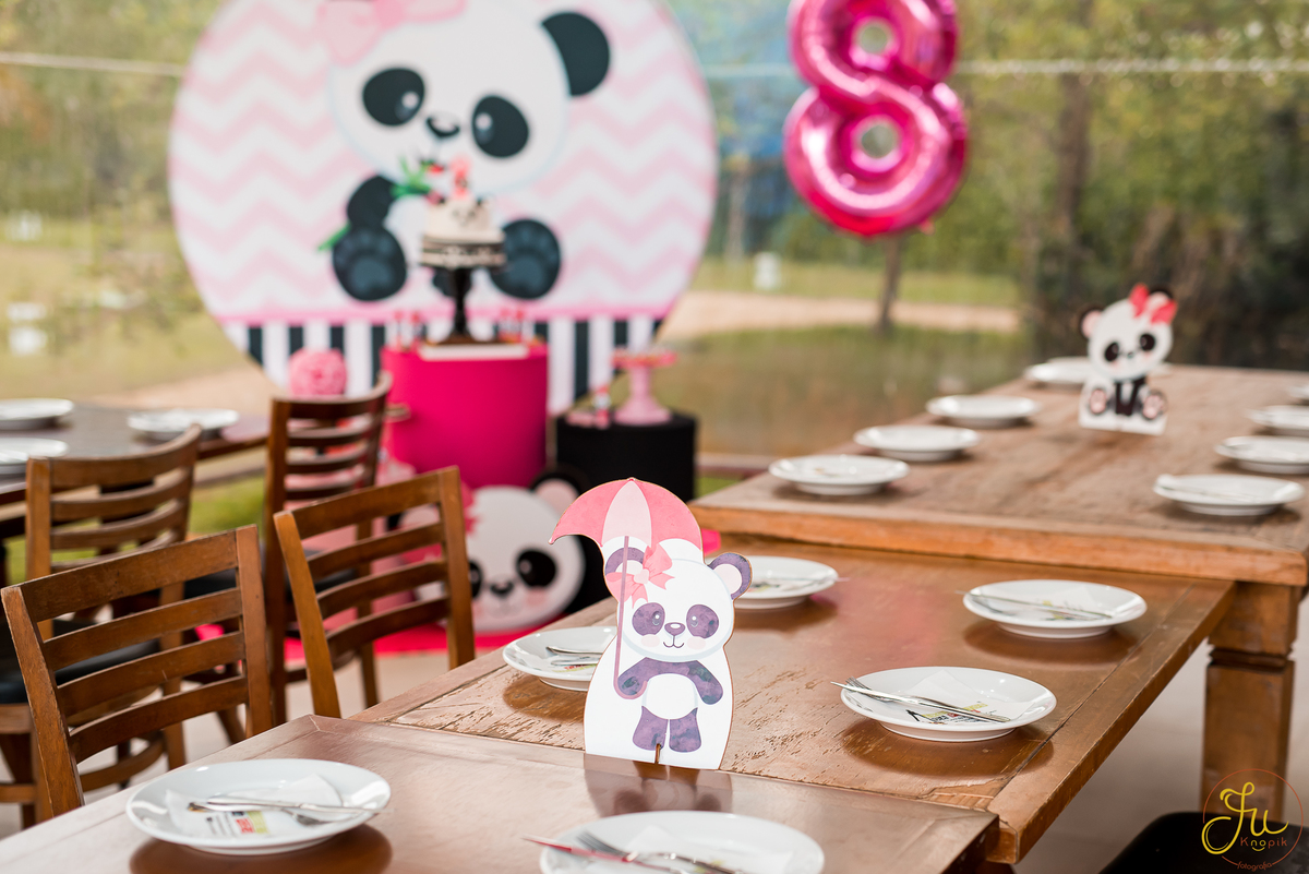 Festa de aniversário de 8 anos, tema Panda Rosa, para a menina mais doce do universo. 💛☺️